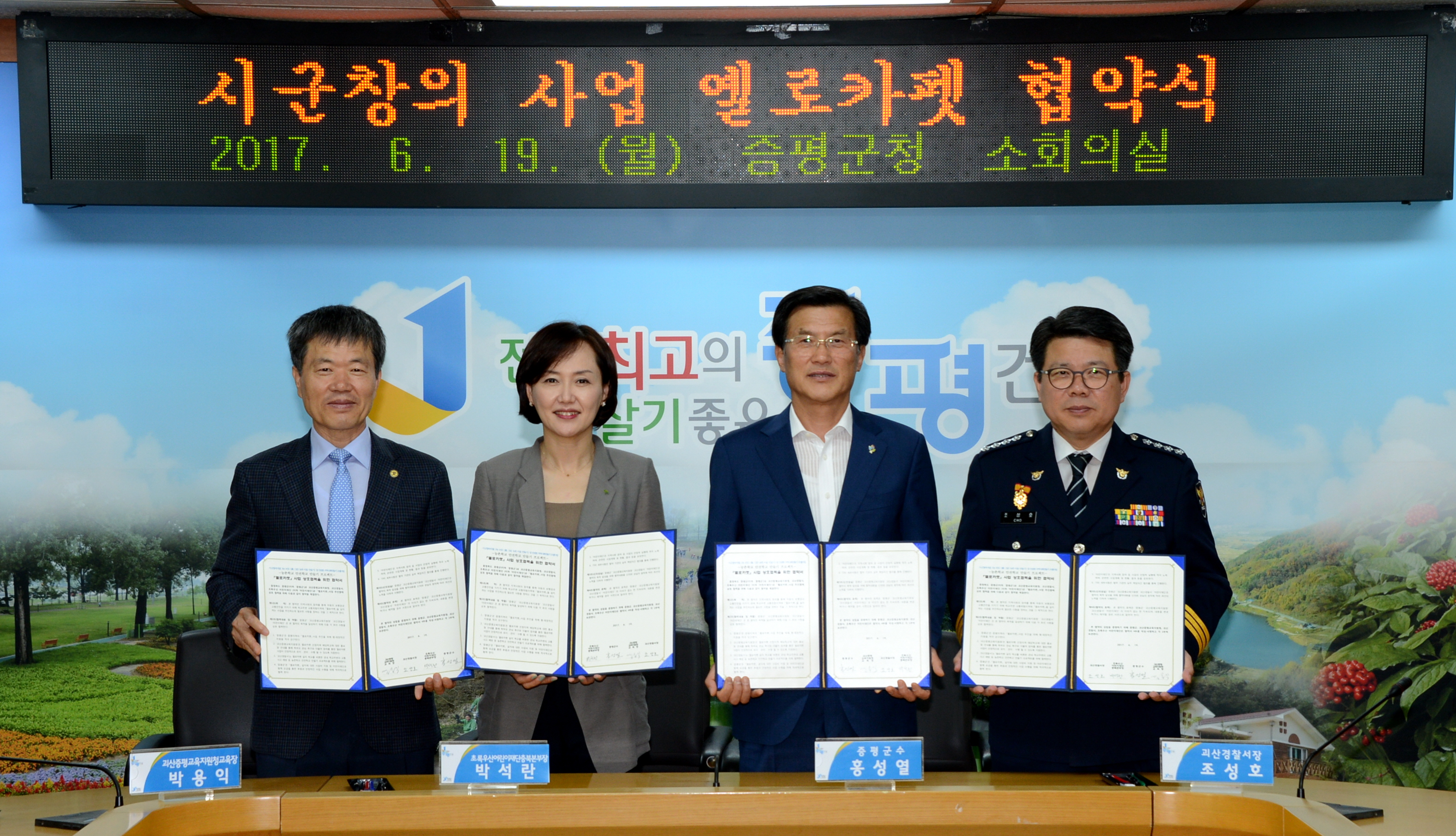 증평군, 어린이 보호구역 ‘옐로카펫’ 설치 및 협약식 가져