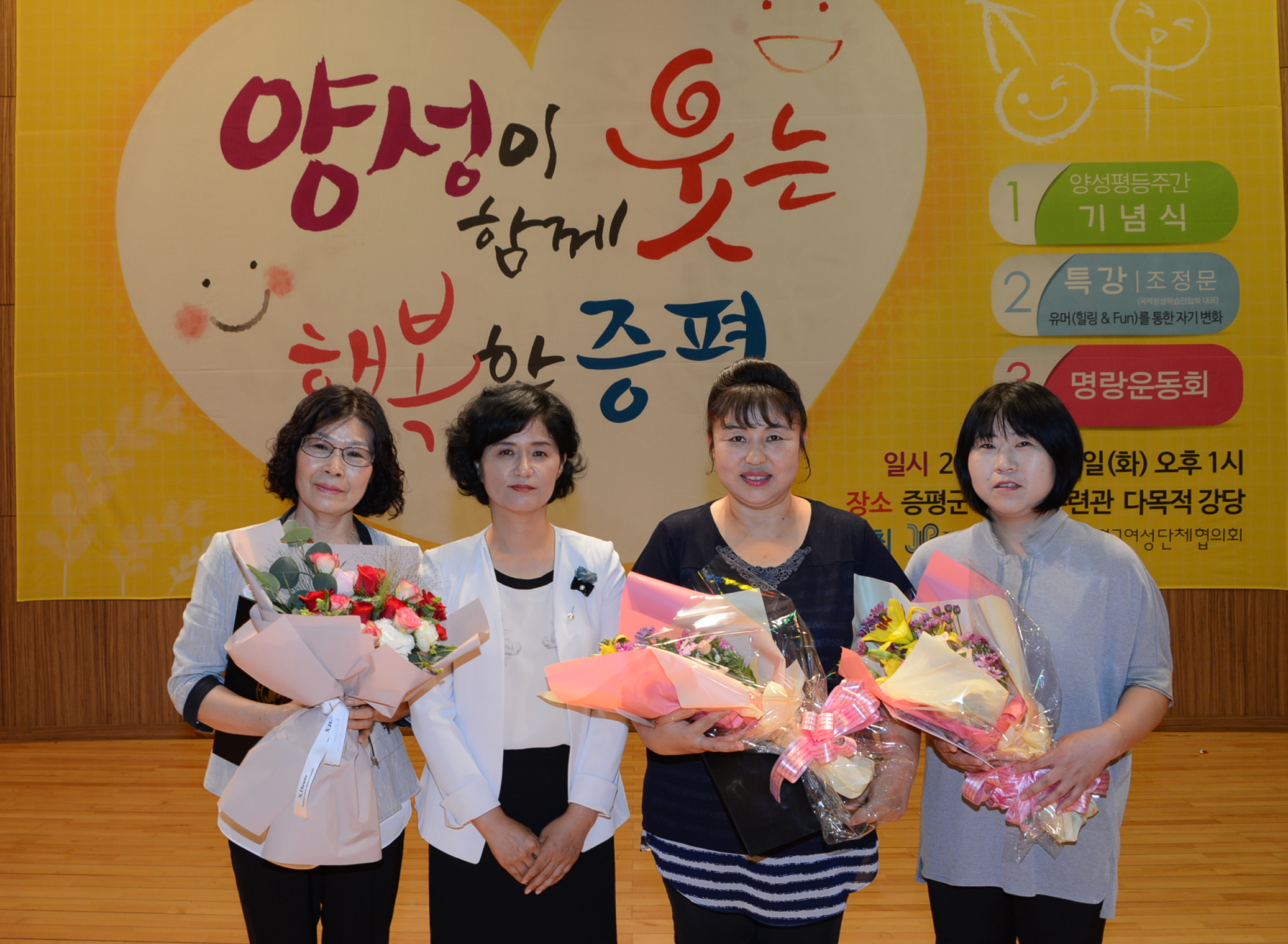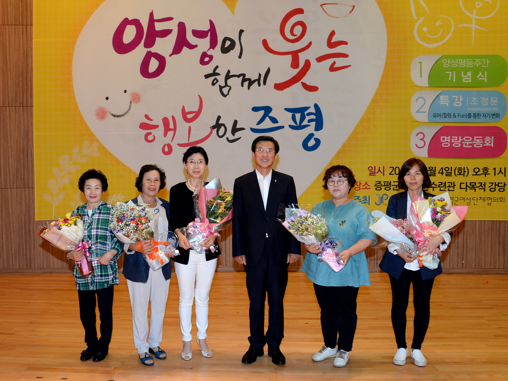 증평군은 4일 증평군 청소년수련관 다목적강당에서 홍성열 증평군수, 연종석 군의장, 이상원 증평군 여성단체협의회장을 비롯해 여성단체회원과 결혼이민 여성 등 300여명이 참석한 가운데 ‘제22회 양성평등주간 기념행사’를 개최했다.[보도자료실 참조]