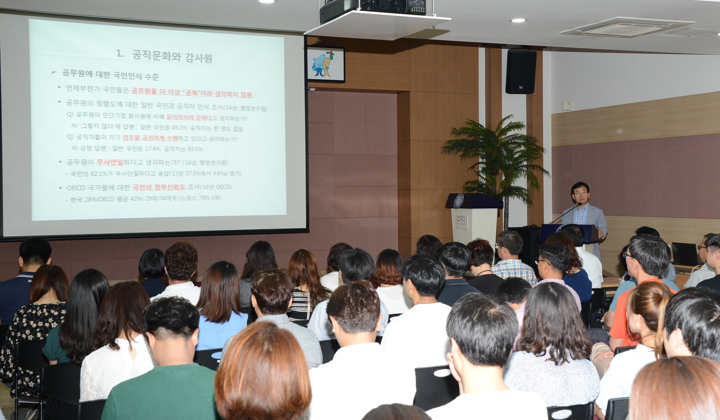 증평군은 14일 오전 10시 군청 대회의실에서 산하공무원 150여명이 참석한 가운데 감사원 김수종 수석감사관을 초청하여‘적극행정 면책제도 및 소극행정 개선사례’교육을 실시했다.(보도자료실 참조)