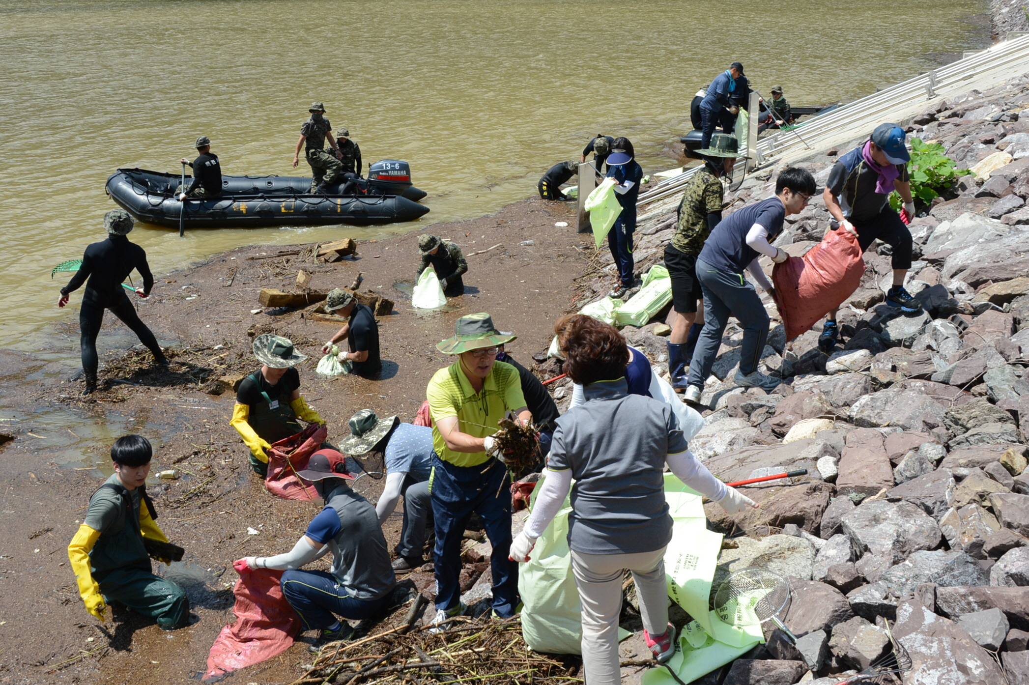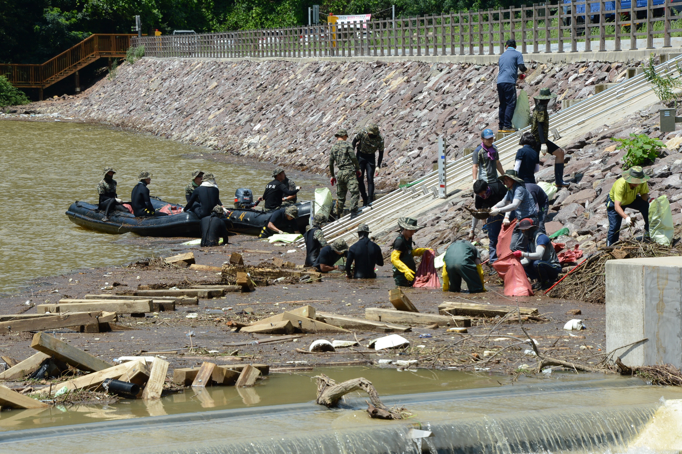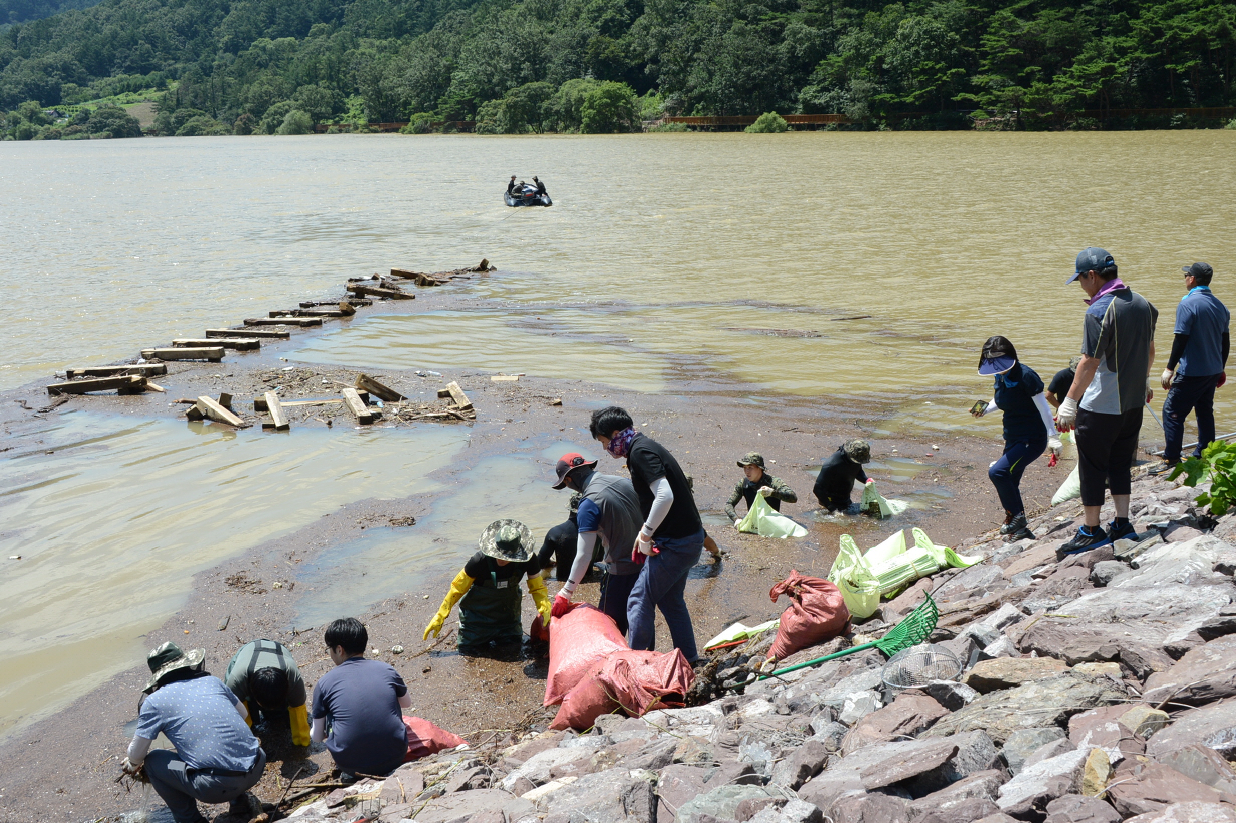증평군 26일 민.관.군 합동으로 삼기저수지 주변 수해 쓰레기 제거작업을 펼쳤다.(보도자료실 참조)