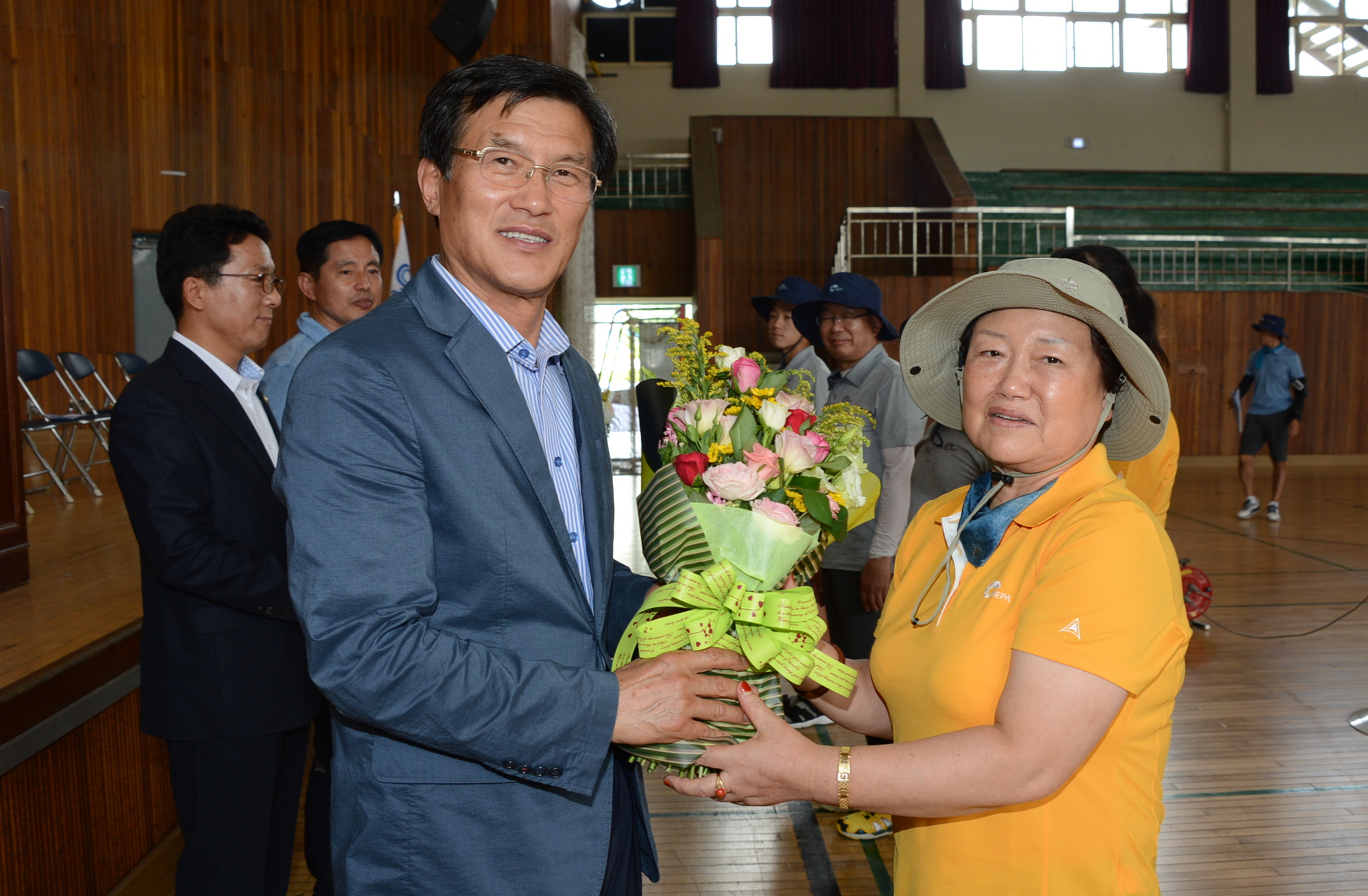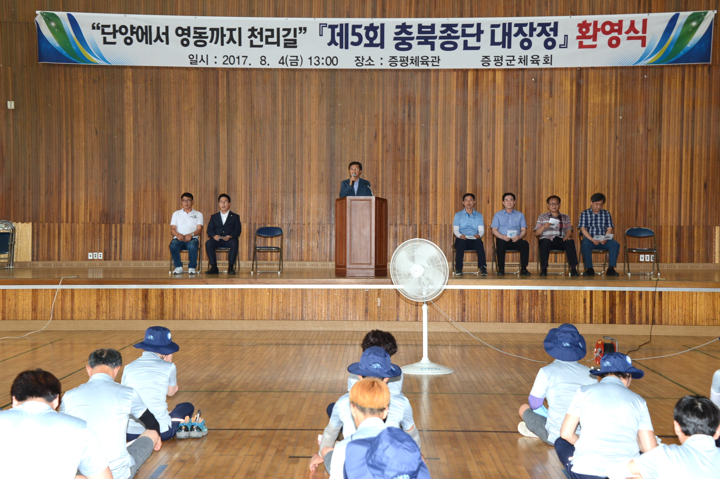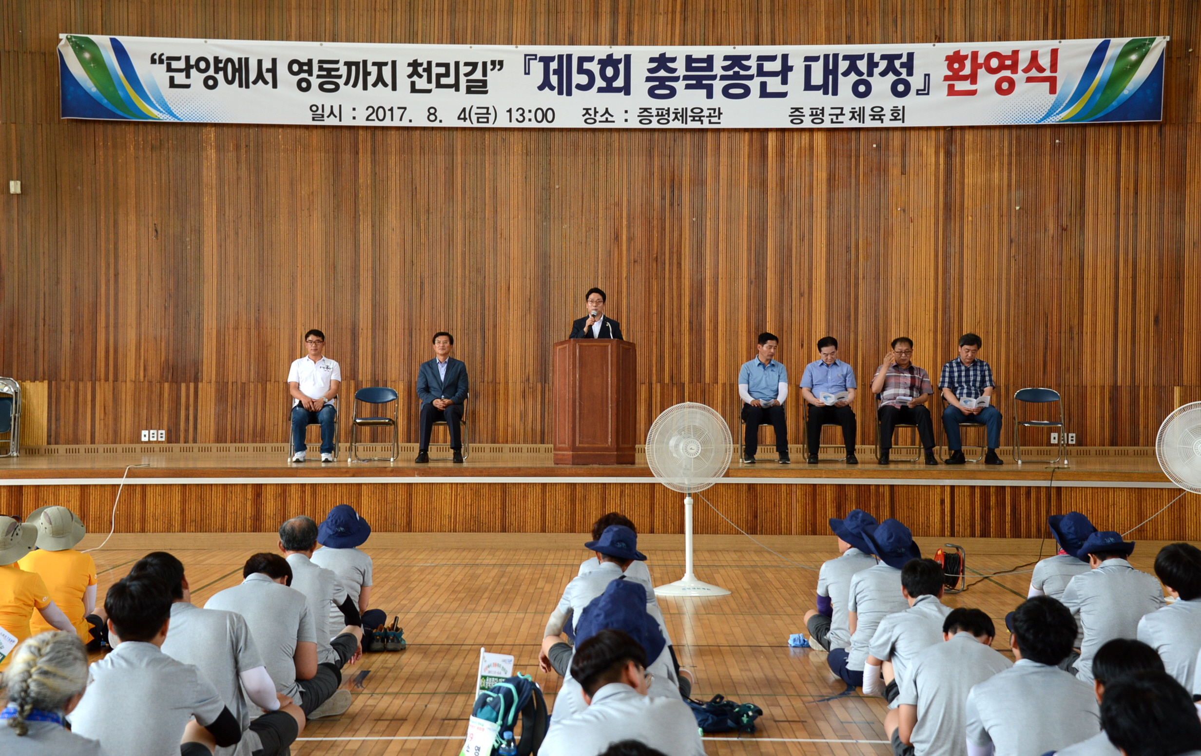 증평군(군수 홍성열)이 4일 증평체육관에서 홍성열 증평군수를 비롯해 김태우 군의회 부의장 등 200명이 참석한 가운데 충북종단 대장정 종주단을 격려하기 위한 환영식을 가졌다.[보도자료실 참조]