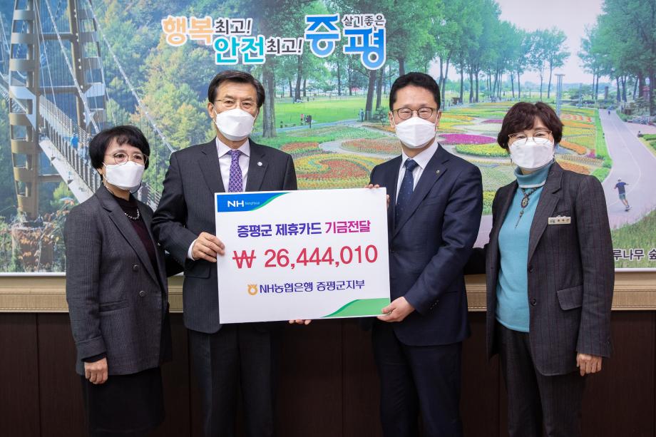 NH농협은행 증평군지부가 증평군에 법인제휴카드 기금 2천 6백만원을 전달했다.