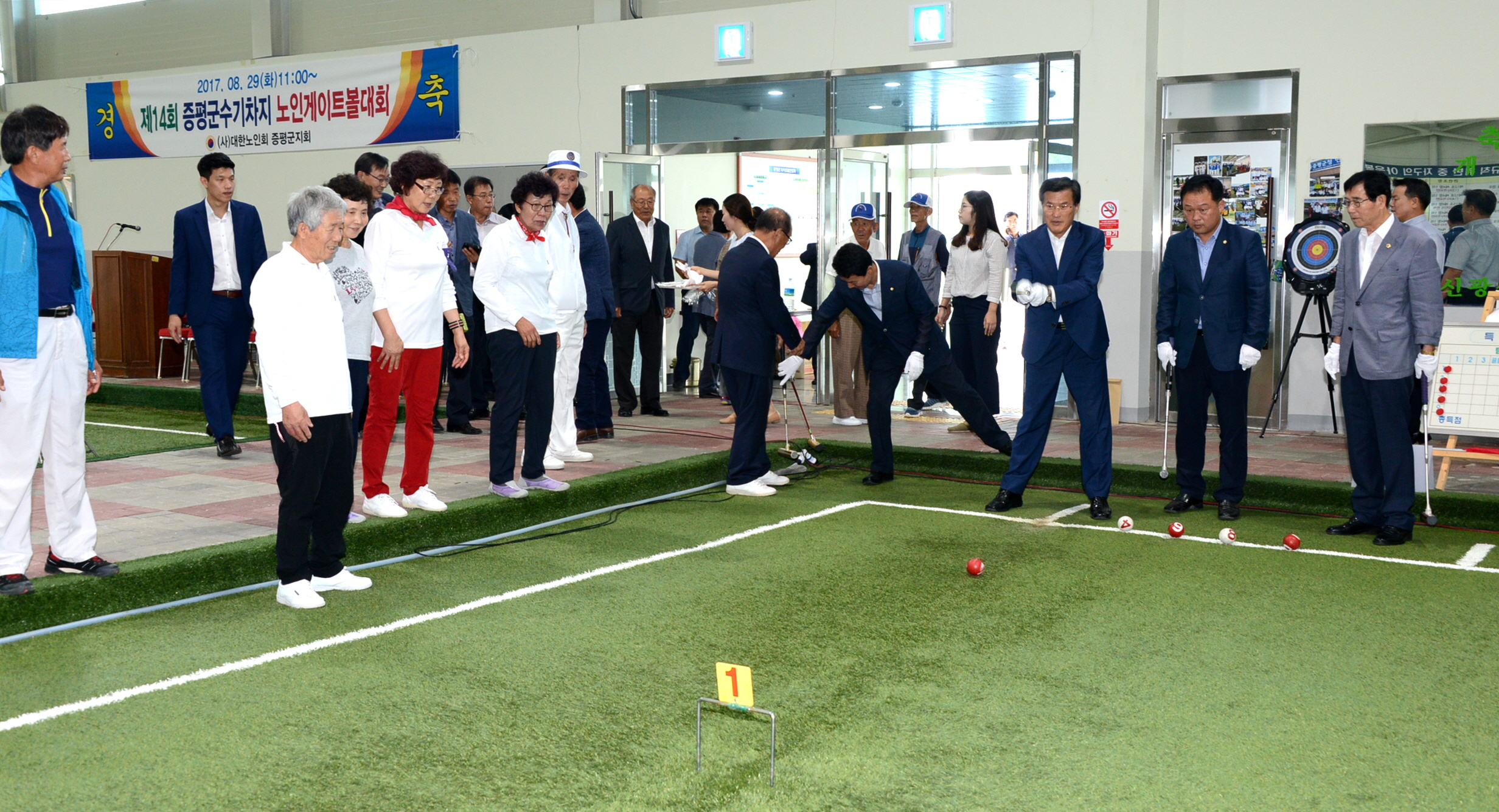 증평군(군수 홍성열)이 29일 송산 전천후 게이트볼장에서 제14회 증평군수기차지 게이트볼대회를 개최했다.(보도자료실 참조)