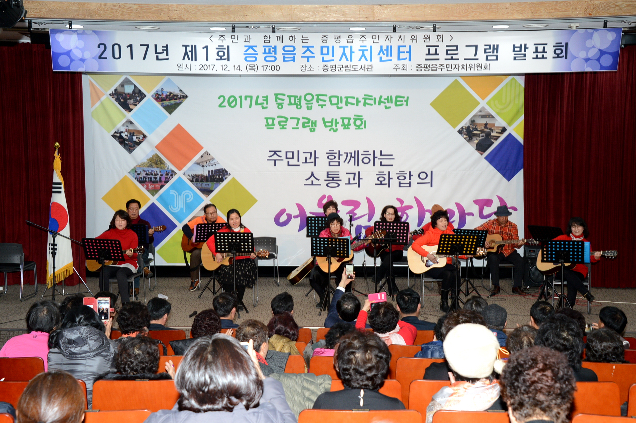증평읍주민자치위원회(위원장 연주봉)는 14일 증평군립도서관 다목적홀에서 2017년 증평읍 주민자치프로그램 발표회를 개최했다.(ㅂ도잘실 참조)
