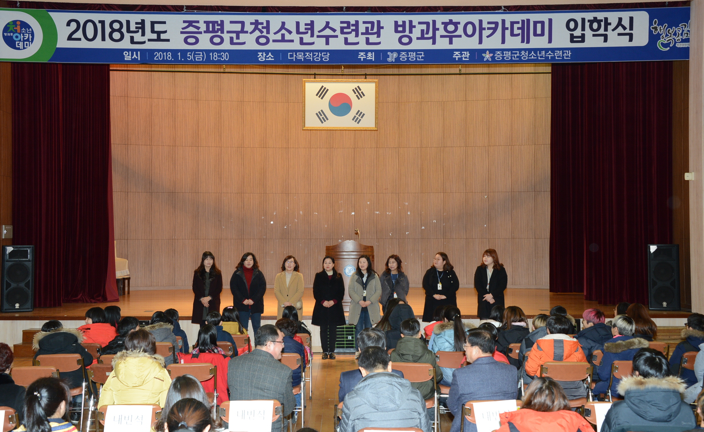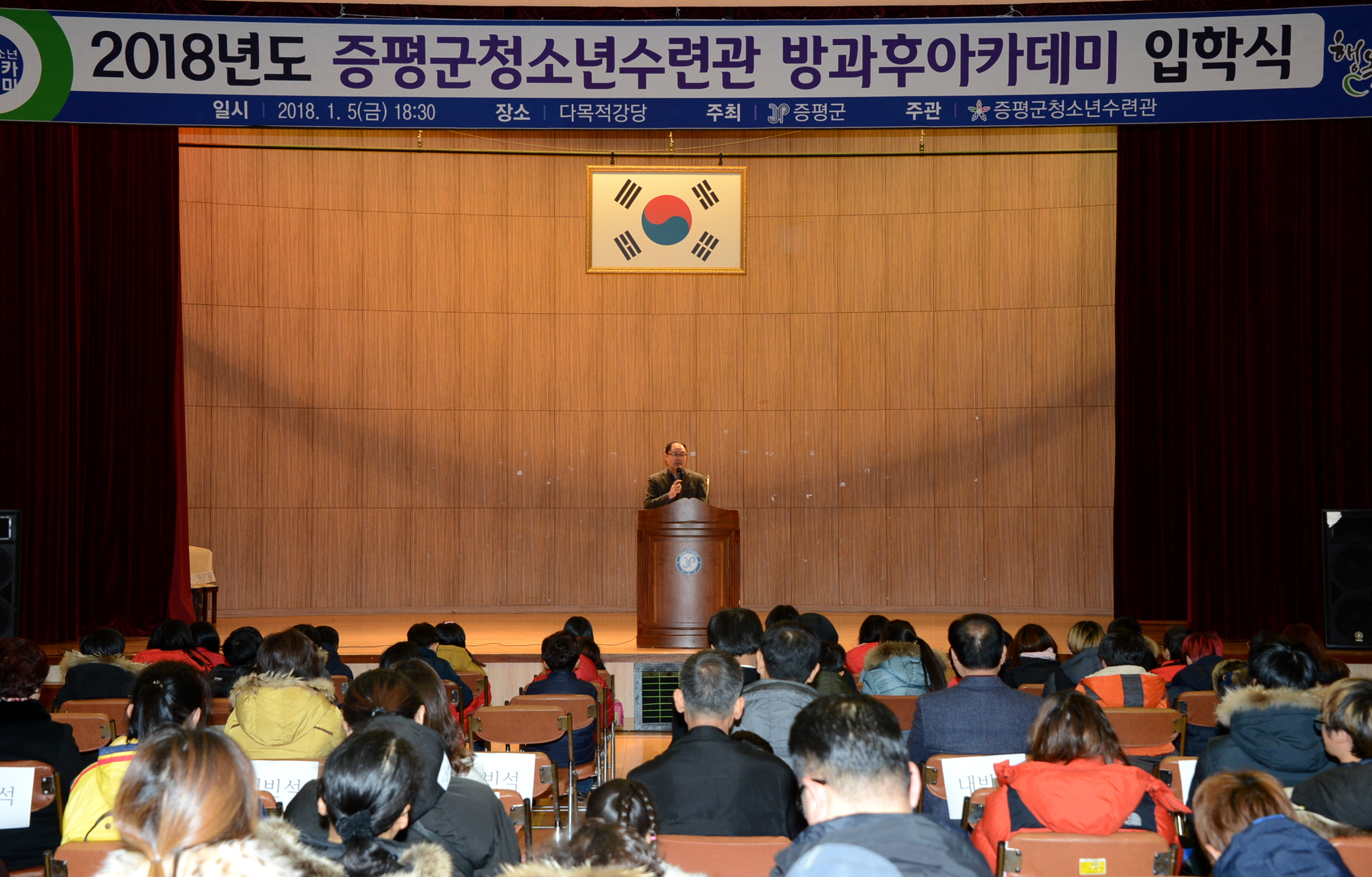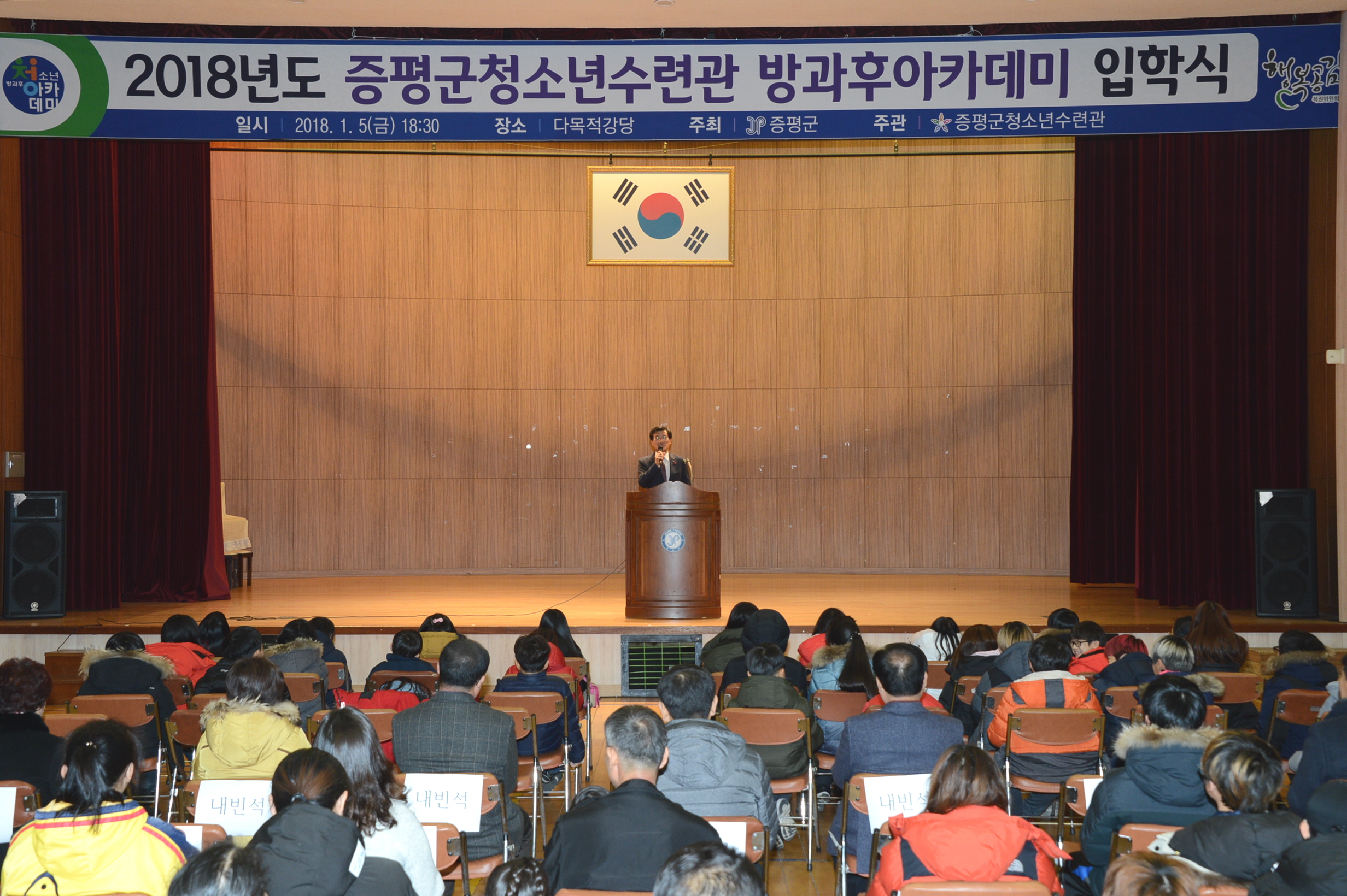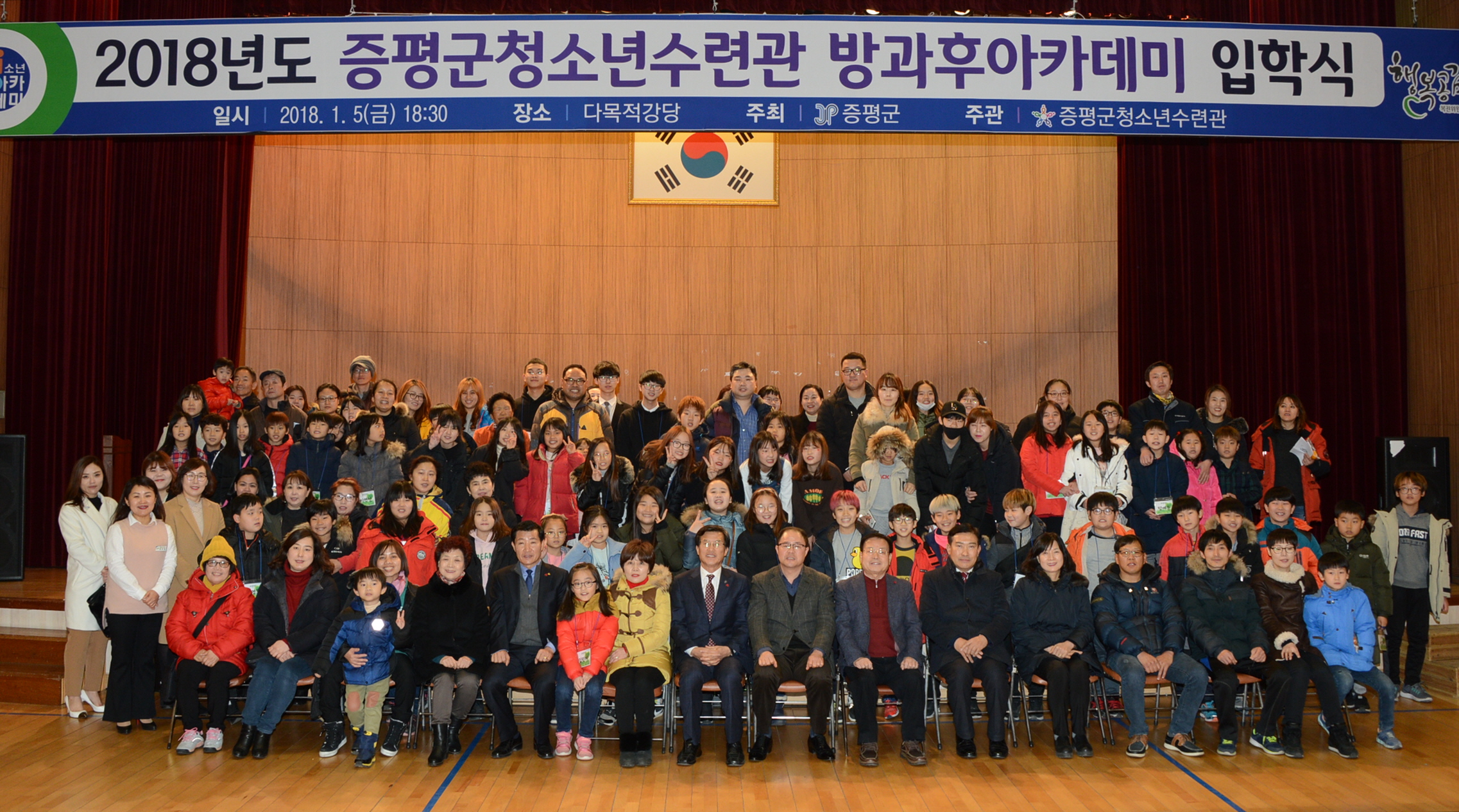 증평군 청소년수련관(관장 김병노)은 5일 증평읍 내성리 수련관 다목적강당에서 홍성열 증평군수와 김병노 관장을 비롯해 유관기관 관계자와 아카데미 참여자 등 100여명이 참석한 가운데 ‘청소년방과후아카데미 입학식’을 가졌다.(보도자료실 참조)