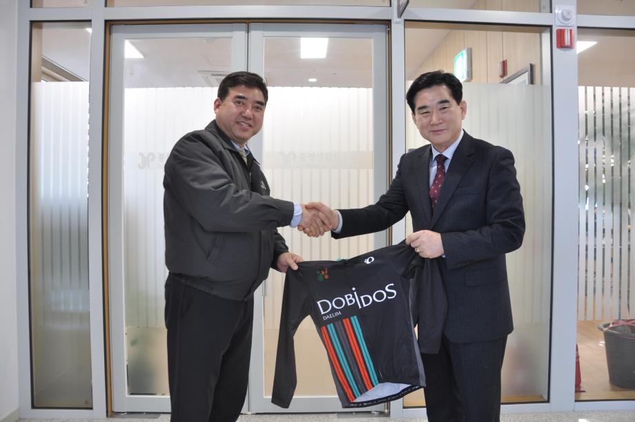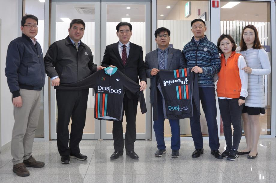증평읍 미암리 소재의 대림통상(주)증평공장(대표이사 이재만)이 2018년 도민체전에 출전하는 증평군 자전거선수단에 전달해 달라며 증평군체육회(회장 홍성열 증평군수)에 200만원 상당의 유니폼을 전달했다.(보도자료실 참조)