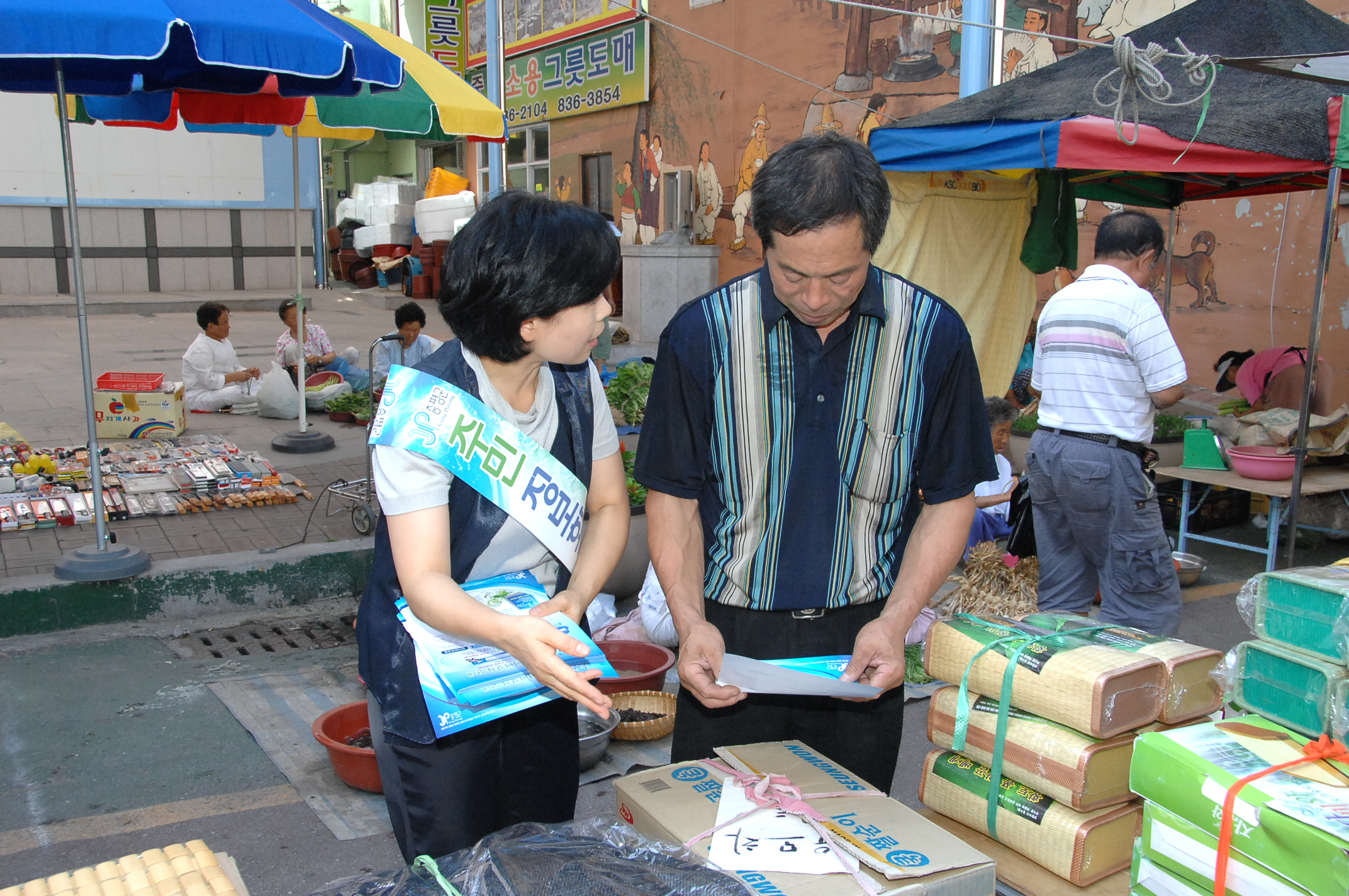 증평군은 현재 홈페이지를 통해 운영중인 사이버 강좌의 활용도를 높여 주민 정보화능력을 향상시키기 위해 오는 30일까지 적극적인 홍보활동을 벌이기로 했다. [보도자료실 참조, 사진은 21일 증평장날을 맞아 재래시장에서 가두 홍보활동 모습]