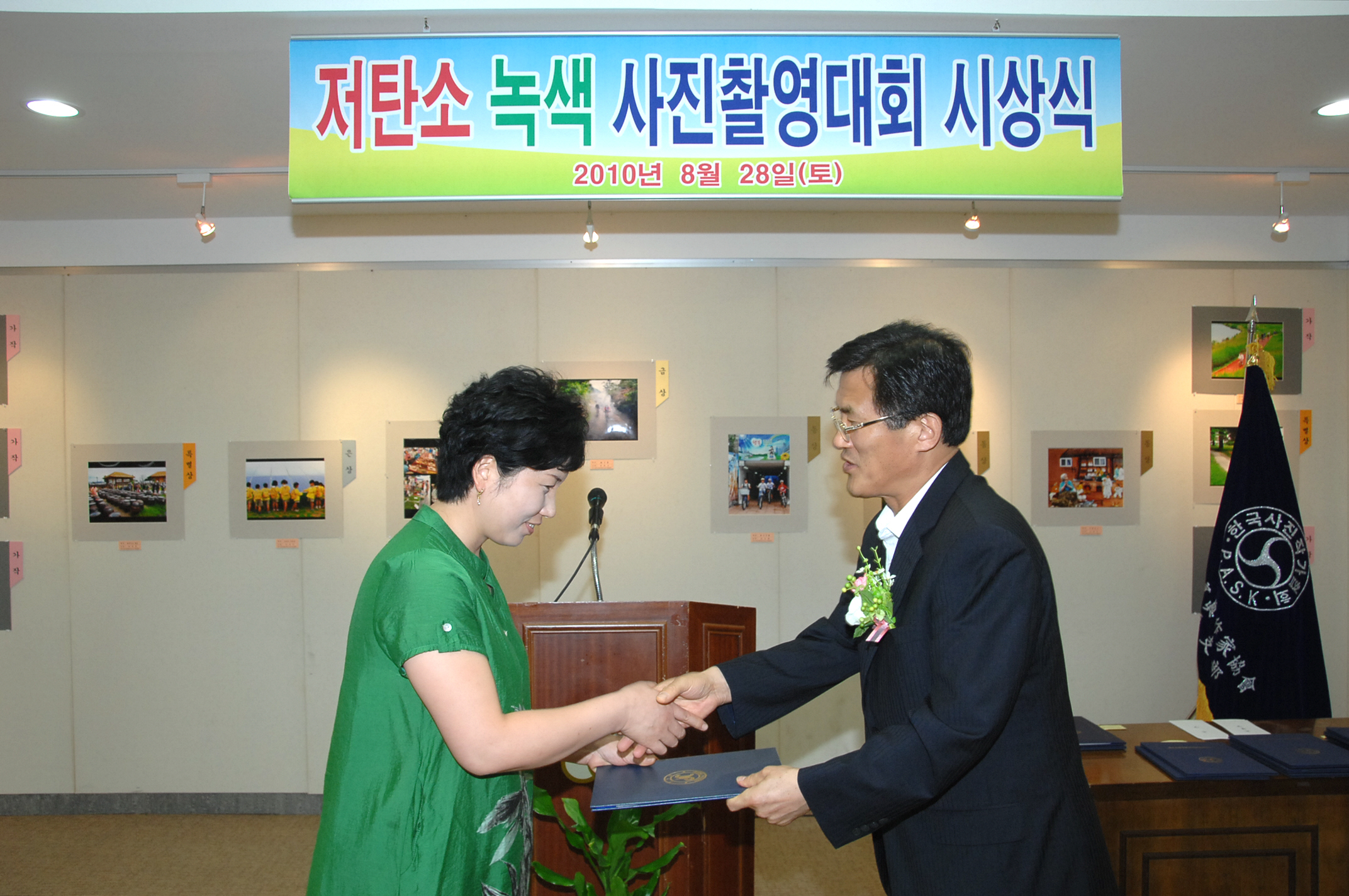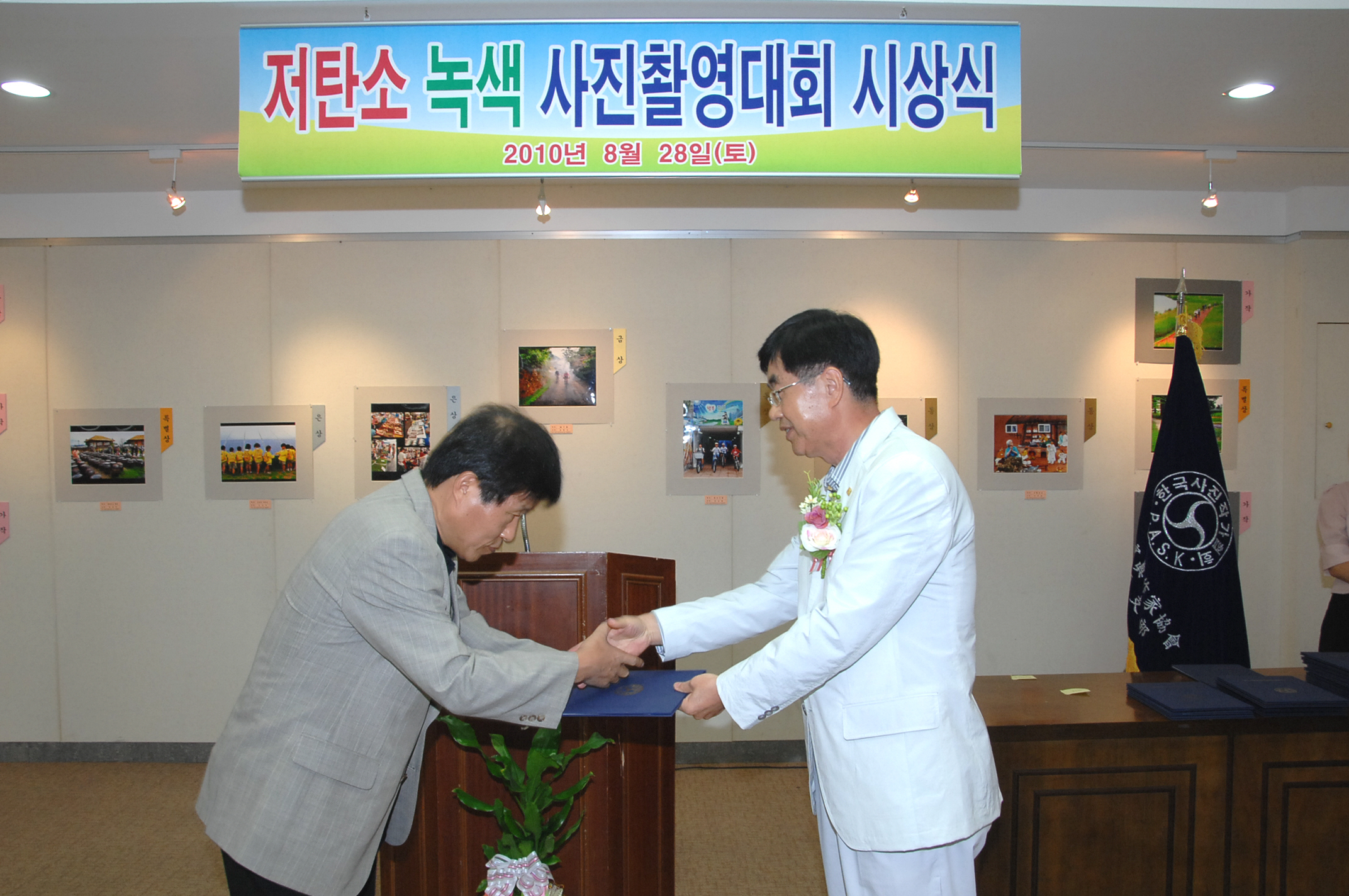 [사]한국사진작가협회 증평지부(지부장 백남운)가 주최한 제1회 아름다운 증평(저탄소)녹색 전국사진 촬영대회 시상식 및 전시회가 이 28일 오후 2시 증평문화센터 보강천 겔러리에서 열려 오는 9월5일까지 전시된다.[보도자료실 참조]