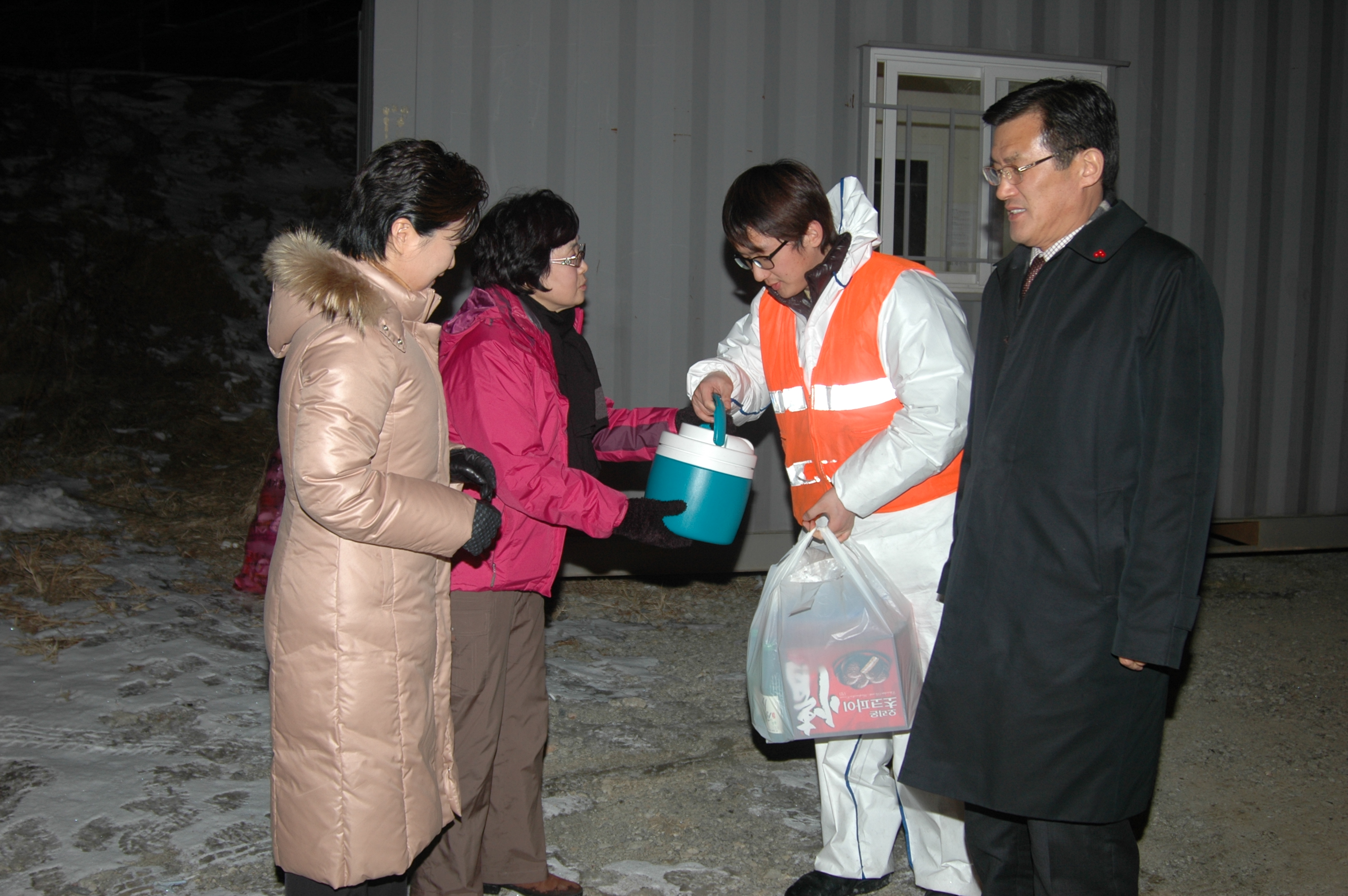 증평과 경계를 맞대고 있는 괴산과 진천지역에서 구제역이 발생돼 증평군이 비상방역체제에 돌입한 가운데 증평군 여성단체협의회(이하 여협)는 지난 6일 밤 8시 구제역 통제초소에 대한 위문방문을 실시했다. [보도자료실 참조]