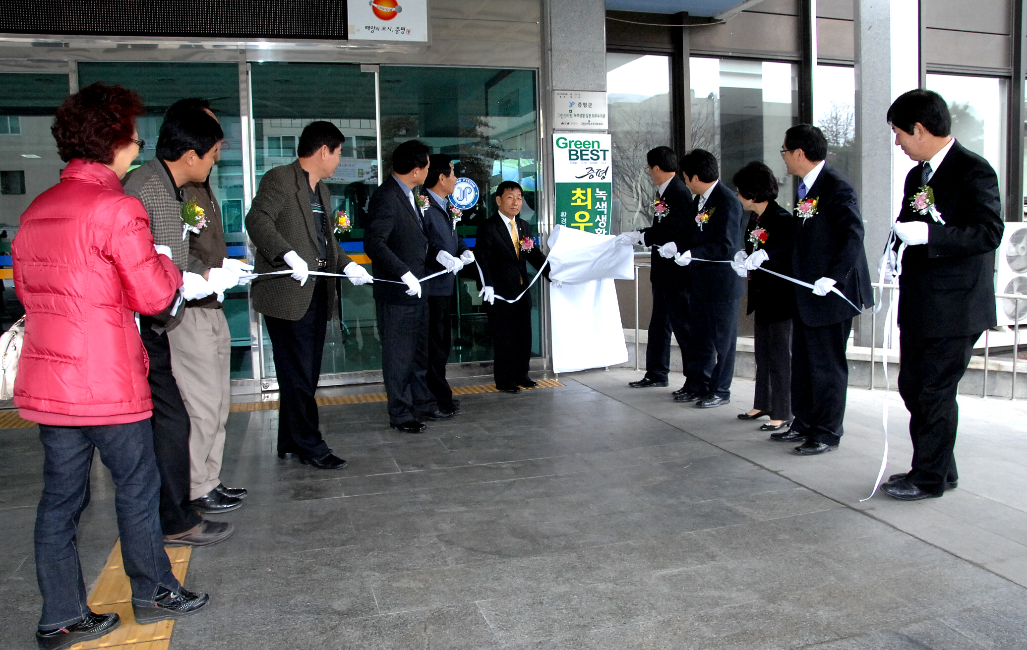 증평군은 28일 홍성열 증평군수를 비롯해 그린리더협의체 임원과 여성단체협의회장 등이 참석한 가운데 2010년도 그린스타트 경연대회 대상수상에 따른 ‘녹색생활 실천 최우수기관’ 현판식을 갖고 2011년 건강한 녹색생활 실천을 다짐했다.[보도자료실 참조]