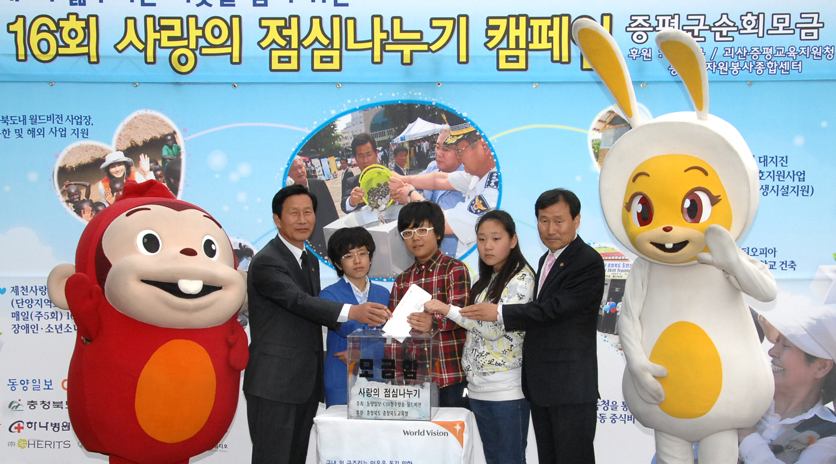 동양일보와 CJB청주방송, 월드비젼 충북지부가 공동 주최한 모금 행사는 우리 주변의 결식아동과 북한 어린이 돕기, 해외보건교육지원사업, 6.25 참전국인 에티오피아 참전용사 마을을 돕는데 쓰여진다.