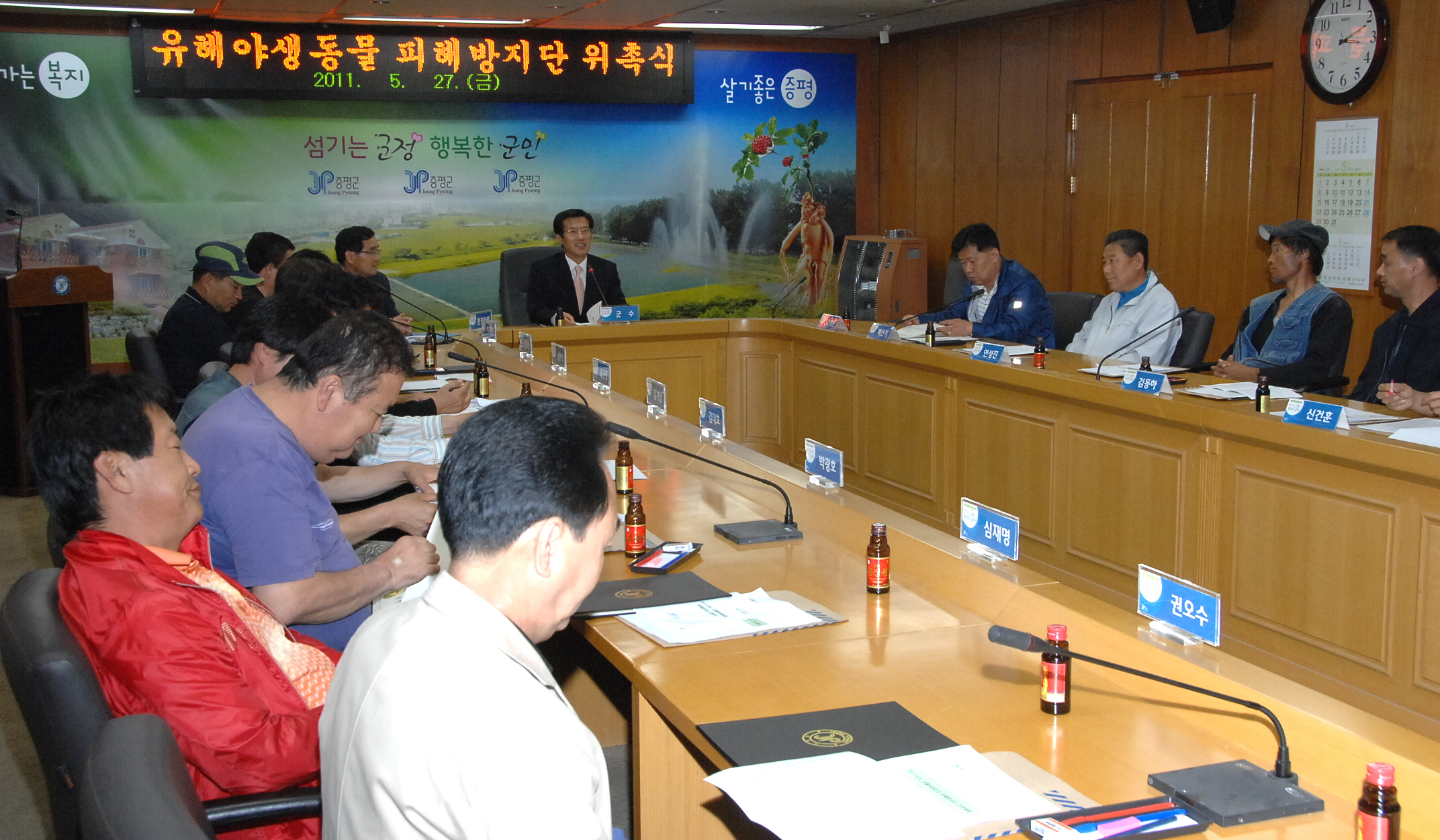 증평군은 27일 오후 3시 군청 소회의실에서 2011년도 유해야생동물 피해방지단 위촉식과 준수사항에 대한 교육을 실시했다.[보도자료실 참조]