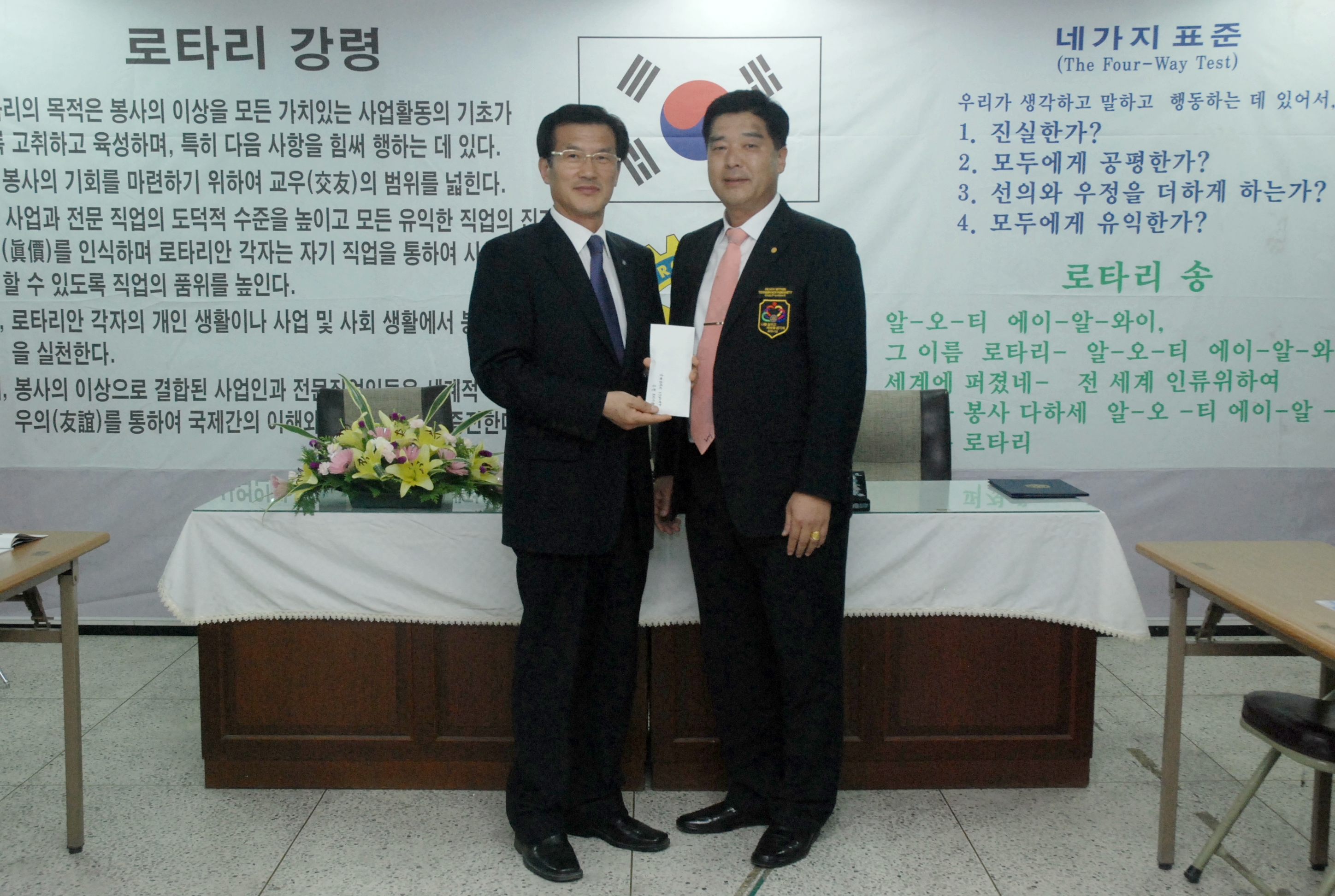 증평로타리클럽(회장. 홍성표)은 27일 회원들이 모은 회비와 최근 사무실을 옮기면서 절약한 경비 등 50만원의 후원금을 어려운 이웃을 위해 써달라며 증평군에 기탁했다. [보도자료실 참조]