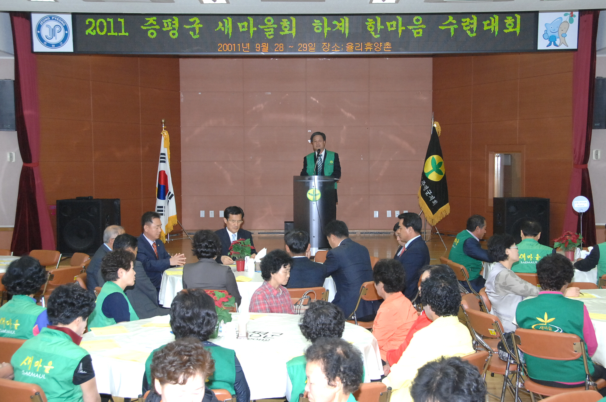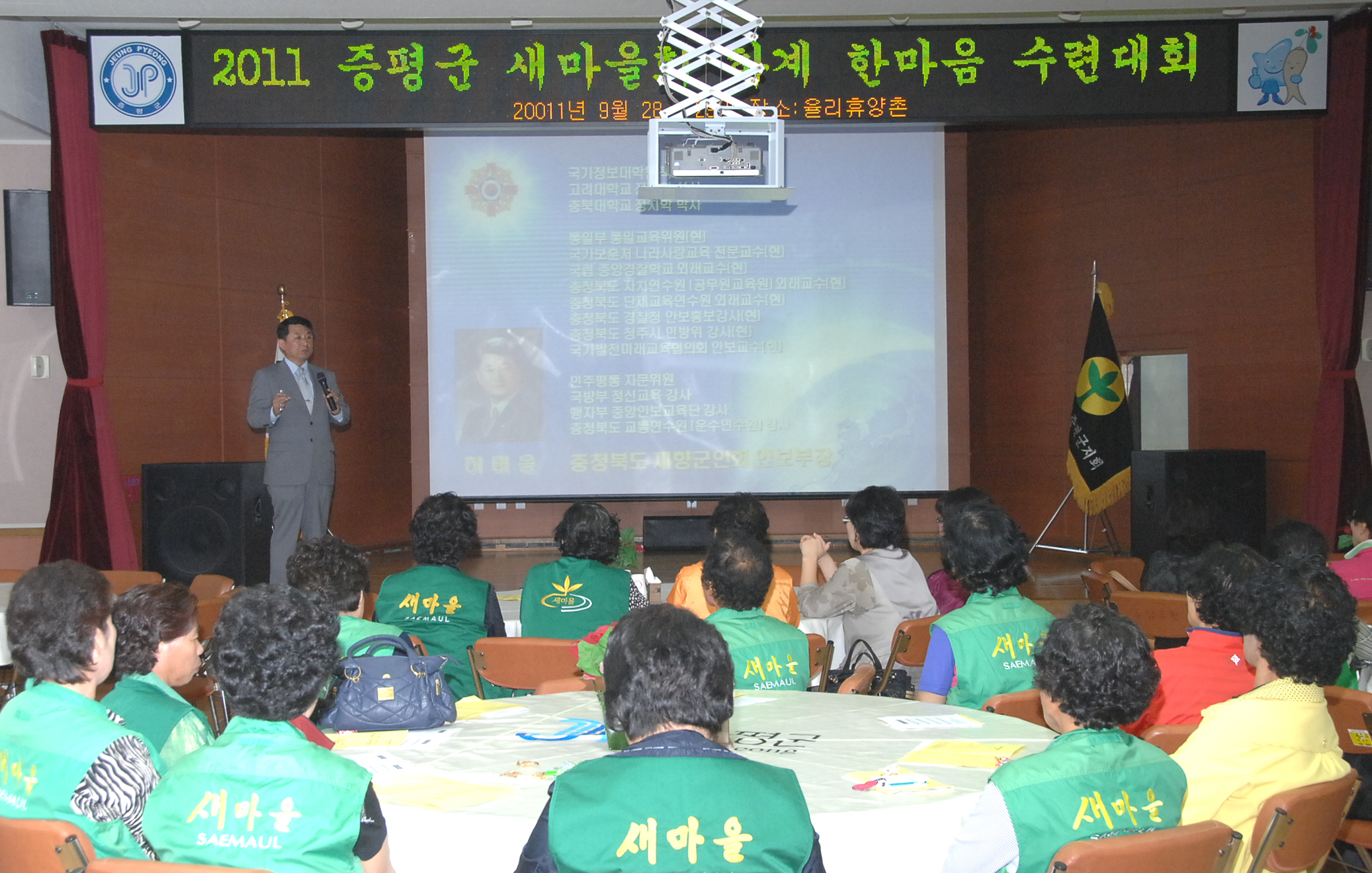 증평군새마을회(회장 박성현)는 28일 오후 3시 증평읍 율리 휴양촌에서 홍성열 증평군수, 박성현 증평군새마을회장을 비롯한 새마을지도자, 부녀회원, 직장회원, 문고회원 등 100여명이 참석한 가운데 ‘2011 증평군새마을회 하계수련 한마음 대회’를 개최했다.[보도자료실 참조]