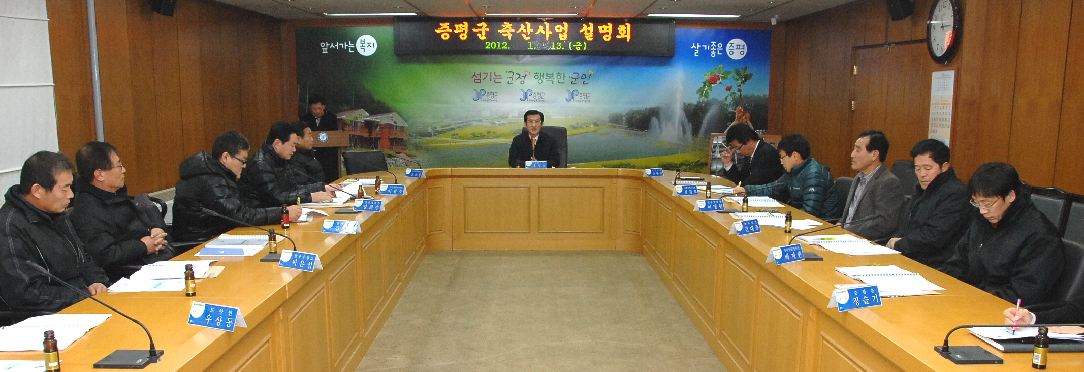 이에 따라 군은 13일 오전 11시 군청 회의실에서 축산단체임원 및 관계자 등 20여 명이 참석한 가운데 ‘2012년 주요 축산사업 설명회 및 가축방역 협의회’를 개최하고 양대 목표달성을 위한 세부사항을 논의했다. [보도자료실 참조]