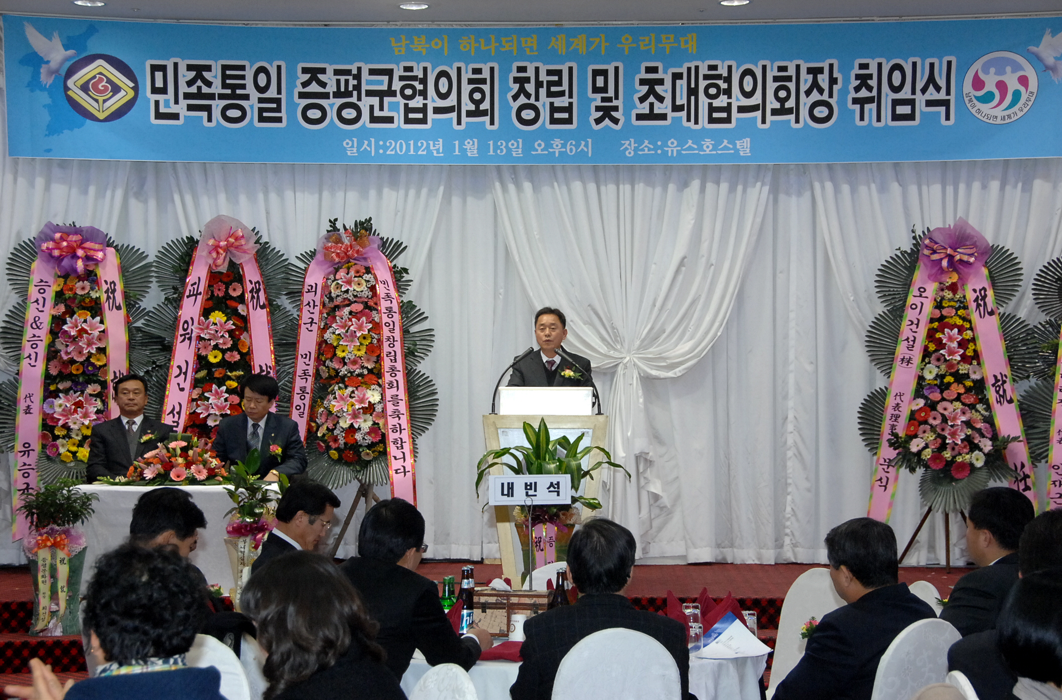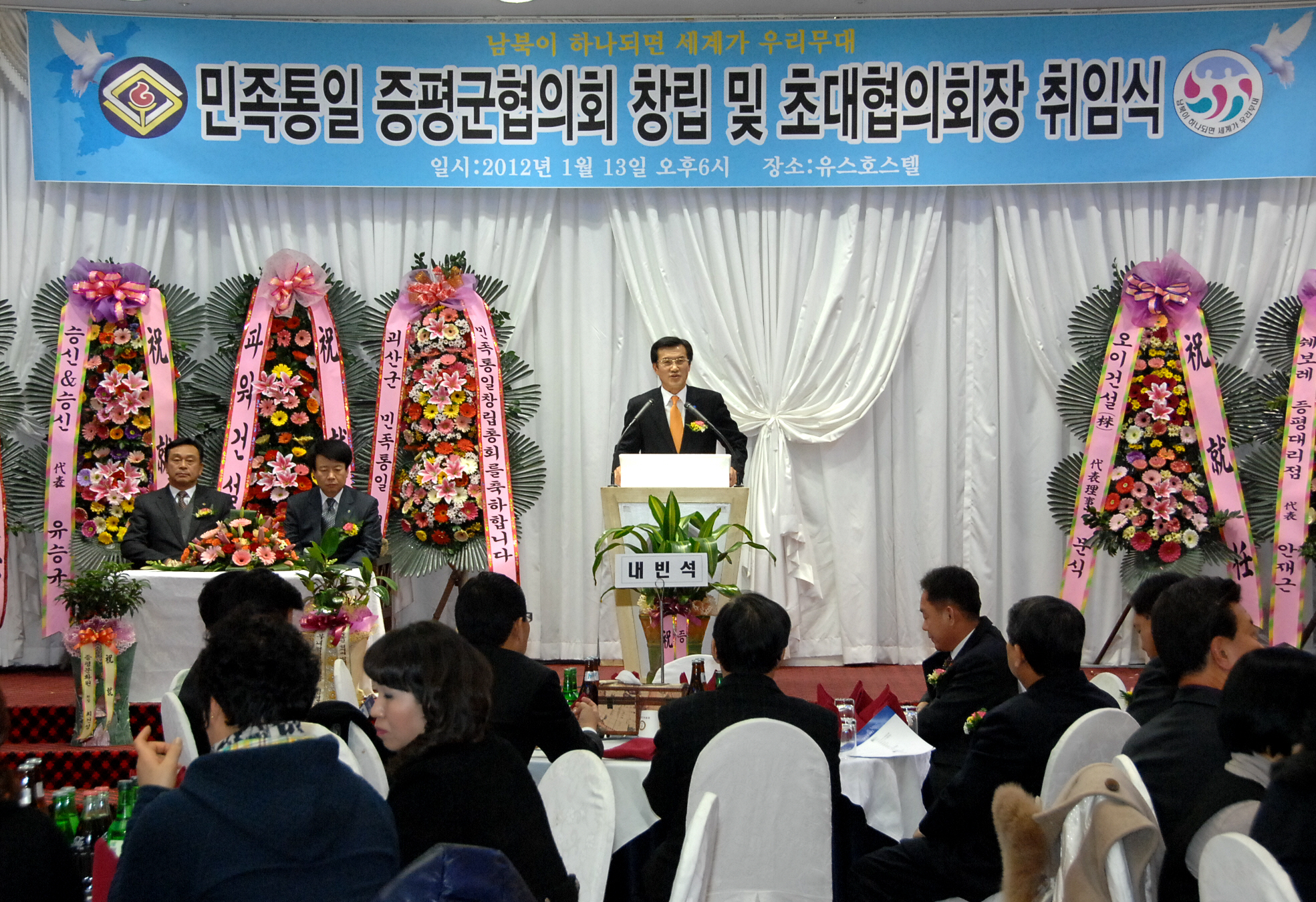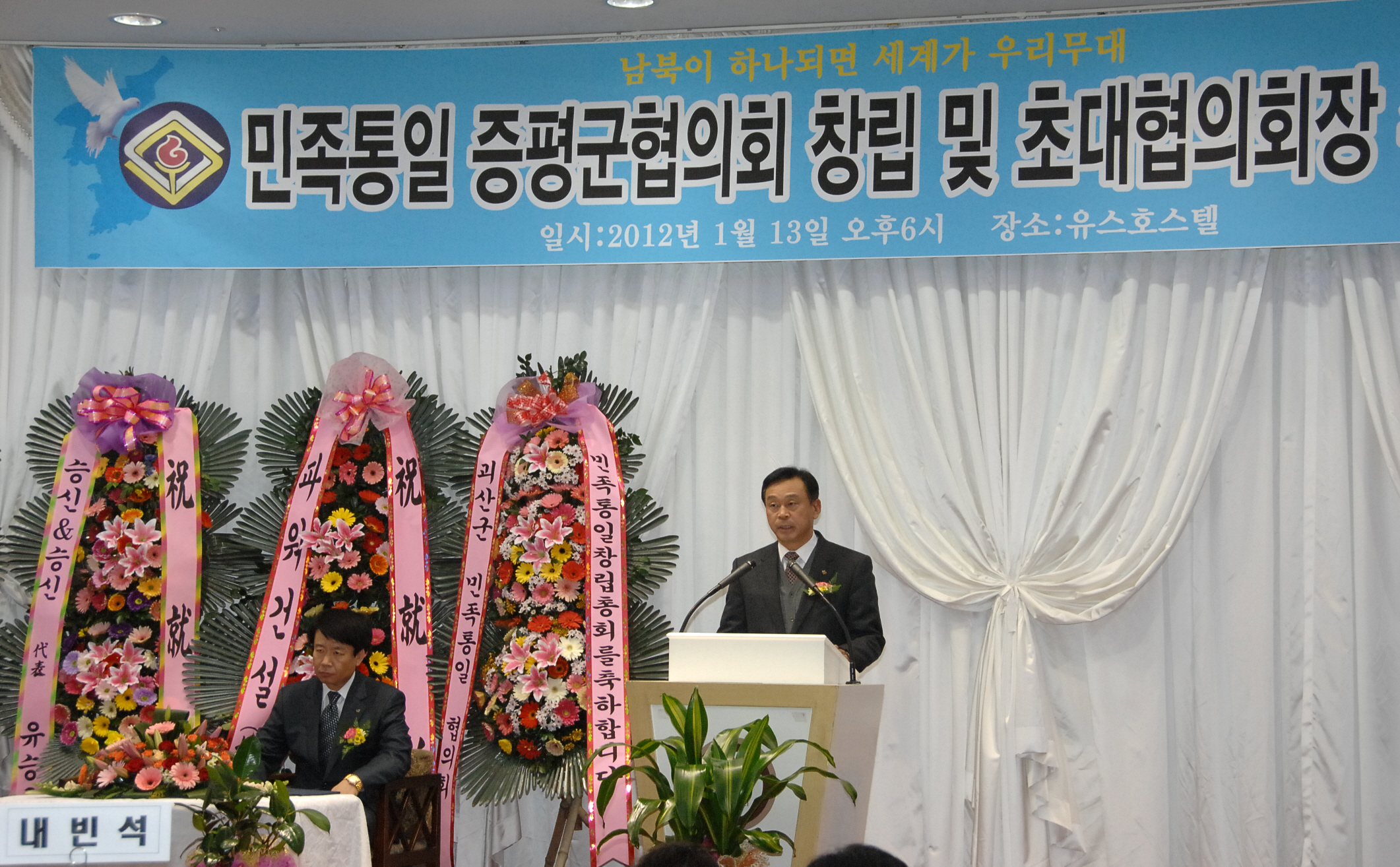정부기관인 민주평화통일자문회의와 함께 정부의 통일정책을 지지하고 이를 국민적으로 확산시키기 위한 목적으로 설립된 민족통일중앙협의회의 지방조직인 민족통일증평군협의회가 13일 오후 6시 증평유스호스텔에서 창립대회를 갖고 초대 회장으로 전홍관(54) 씨를 추대했다. [보도자료실 참조]