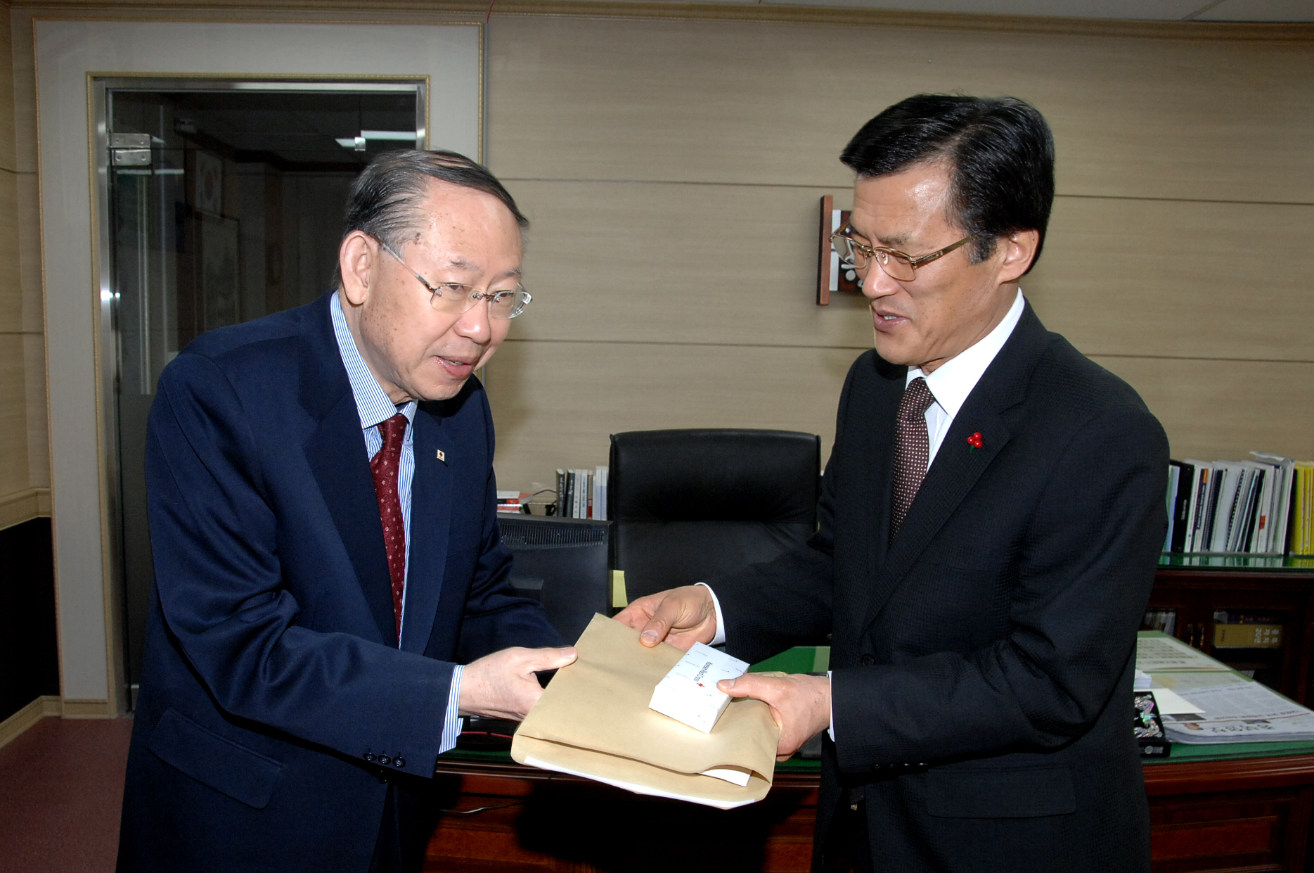 홍성열 증평군수는 18일 오전 10시 집무실에서 김영회 대한적십자사 충북지사 회장에게 적십자 특별회비 30만원을 전달했다.[보도자료실 참조]