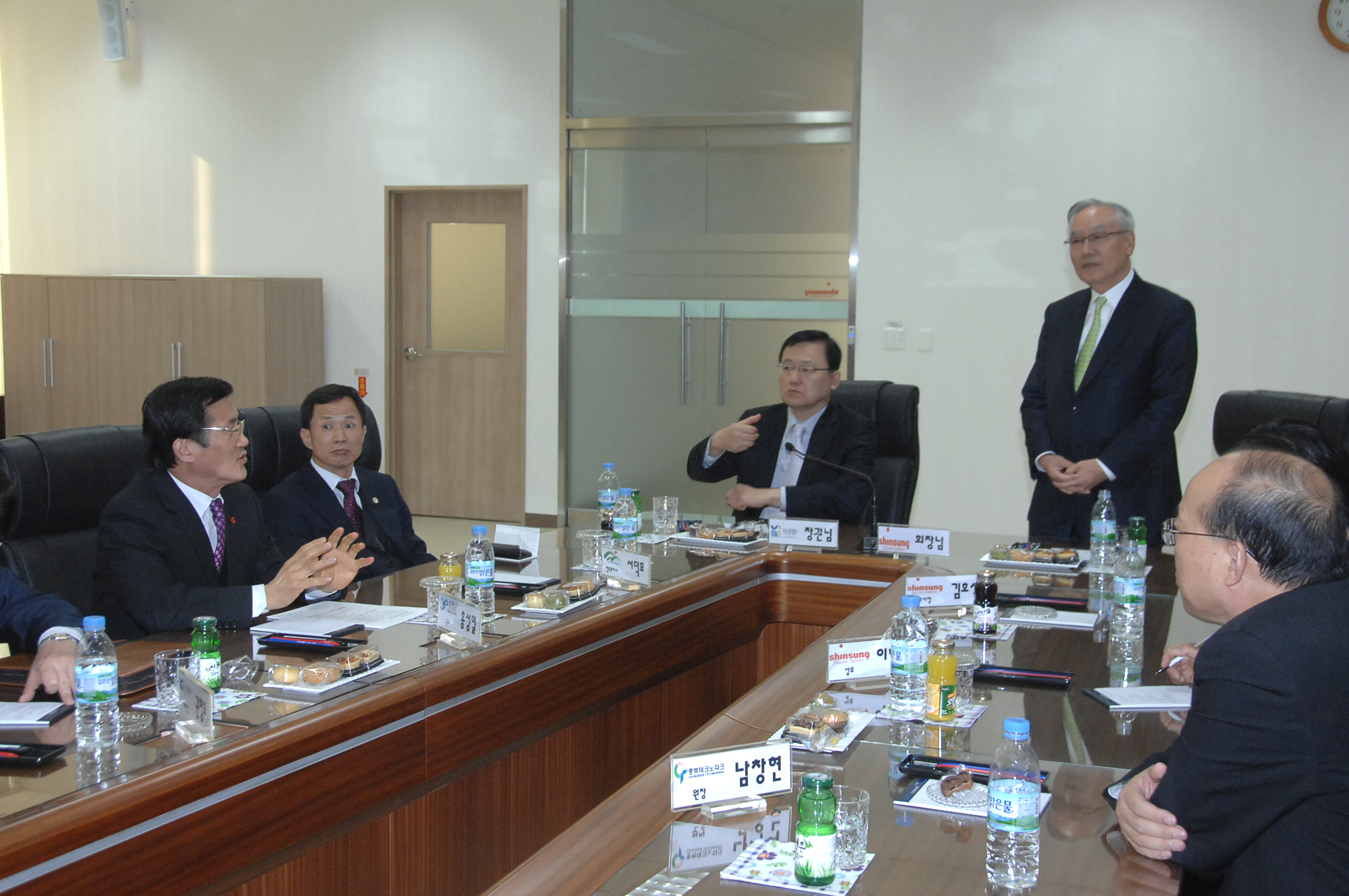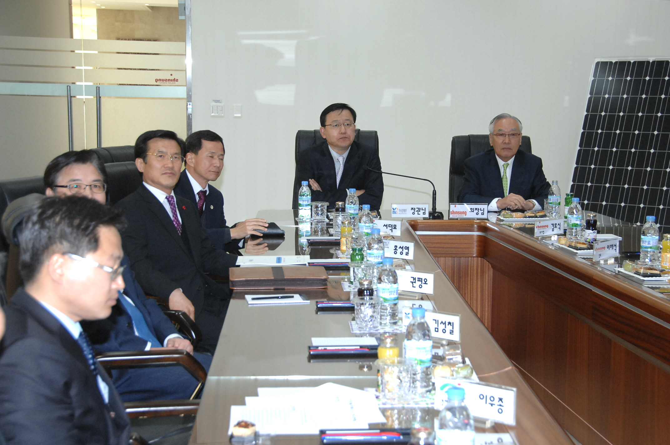 홍석우 지식경제부장관이 9일 오후3시 증평읍 미암리 (주)신성솔라에너지를 방문하여 공장 현황을 청취하고, 기업애로 사항에 대하여 관계자들과 환담한 후 공장 내부시설을 견학했다.