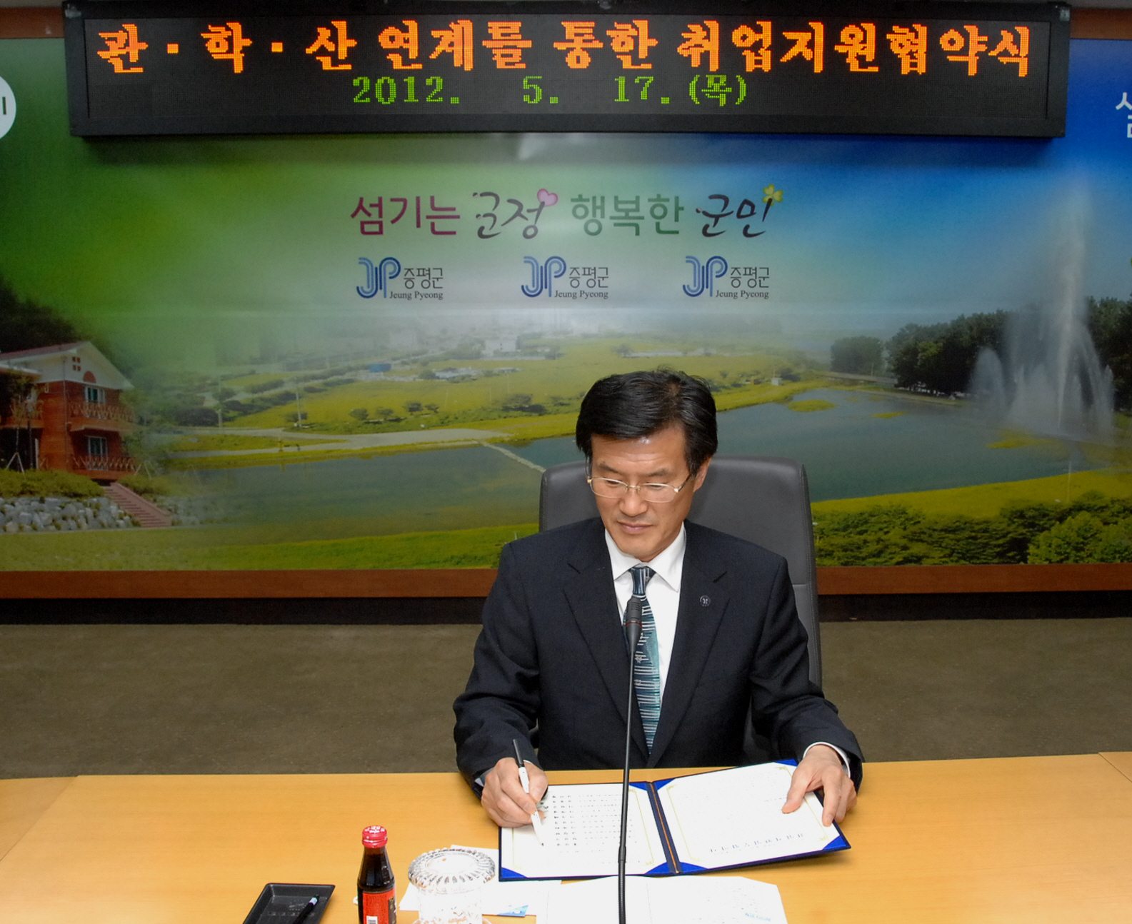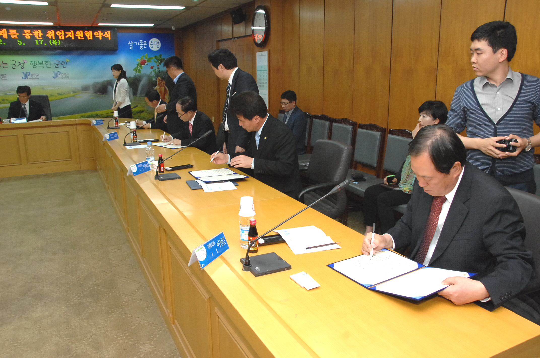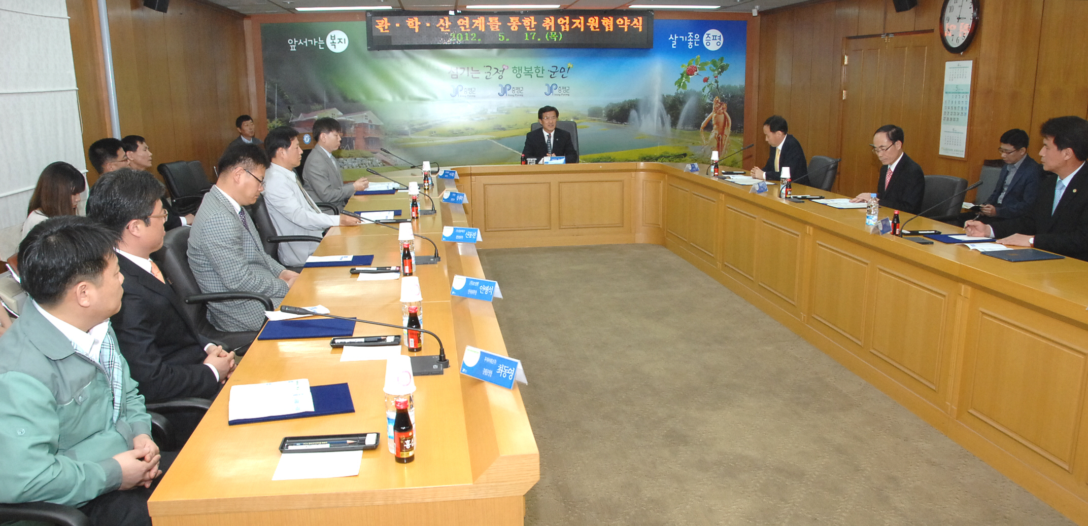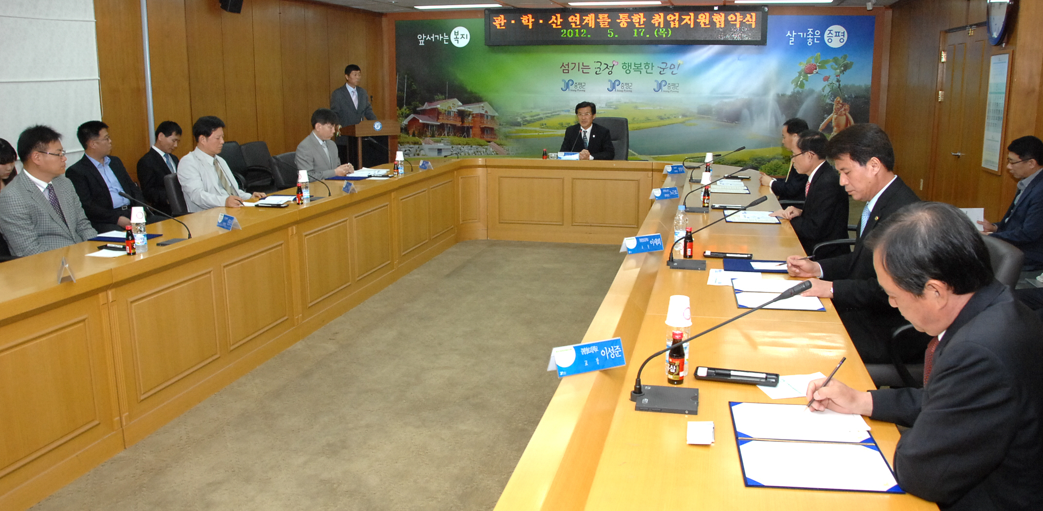 증평군에서는 지역 내 특성화 고등학교 졸업자 및 졸업예정자의 취업을 위해 17일 오후 3시 군청소회의실에서 관·산·학이 참여하는 취업지원협약을 체결했다.[보도자료실 참조]