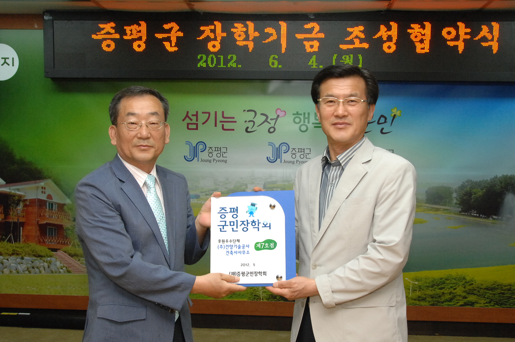 ㈜건양기공, 증평군민장학회 후원 제7호점 협약체결