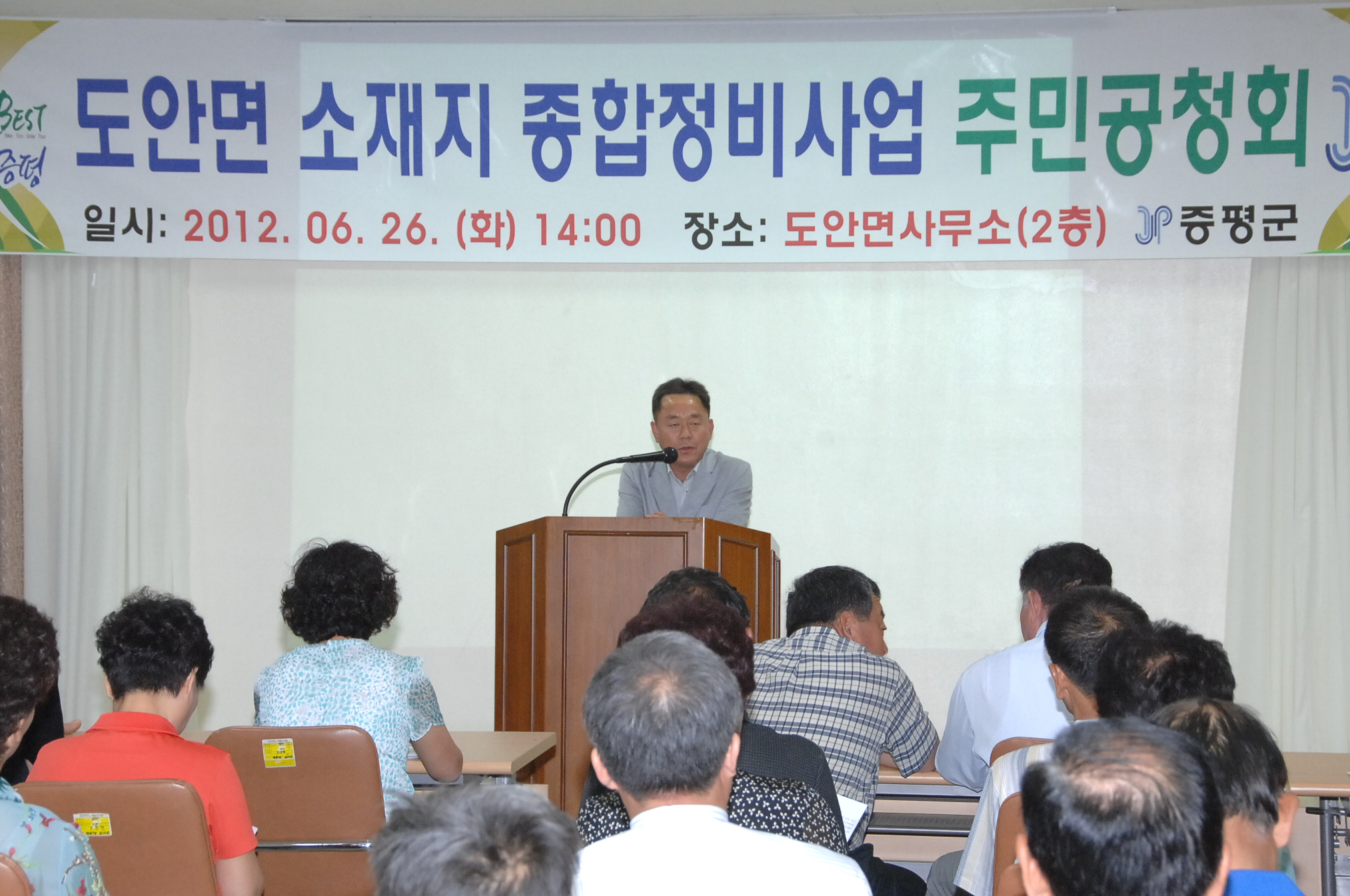 증평군은 26일 오후 2시 도안면사무소 2층 회의실에서 도안면소재지 종합정비사업 기본계획(안)에 대한 주민공청회를 개최했다. [보도자료실 참조]