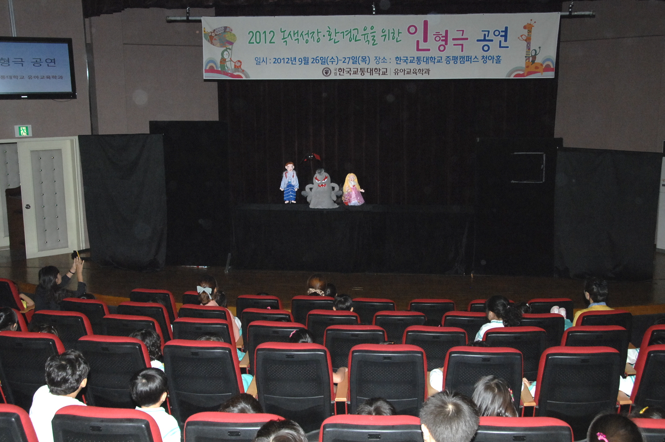 증평군(군수 홍성열)은 한국교통대학교 유아교육학과와 업무협약을 맺고 정부 주요정책인 녹색성장·지속가능발전교육을 주제로 지역 내 유치원‧어린이집 및 초등학교 저학년 학생 등 1,000여명을 대상으로 26일부터 27일까지 인형극을 공연했다. [보도자료실 참조]