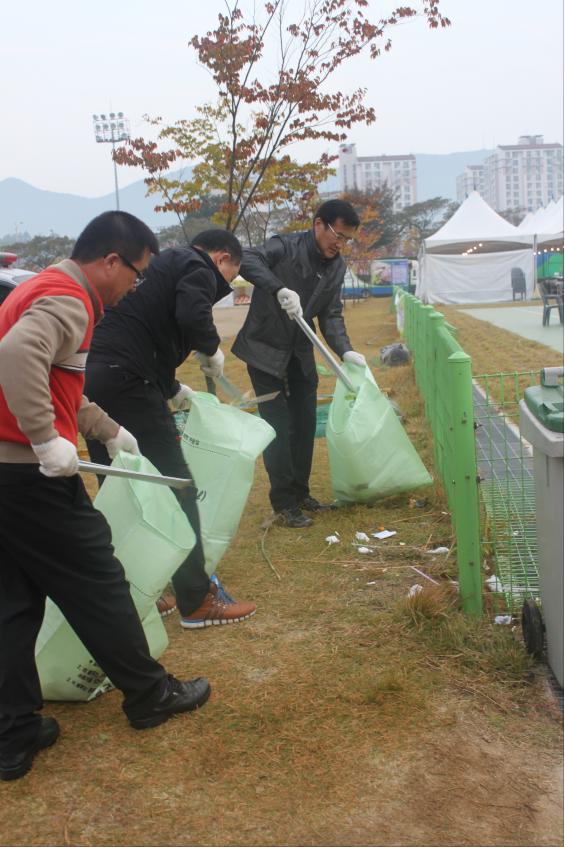 증평군 공무원 인삼골축제 행사장 아침청소
