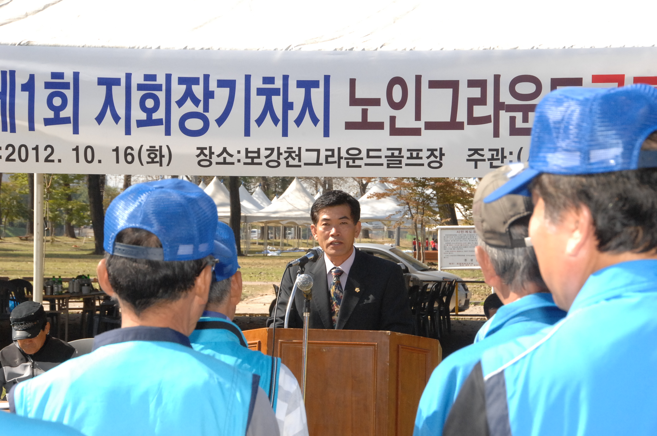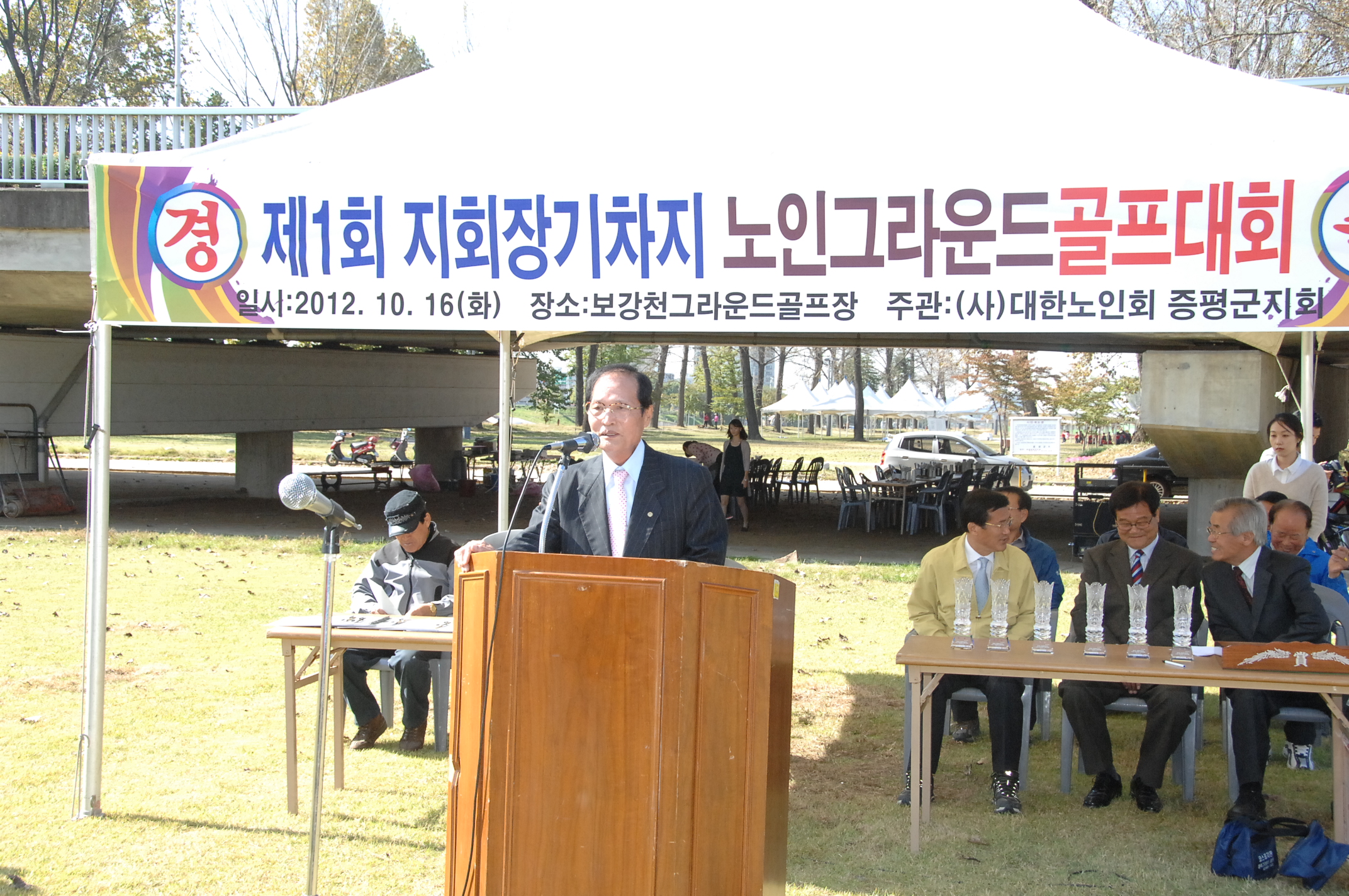 대한노인회 증평군지회장기 그라운드골프대회가 16일 오전 9시부터 보강천체육공원 잔디구장에서 열렸다. [보도자료실 참조]