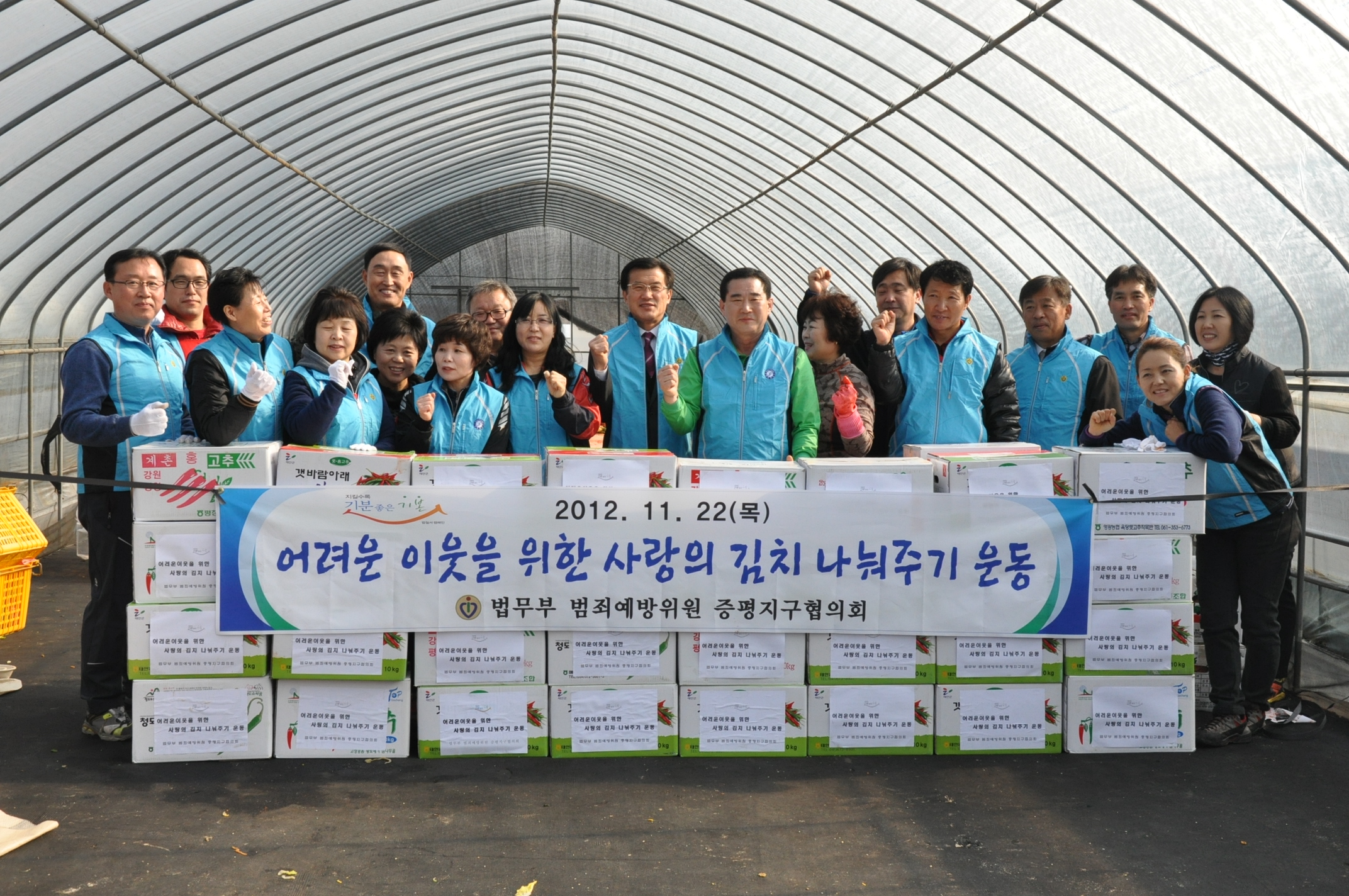 청주지방검찰청 산하 범죄예방위원 증평지구협의회(이하 증평범방위)는 28일 어려운 이웃을 위한 사랑의 김장 나눠주기 운동을 실시했다. [보도자료실 참조]