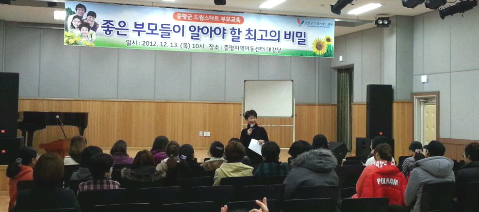 증평군 드림스타트 센터에서는 13일 오전 10시 증평 지역아동센터 대강당에서 ‘좋은 부모들이 알아야할 최고의 비밀’을 주제로 부모교육을 실시했다. [보도자료실 참조]