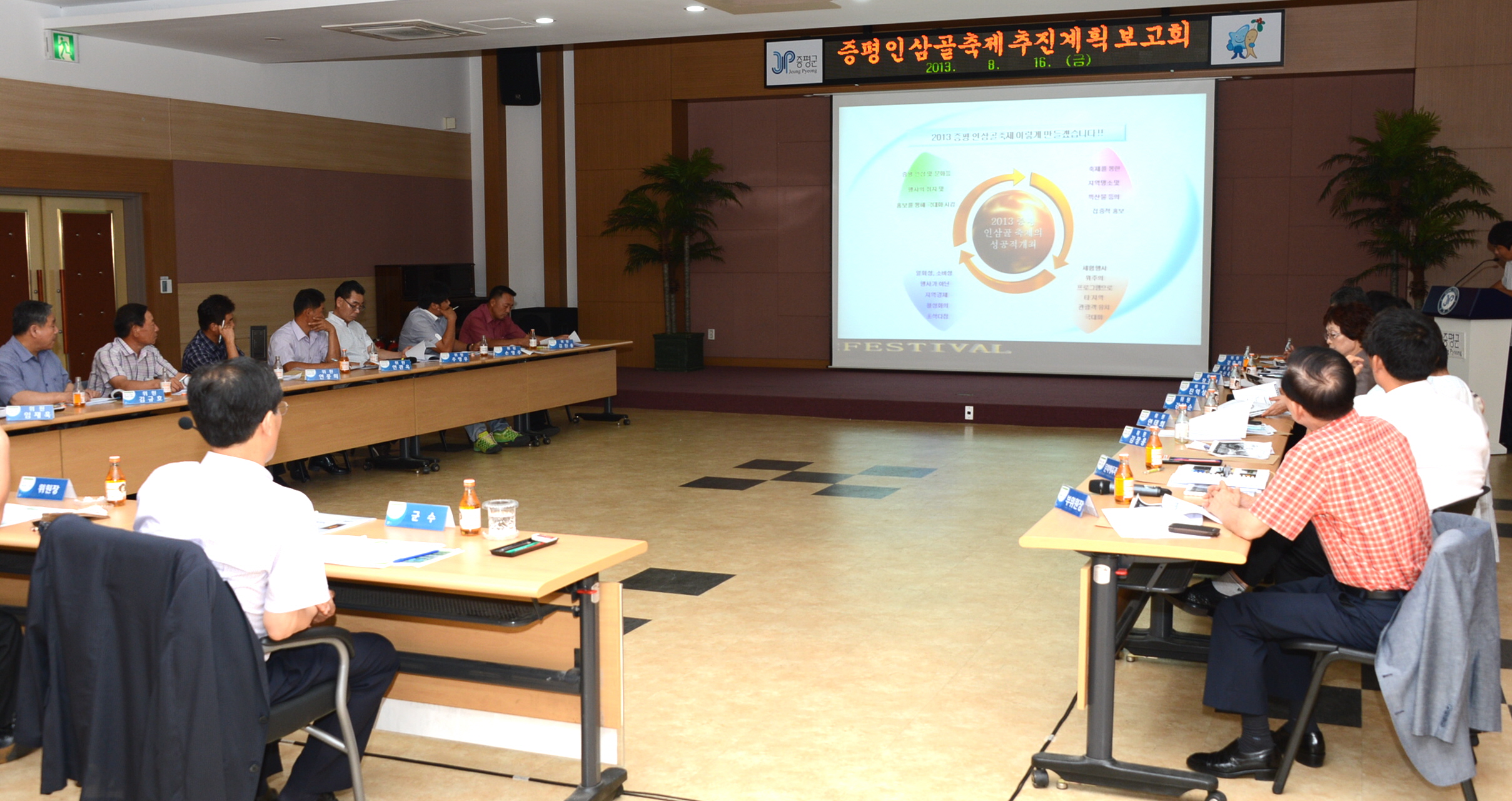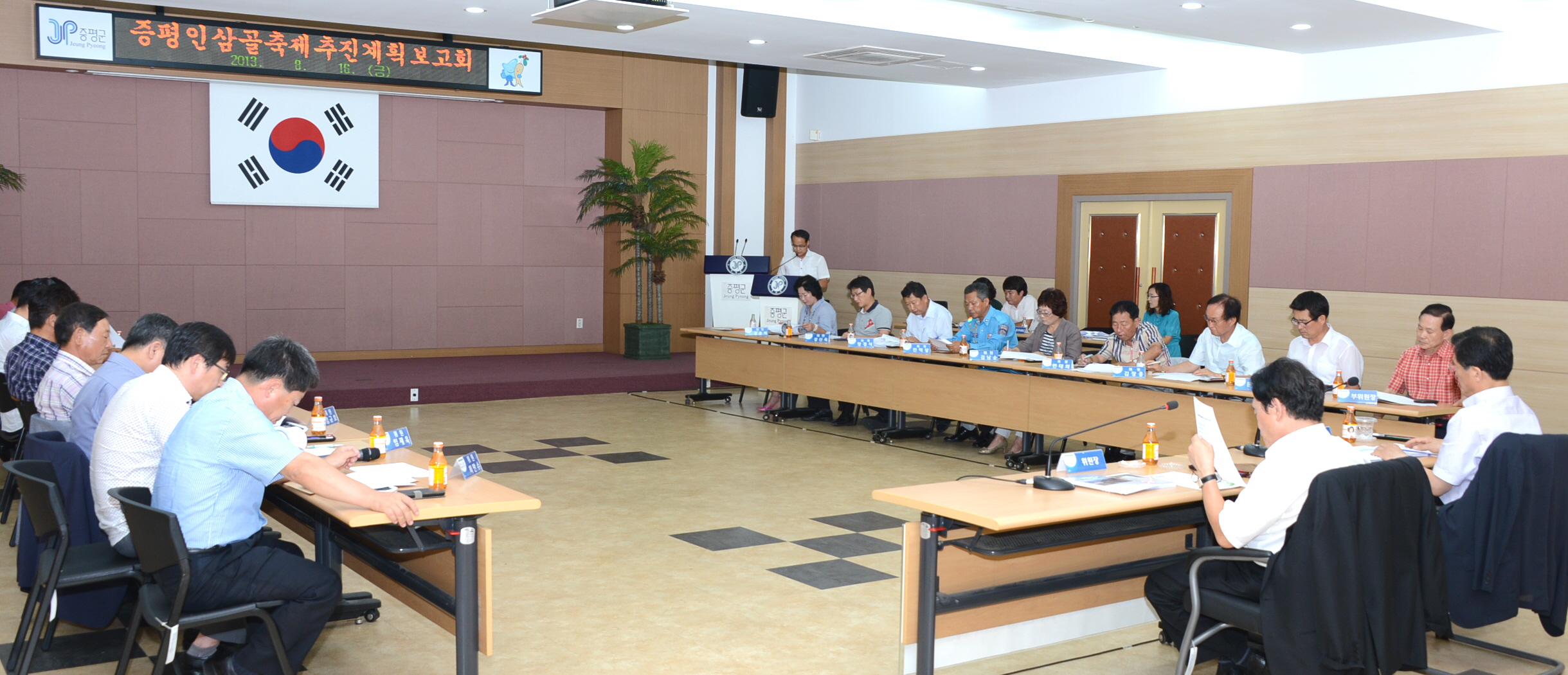 증평군은 16일 오후 2시 군청 대회의실에서 홍성열 증평군수, 최건성 문화원장을 비롯한 관련 추진위원과 관계 공무원 등 30여명이 참석한 가운데 ‘증평 인삼골축제’의 차질 없는 준비를 위한 축제 추진계획 보고회를 개최했다. [보도자료실 참조]