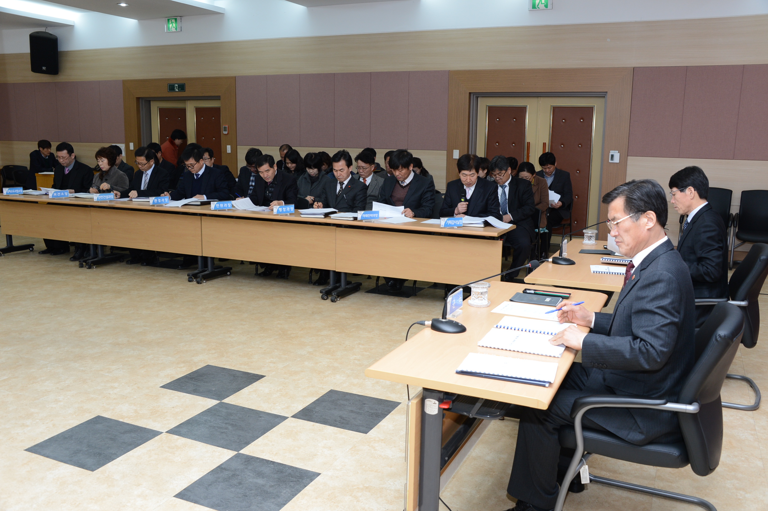 증평군은 6일 군청 대회의실에서 각 부서장과 팀장 등 80여명이 모인 가운데 홍성열 군수 주재로 상반기 균형집행 및 2015년도 정부 예산확보를 위한 대책보고회를 개최했다. [보도자료실 참조]