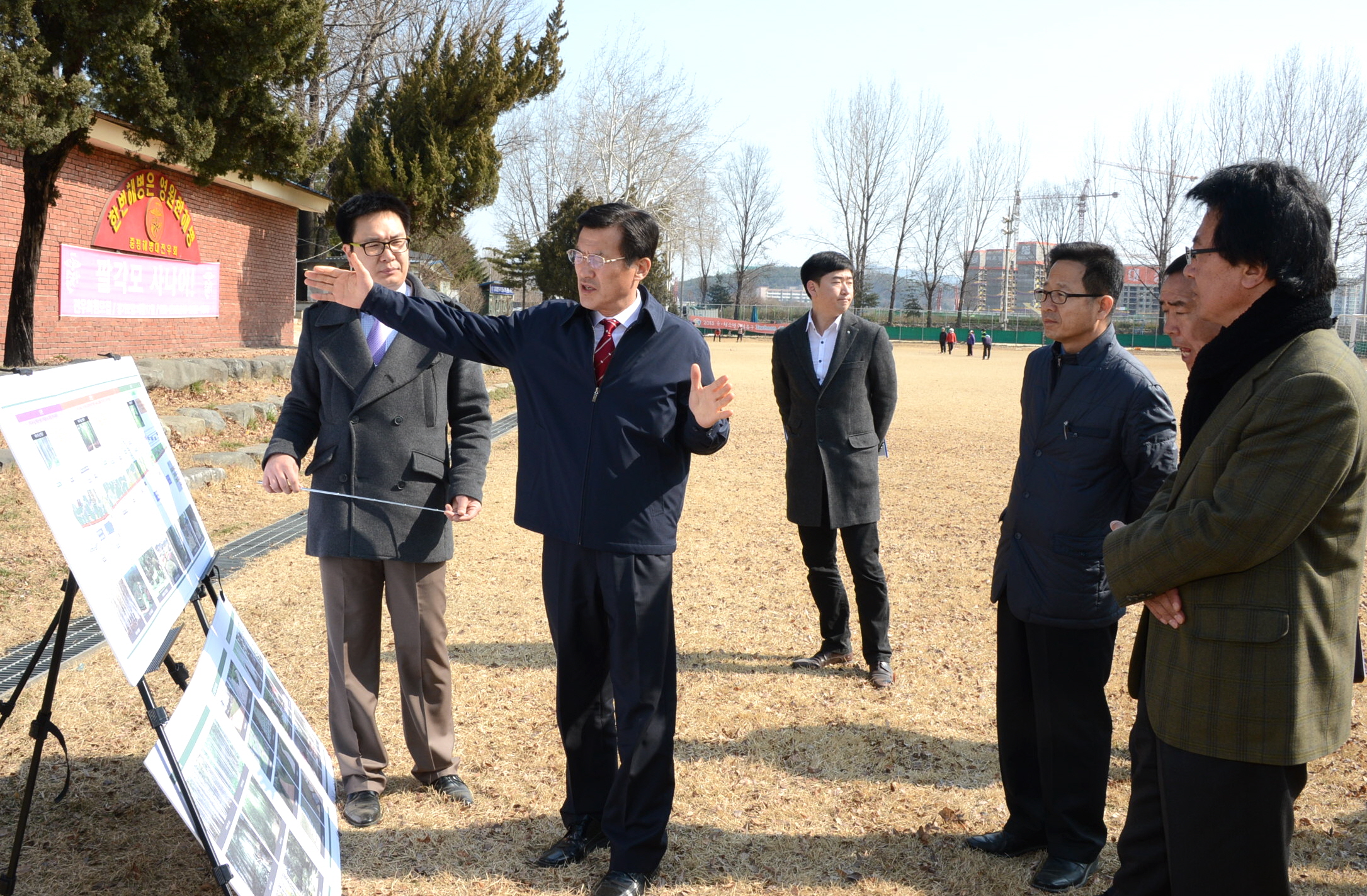 홍성열 증평군수는 7일 동절기 공사 중지 해제에 따라 보강천 녹색길 조성사업, 증평대교 교량확장공사와 금년도 추진예정인 녹색나눔숲 조성사업 대상지 등에 대해 현장점검을 실시했다. [보도자료 참조]