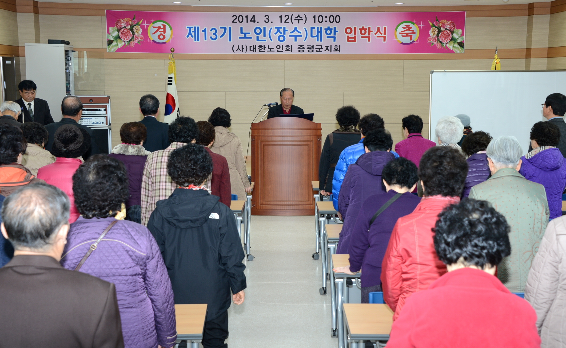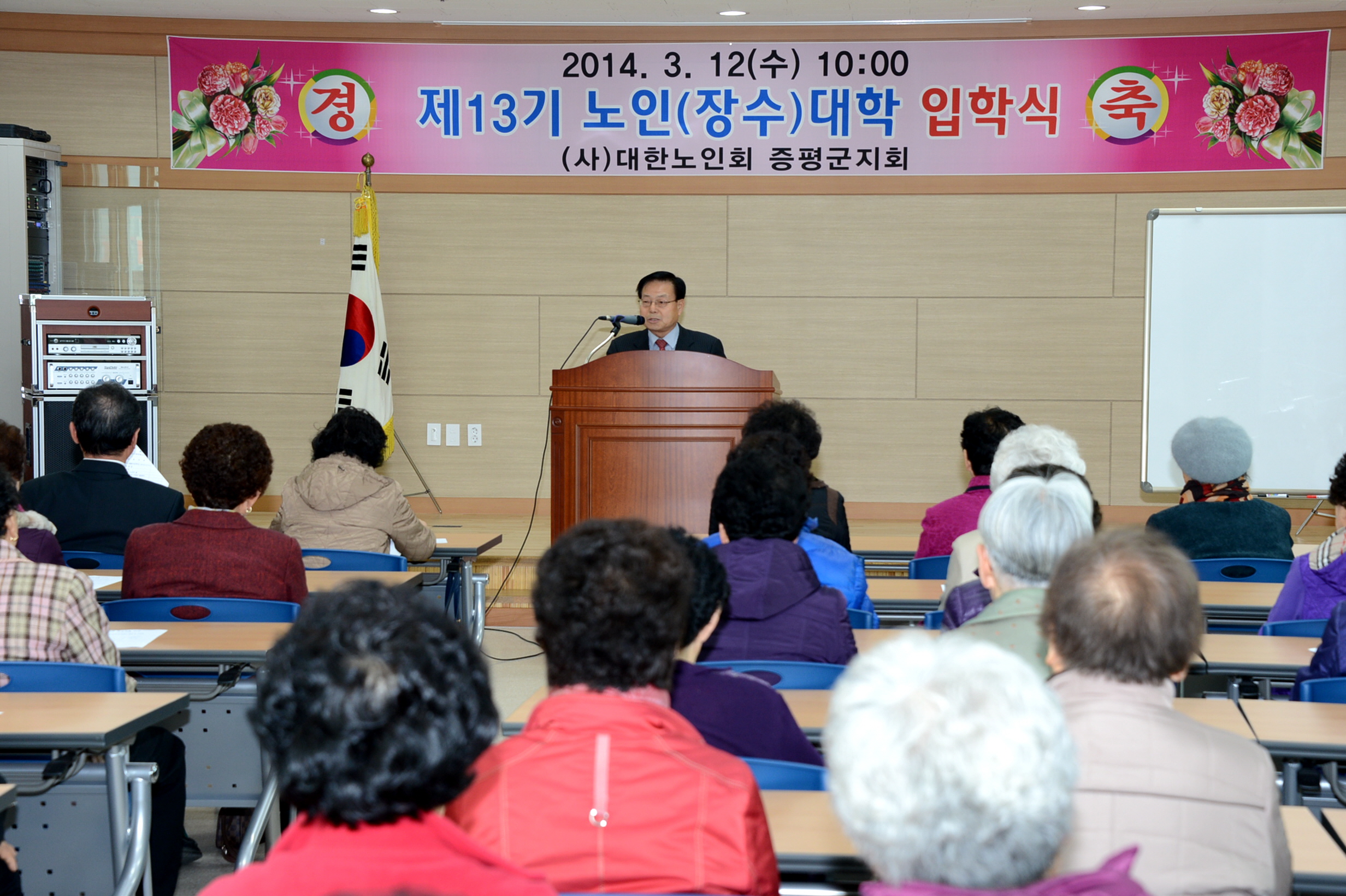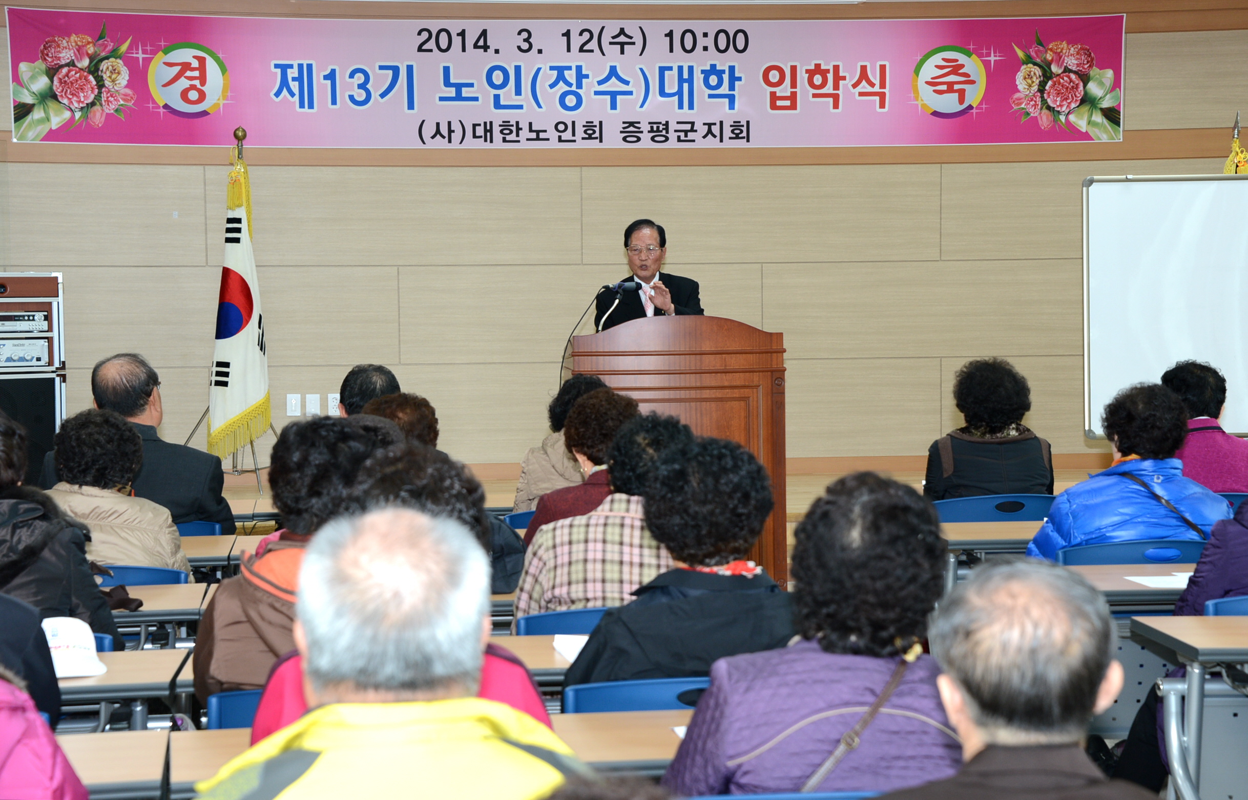 (사)대한노인회 증평군지회부설 노인대학(학장 연기봉)은 12일 증평군노인회관에서 제13기 노인(장수)대학 입학식을 갖고 개강했다. [보도자료실 참조]