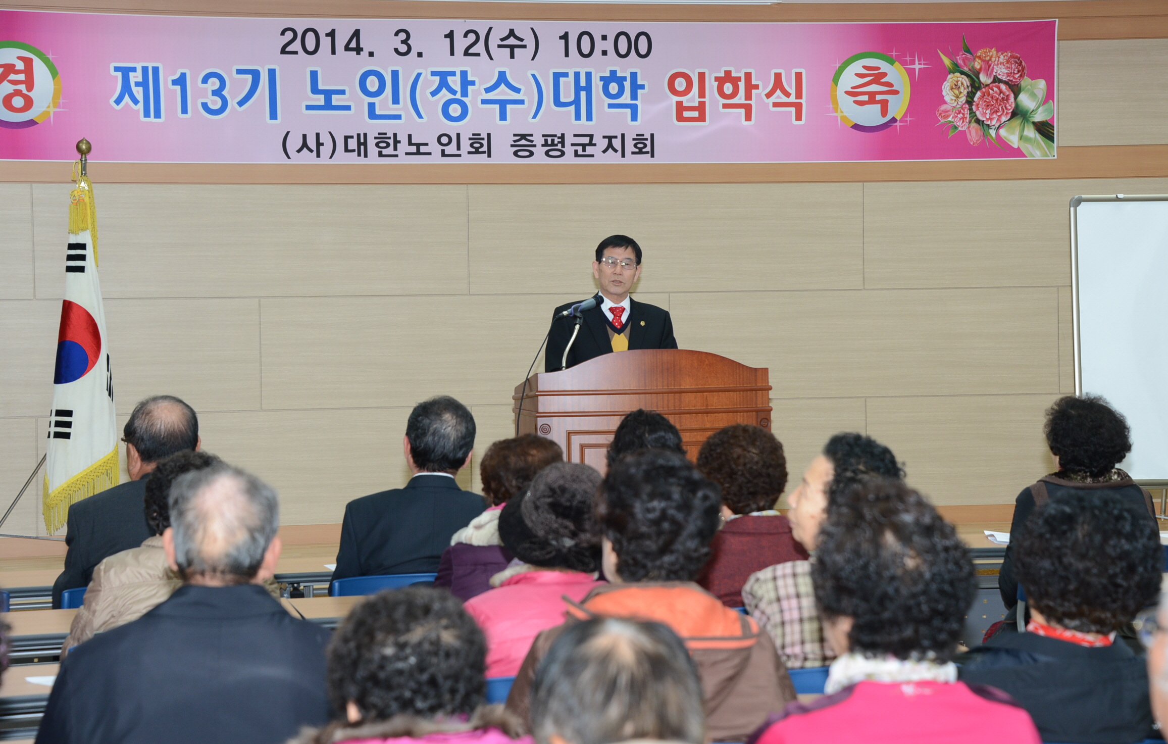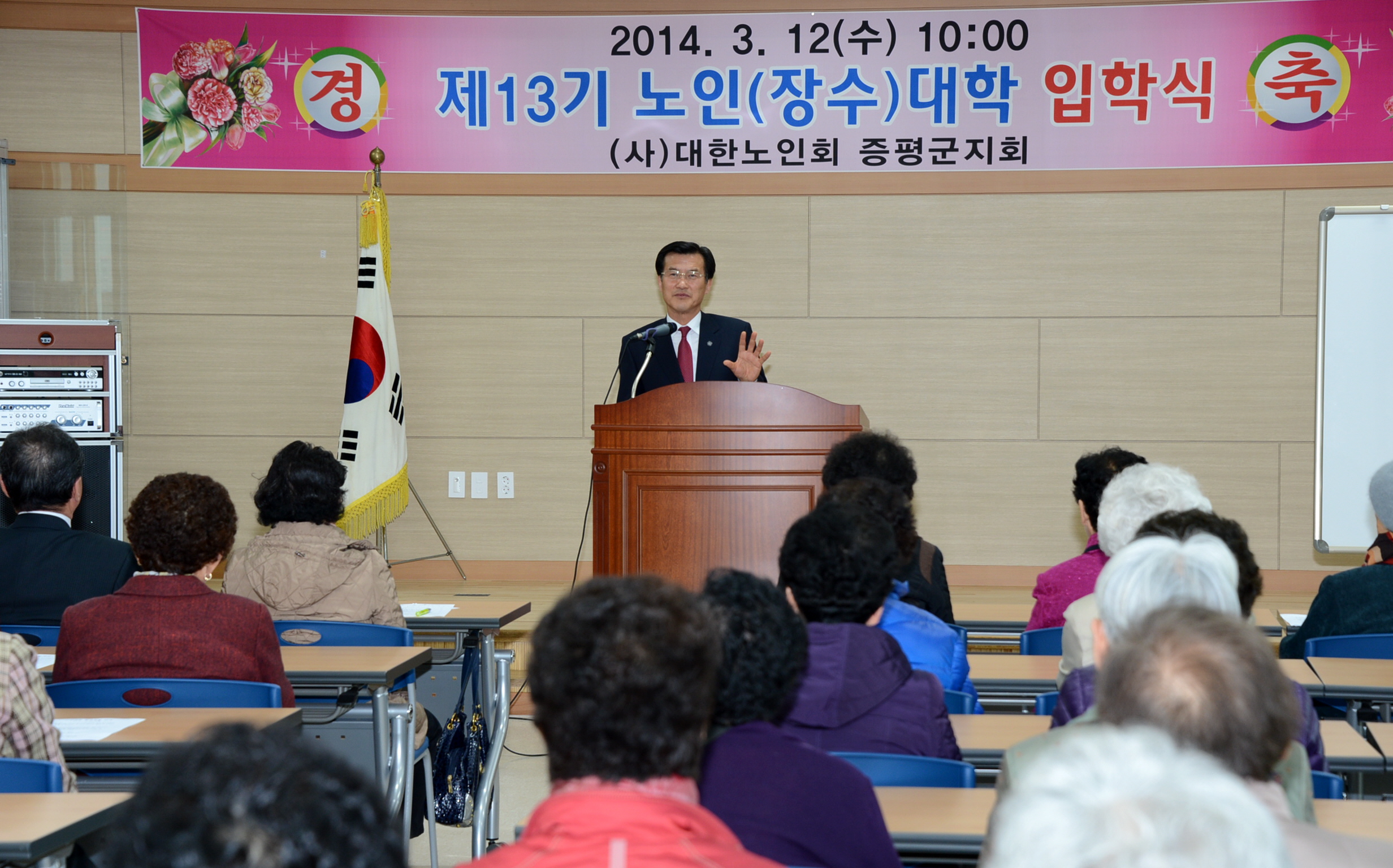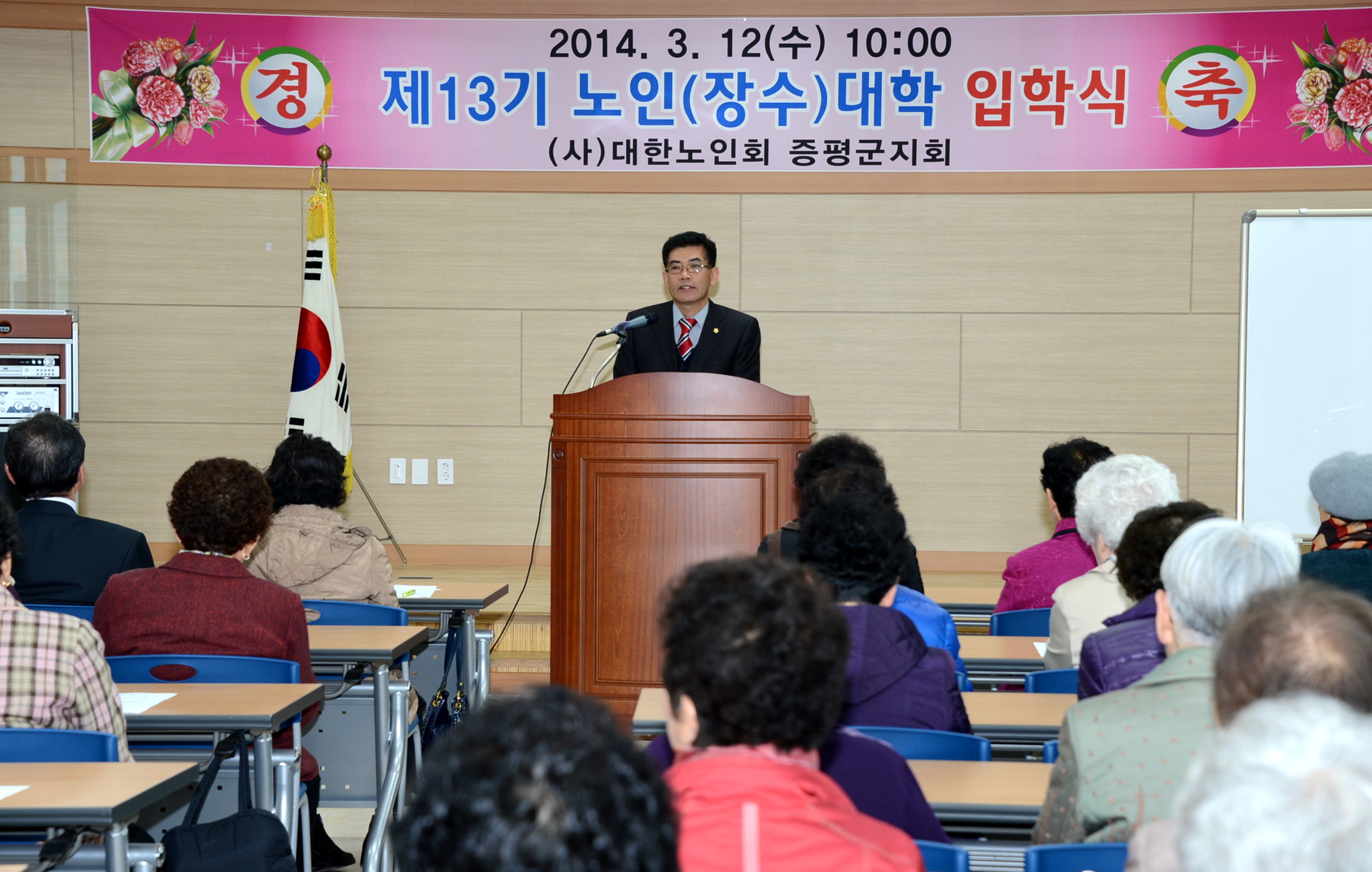 (사)대한노인회 증평군지회부설 노인대학(학장 연기봉)은 12일 증평군노인회관에서 제13기 노인(장수)대학 입학식을 갖고 개강했다. [보도자료실 참조]