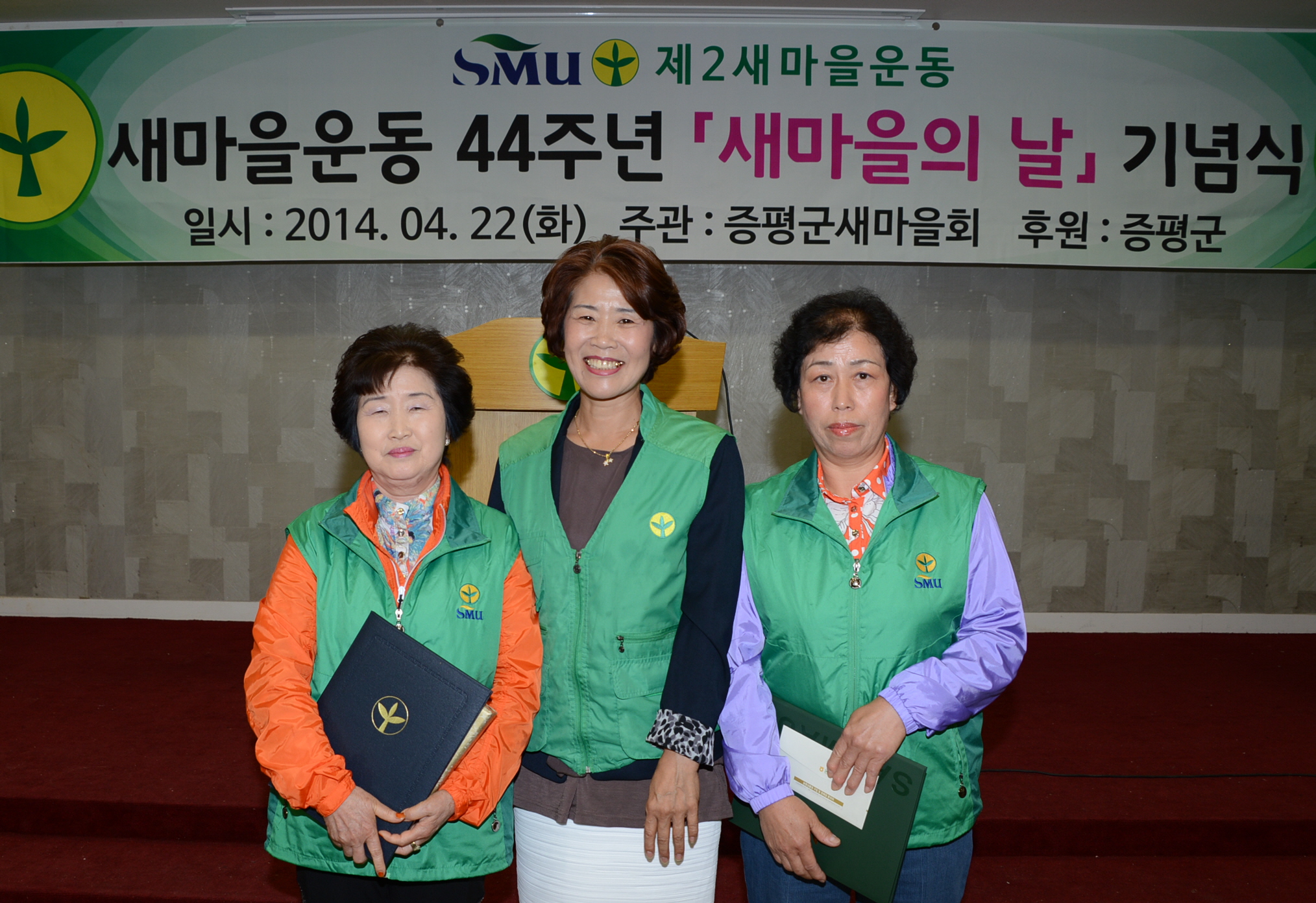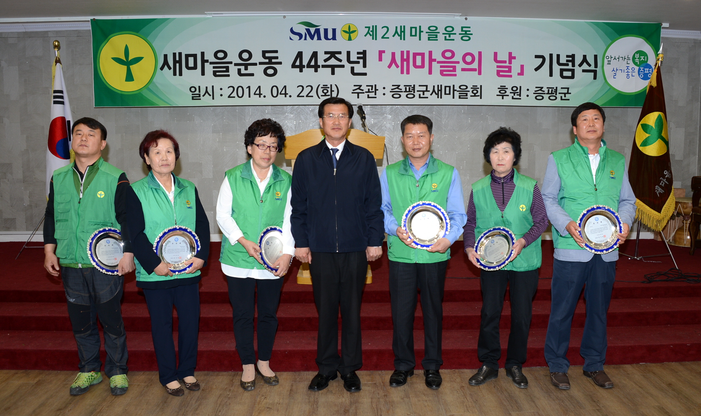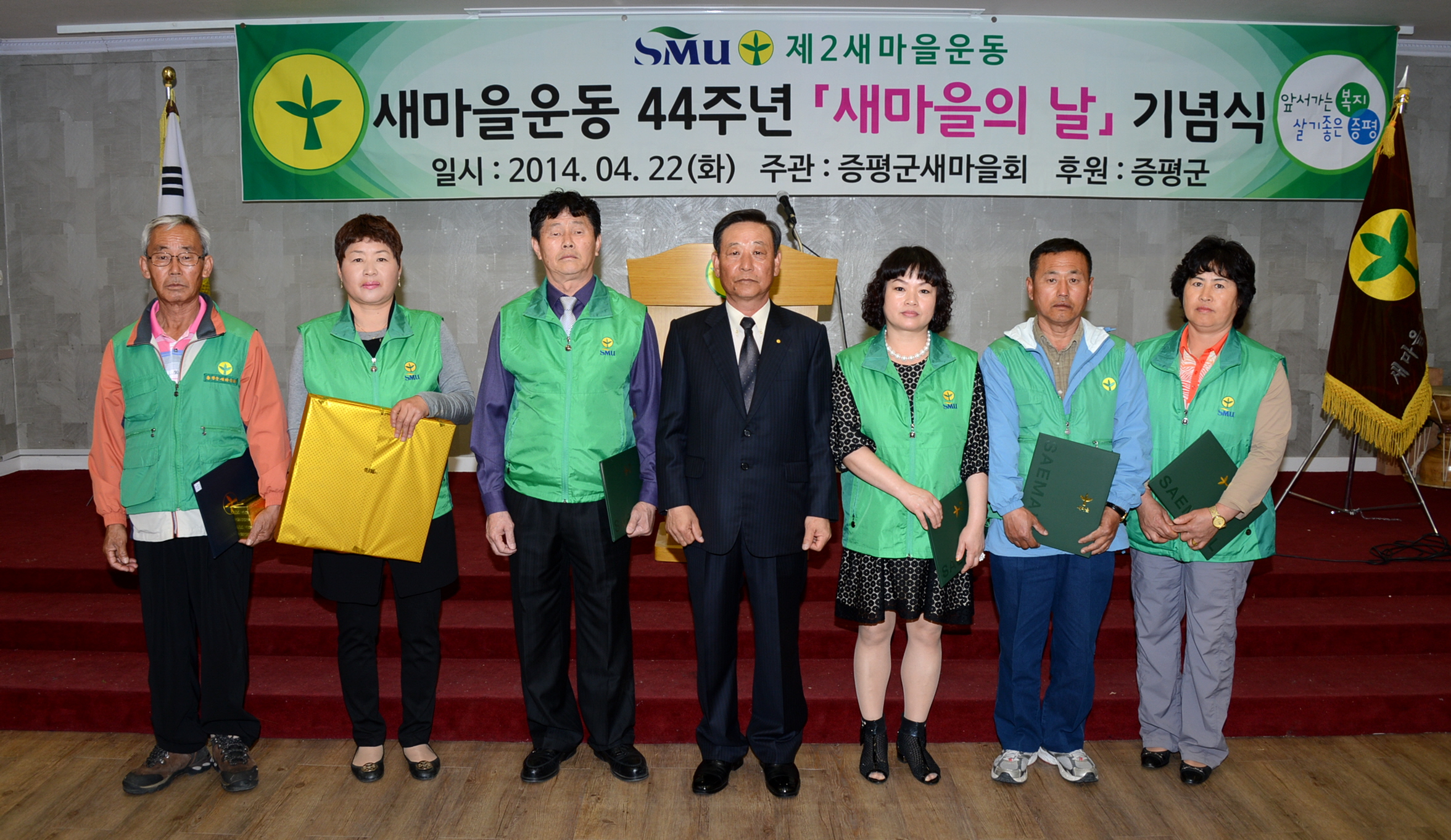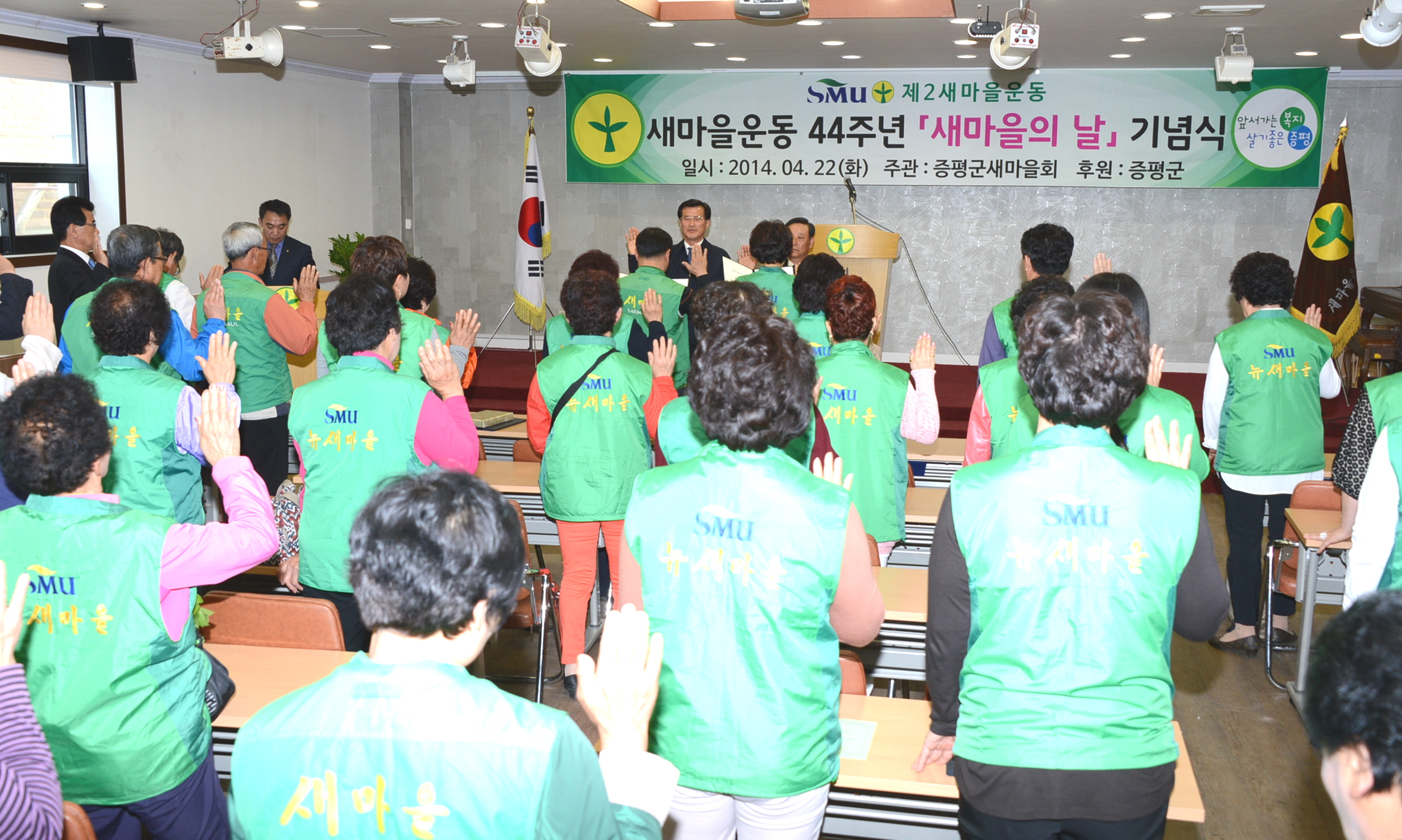 증평군새마을회(회장 강성오)는 22일(화) 증평여성회관에서 이시종 충북도지사, 홍성열 군수, 박석규 군의장을 비롯해 새마을지도자, 각급 지역인사 등 100여명이 참석한 가운데 ‘새마을운동 44주년 새마을의 날 기념행사’를 개최했다. [보도자료실 참조]