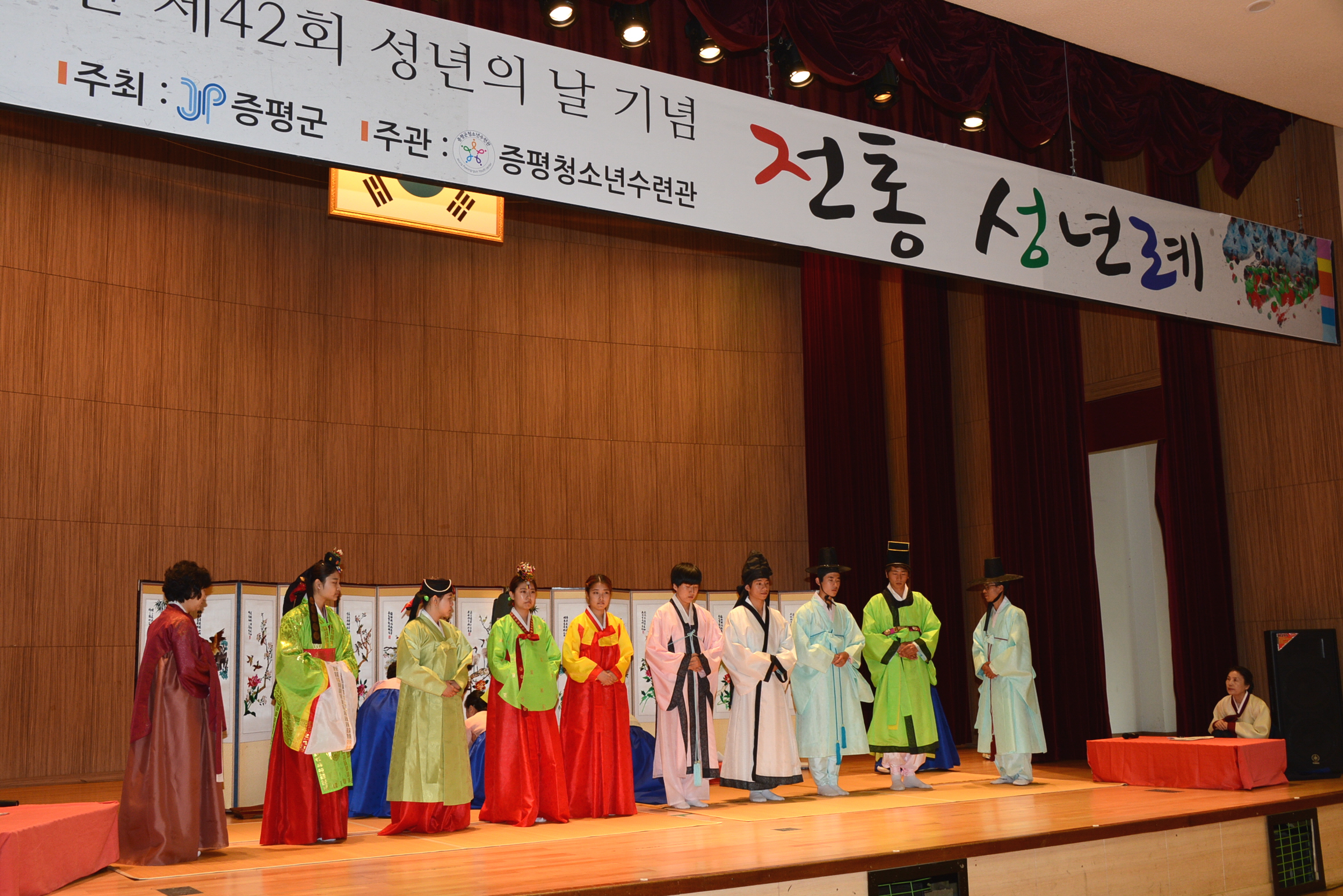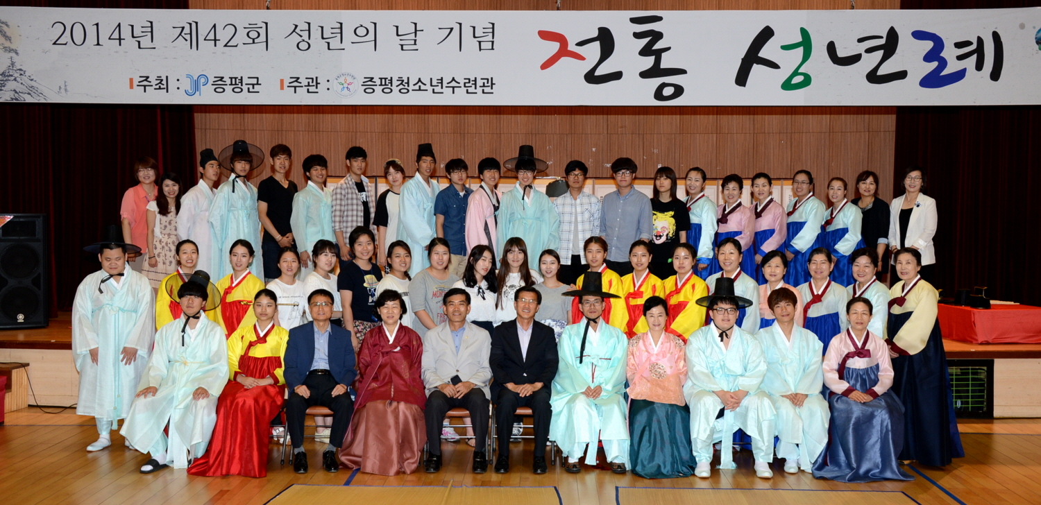 증평군청소년수련관(관장 강경구)은 20일 제42회 성년의 날을 맞아 수련관 2층 대강당에서‘전통 성년식 관례(冠禮)행사’를 가졌다. [보도자료실 참조]