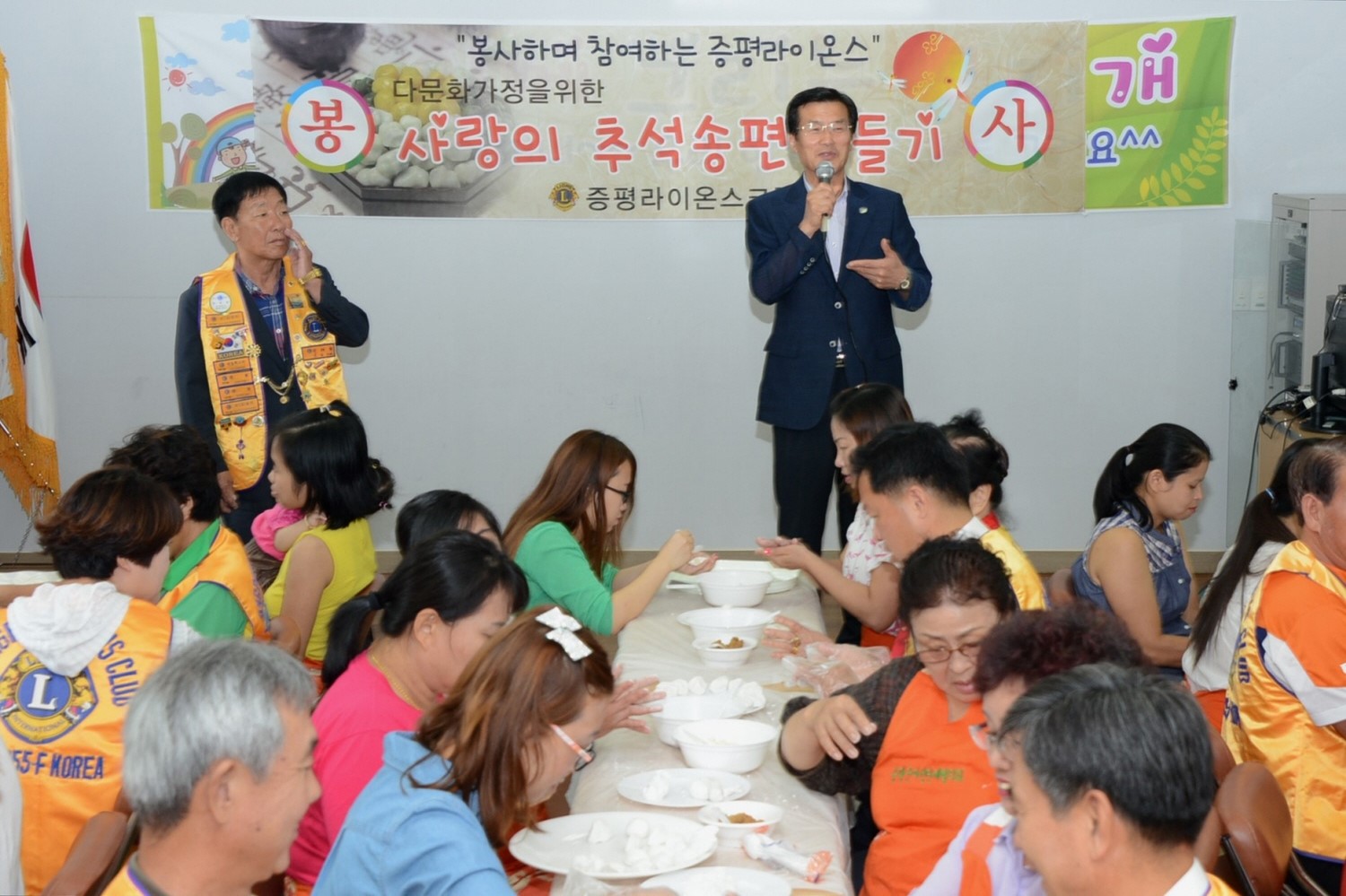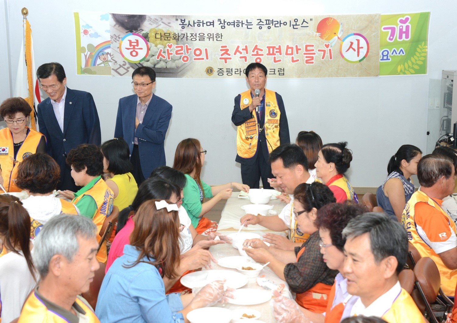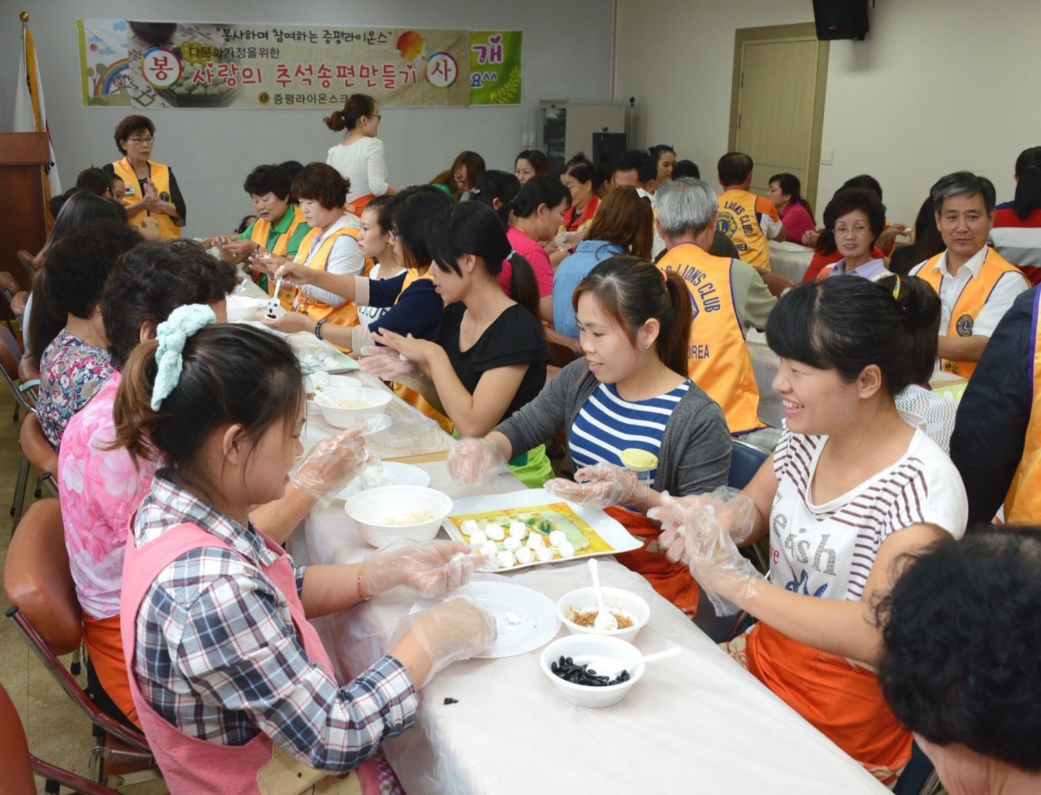 증평라이온스클럽(회장 연태희)은 5일 오전 10시에 증평군다문화가족지원센터에서 다문화 가족과 함께 송편 만들기 행사를 가졌다. [보도자료실 참조]