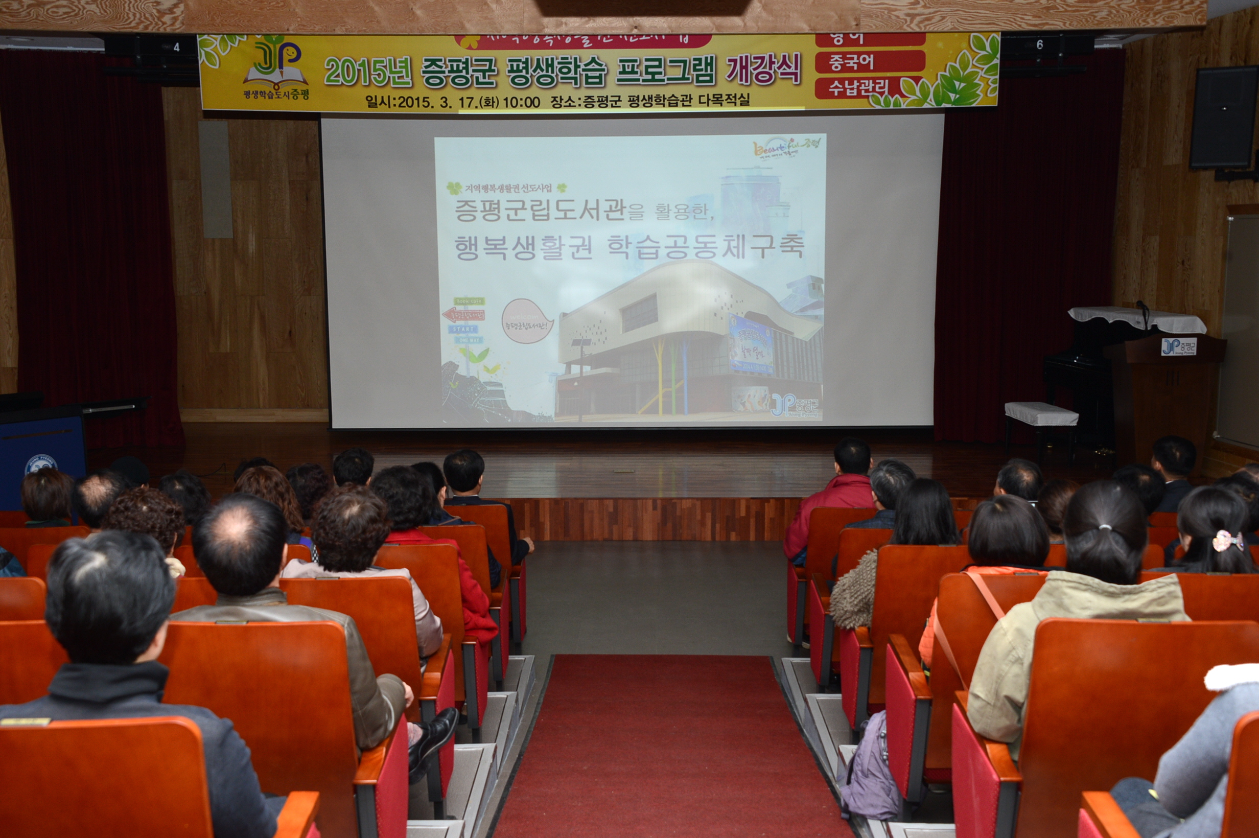 증평군은 17일 오전 10시 증평군립도서관 3층 평생학습관에서 2015년 지역행복생활권 선도사업 평생학습프로그램 개강식을 가졌다. [보도자료실 참조]