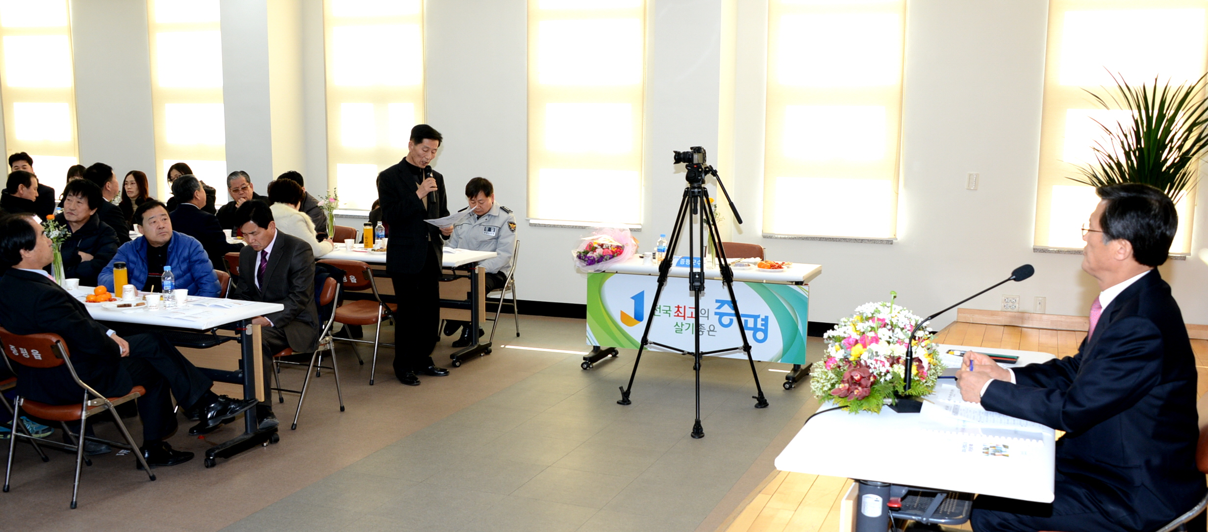 홍성열 증평군수는 2일 증평읍을 방문해 2016년도 주요업무 추진방향과 현안사업에 대해 설명하고 주민과의 대화를 가졌다.(보도자료실 참조)