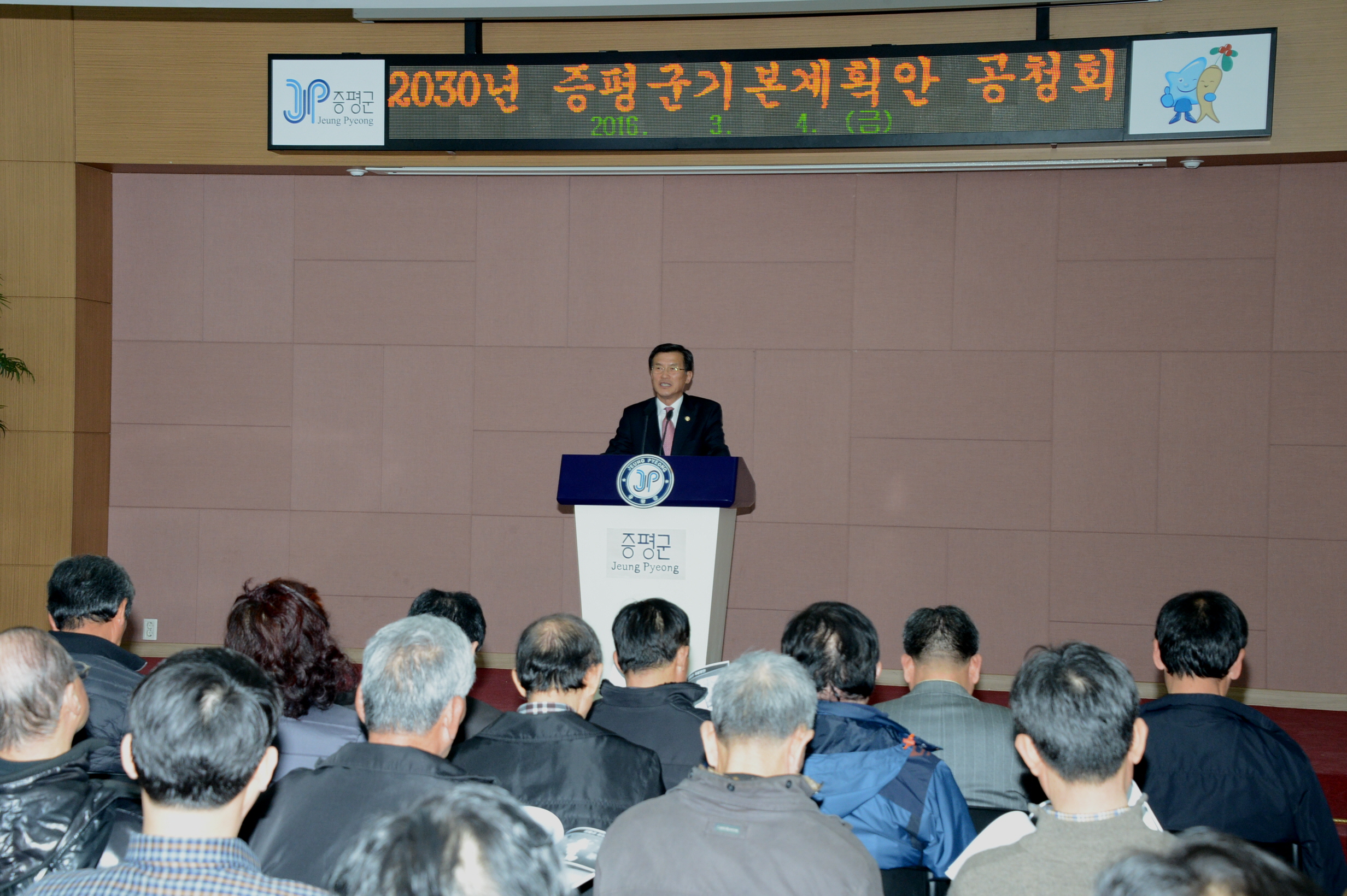 증평군은 도시 미래상을 미래를 여는 빛, 젊은 도시 증평으로 정하고 신재생 첨단 산업도시 건설, 살기 좋은 웰빙 전원도시 건설, 더불어 사는 복지도시 건설을 2030년 주요 계획목표로 정하고, 4일 군청 대회의실에서 주민 및 관계전문가 등 100여명이 참석한 가운데 2030년 증평군 기본 계획안에 대한 공청회를 가졌다.[보도자료실 참조]