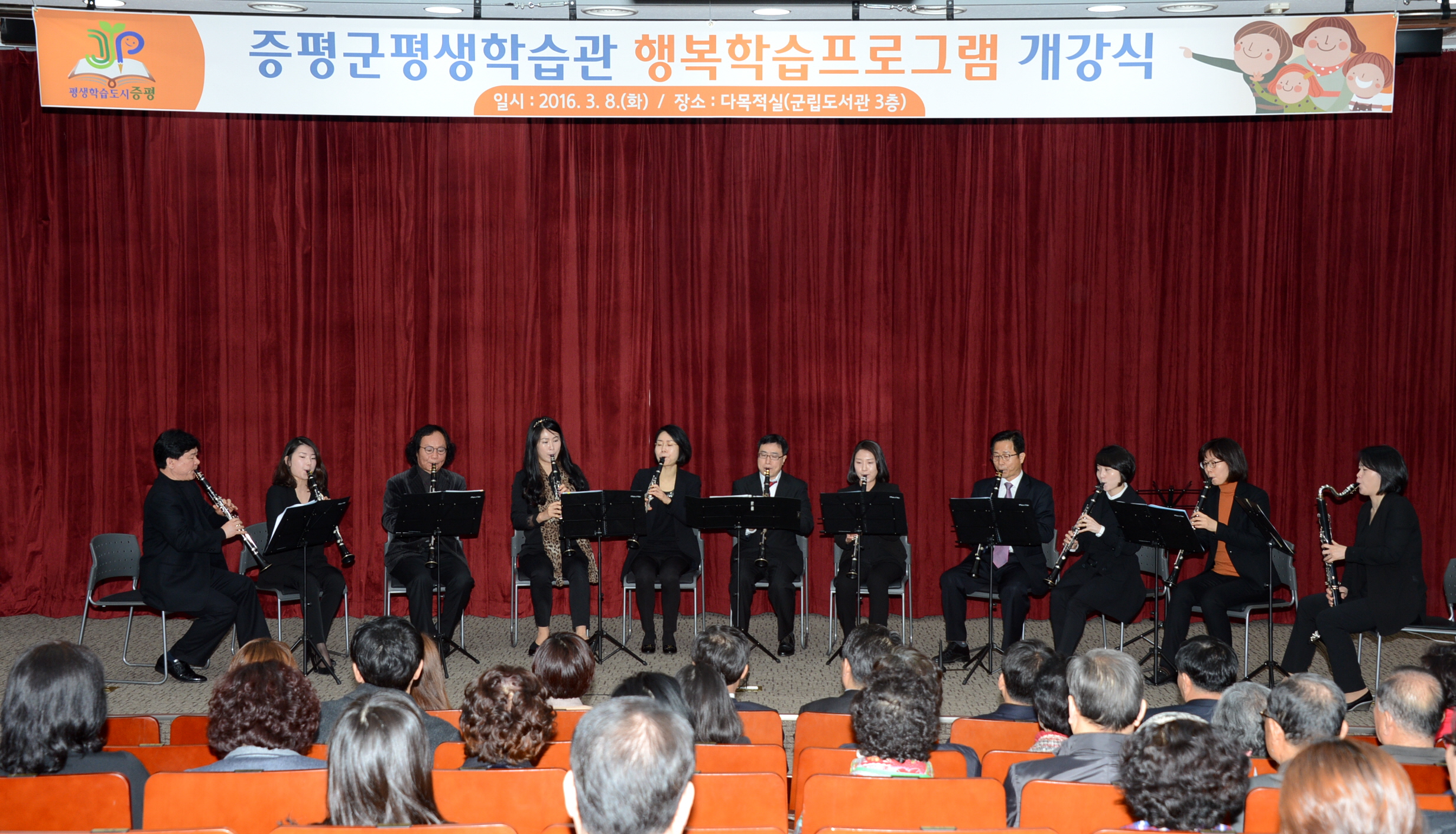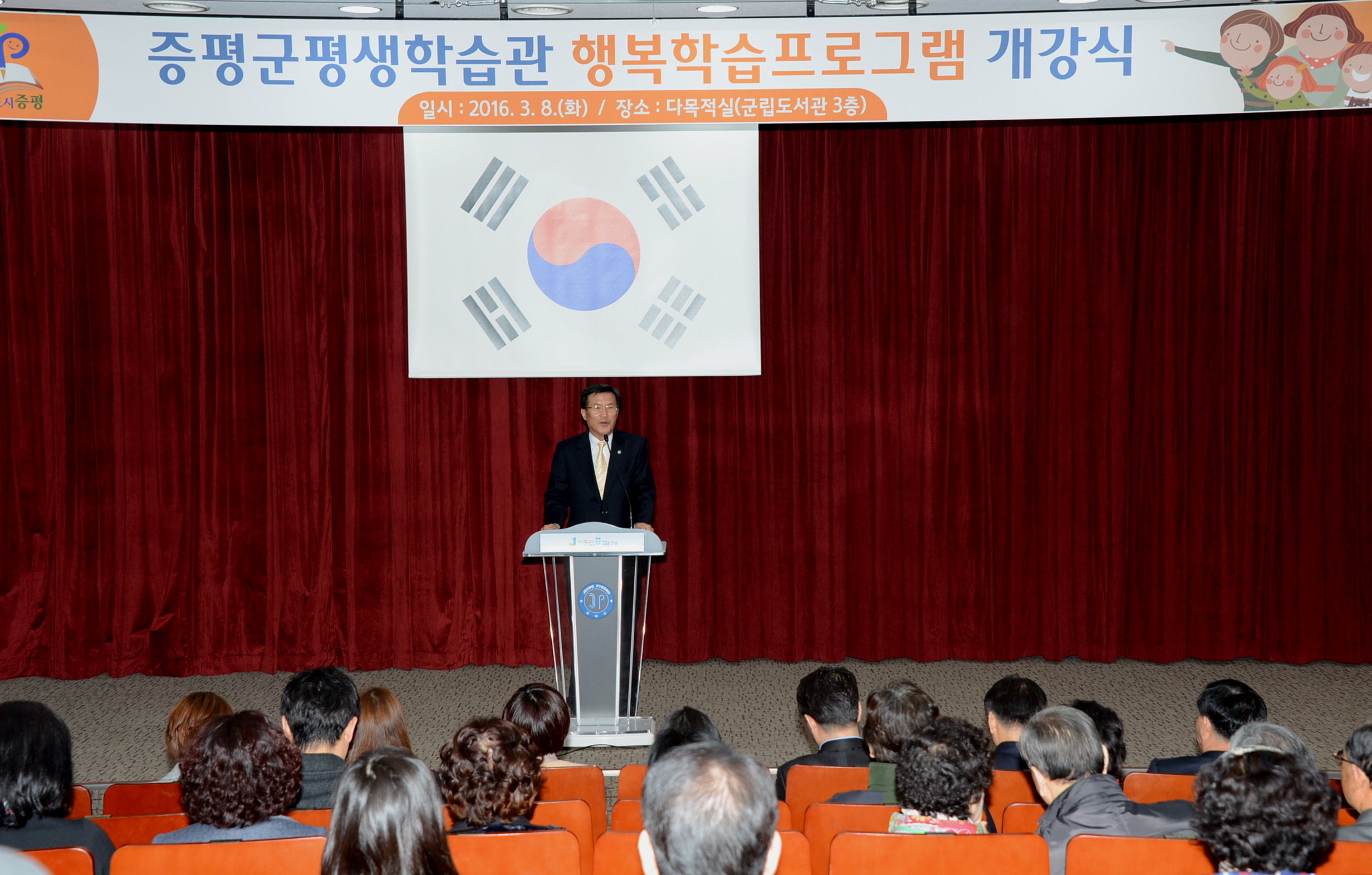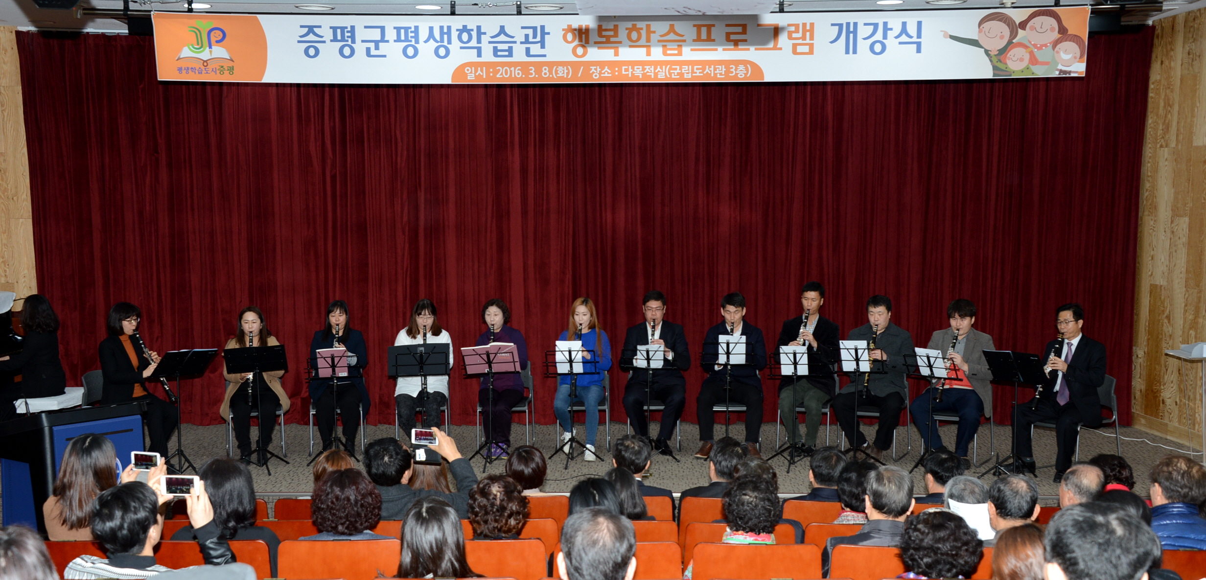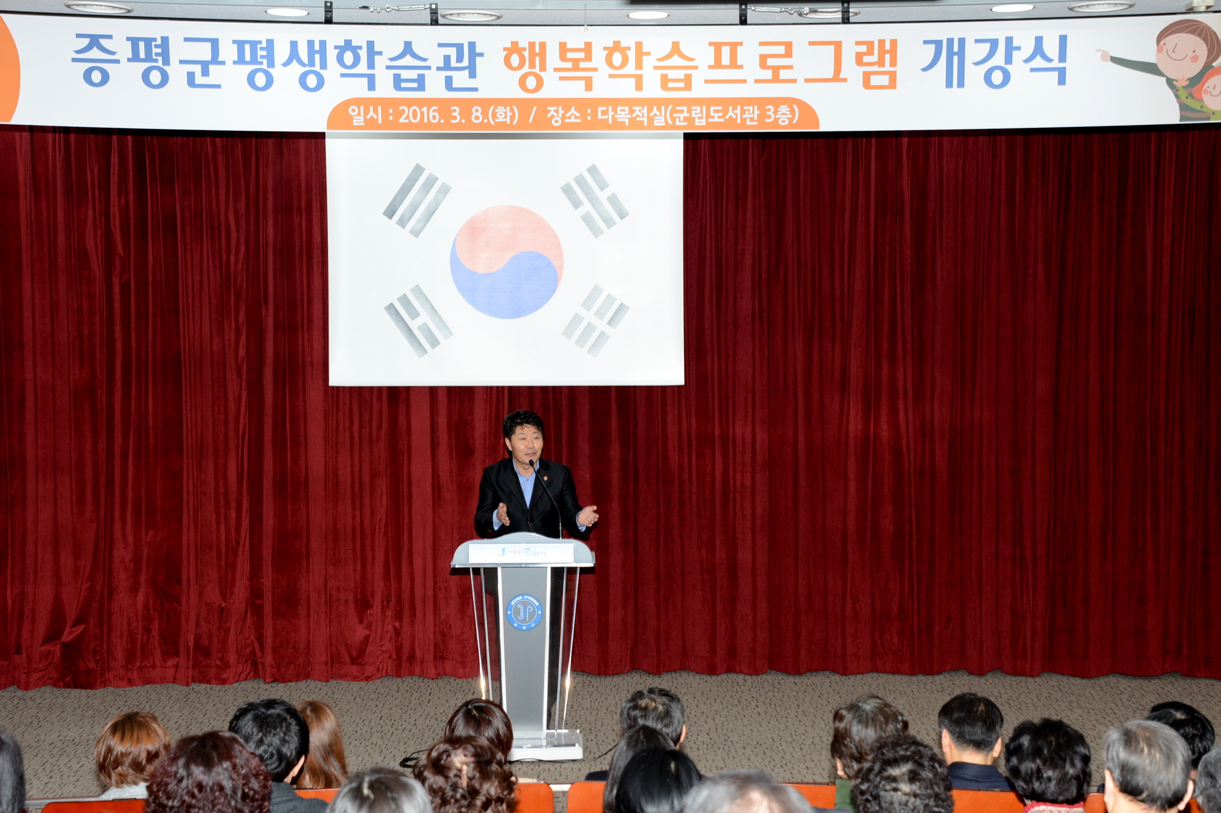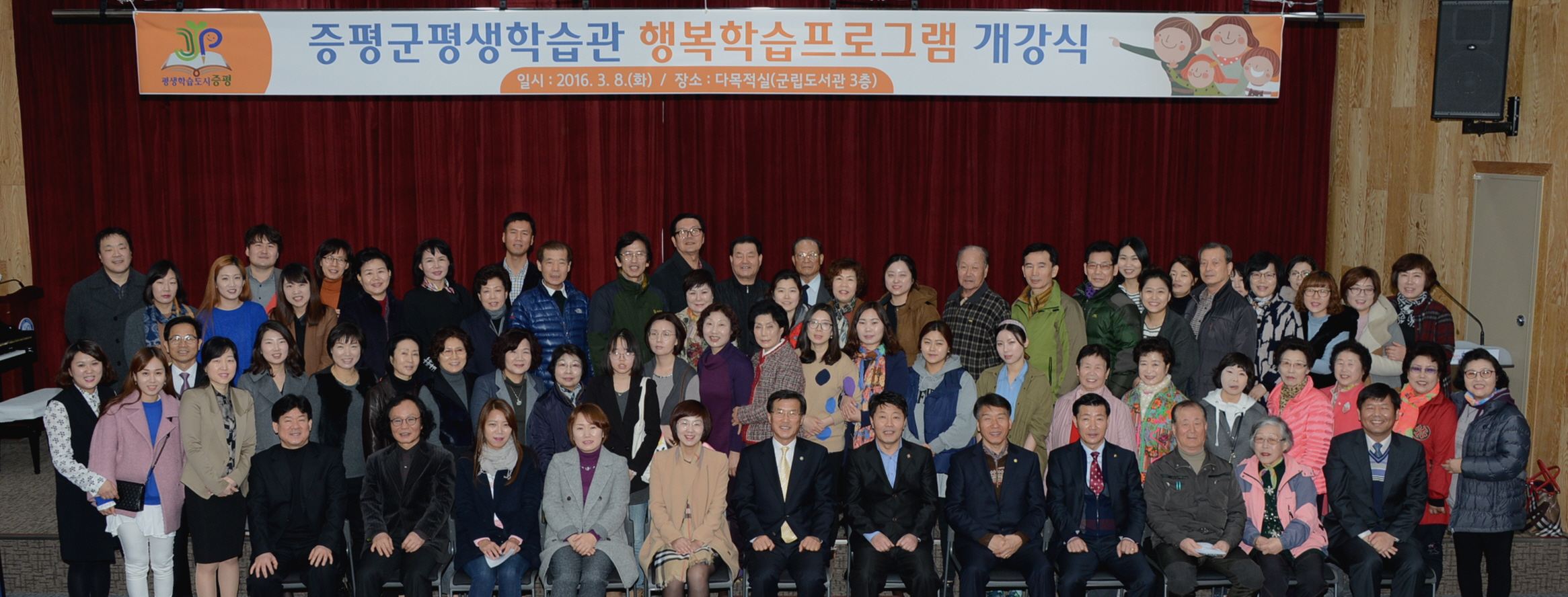 증평군은 8일 증평군 평생학습관(증평군립도서관 3층)에서 2016년 지역행복생활권 선도 사업 행복학습프로그램 개강식을 가졌다.(보도자료실 참조)