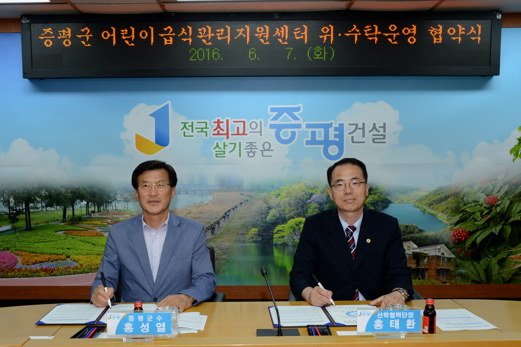 증평군은 7일 오후 5시 군청 소회의실에서 증평군 어린이급식관리지원센터로 선정된 한국교통대학교 산학협력단과 위․수탁 협약을 체결했다.(보도자료실 참조)