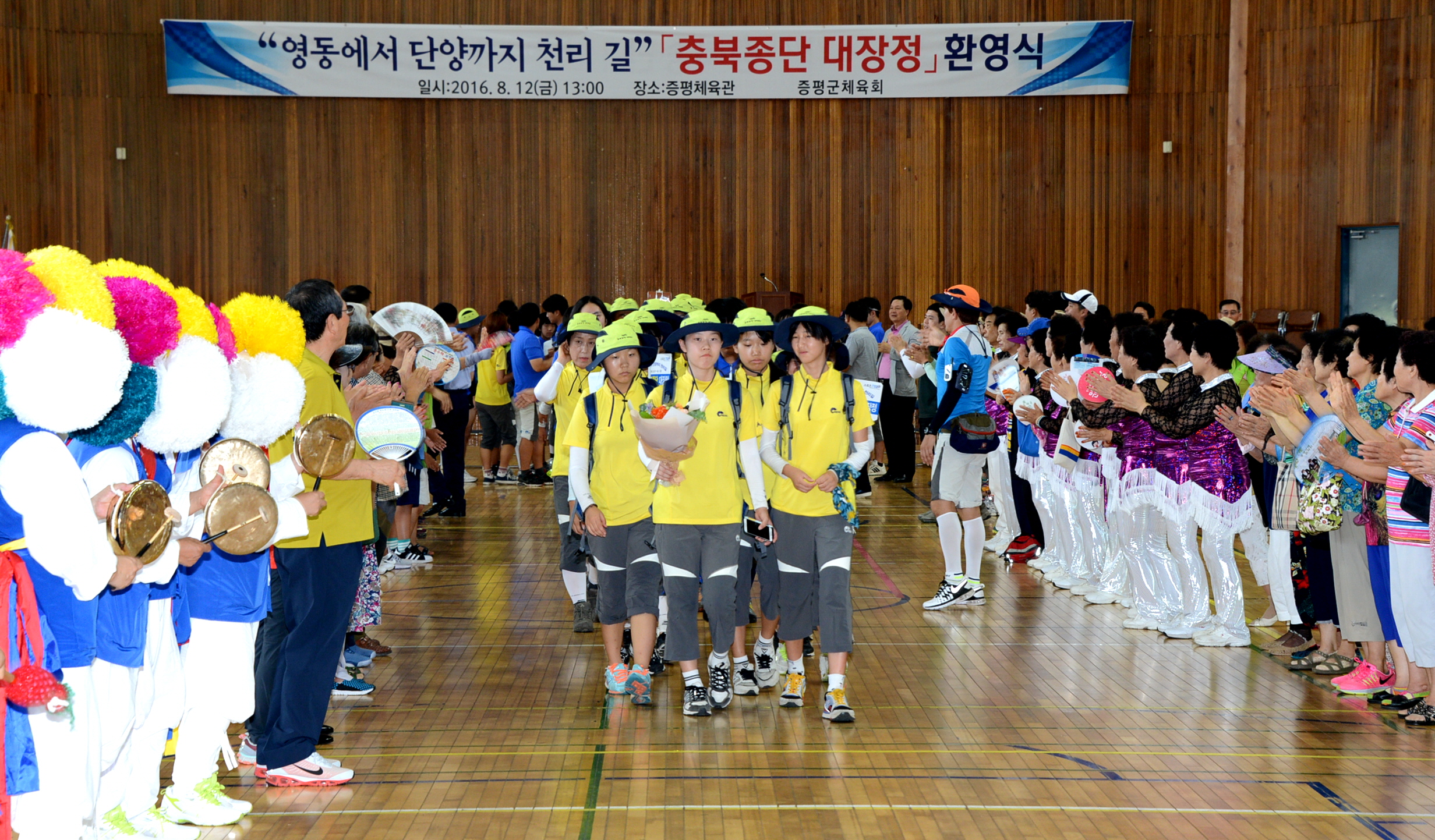 증평군은 12일 증평체육관에서 제4회 충북종단 대장정의 마지막을 기념하는 환영행사를 개최했다.(도자료실 참조)