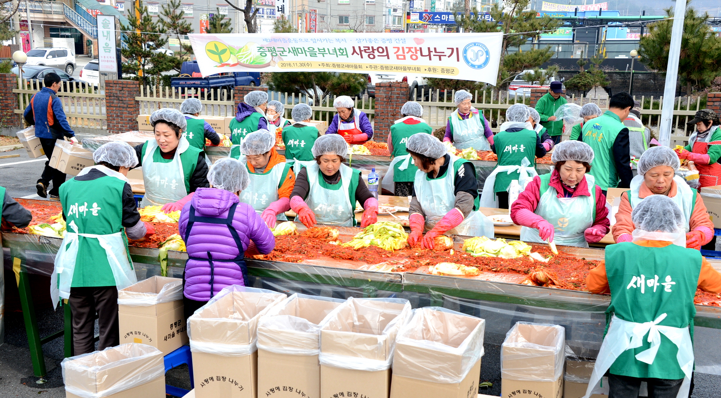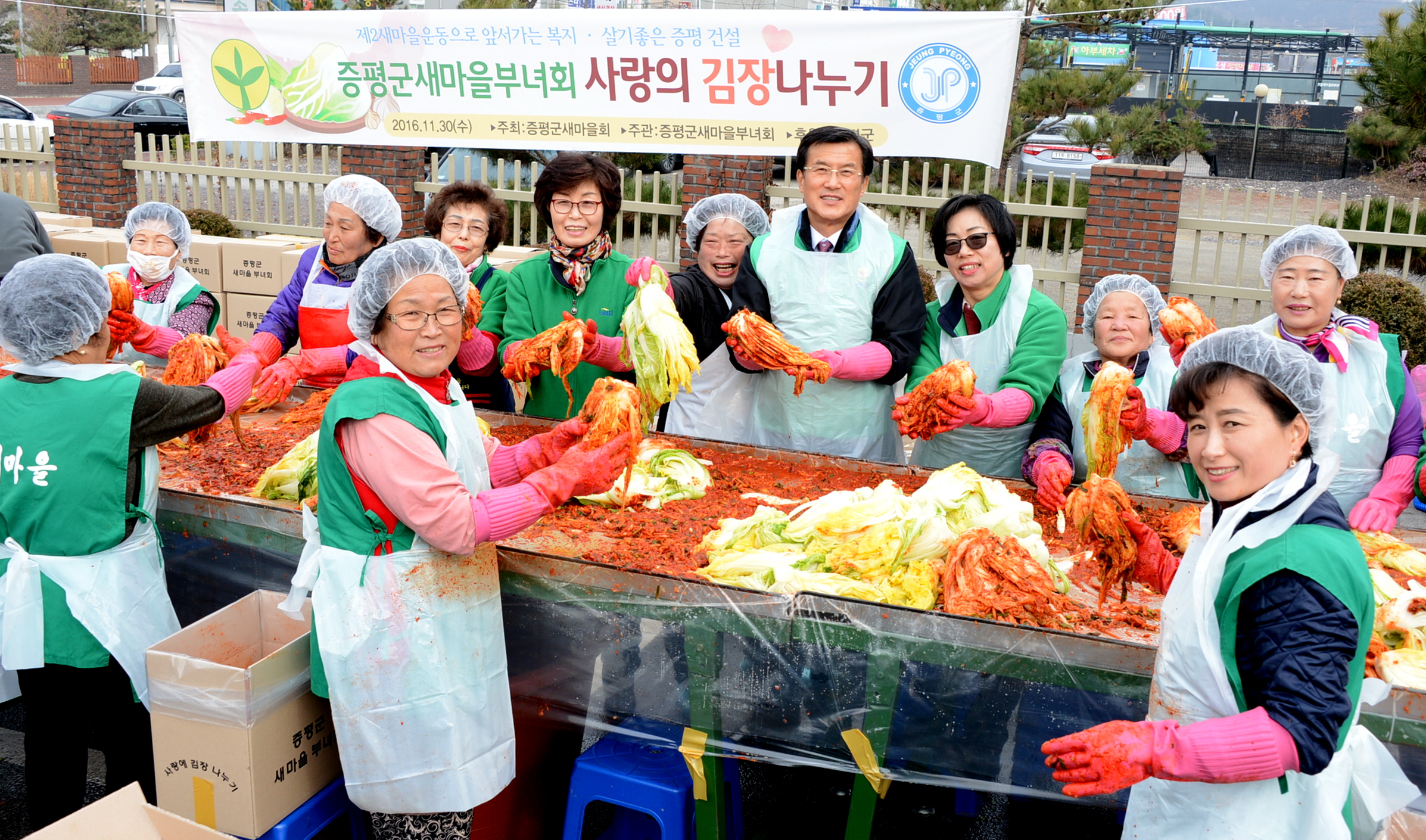 증평군새마을부녀회(회장 정현숙)는 29일과 30일 이틀에 걸쳐 부녀회원과 협의회원 100여명이 참석한가운데 증평군여성회관에서 사랑의 김장나누기 행사를 개최했다.(보도자료실 참조)