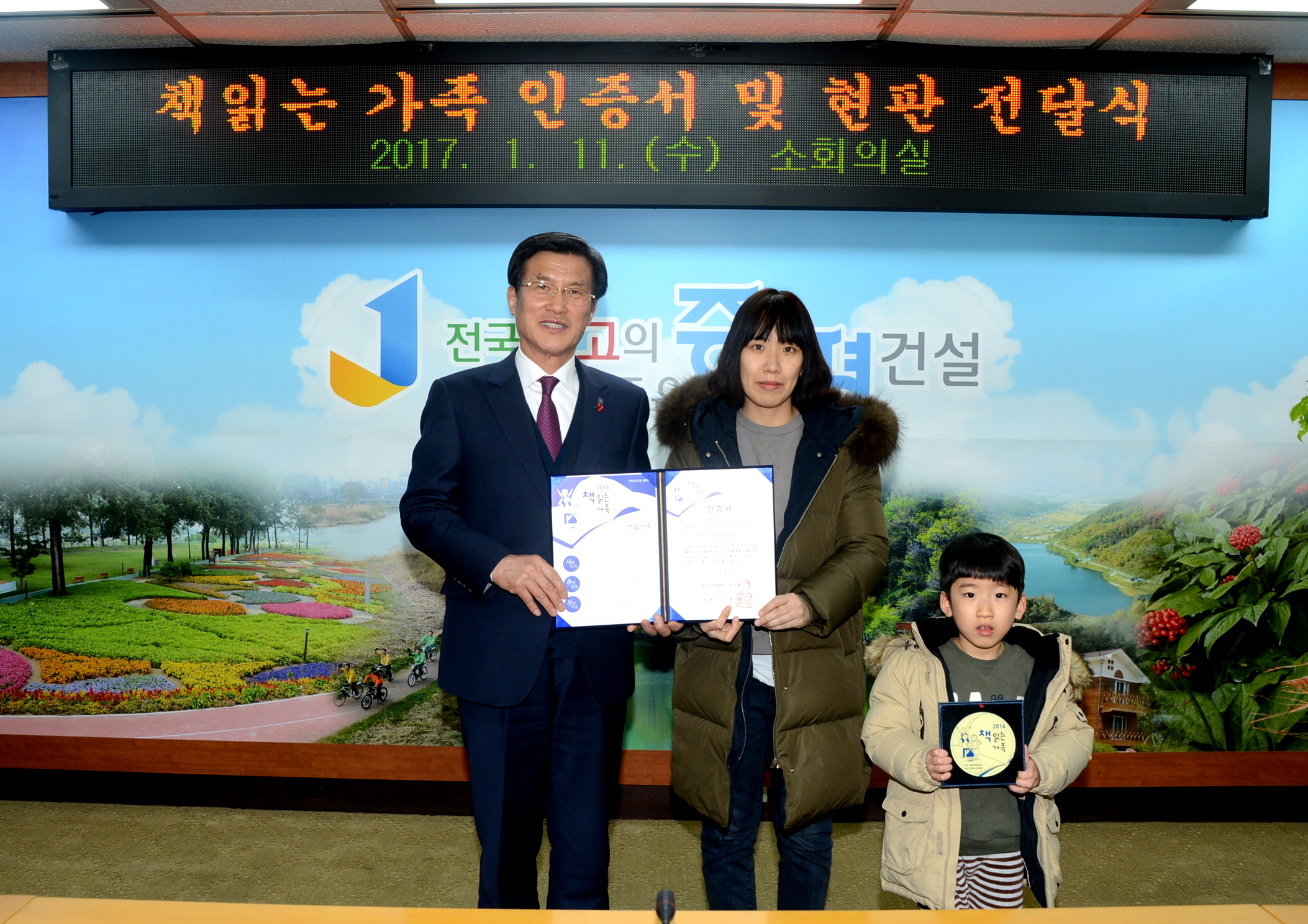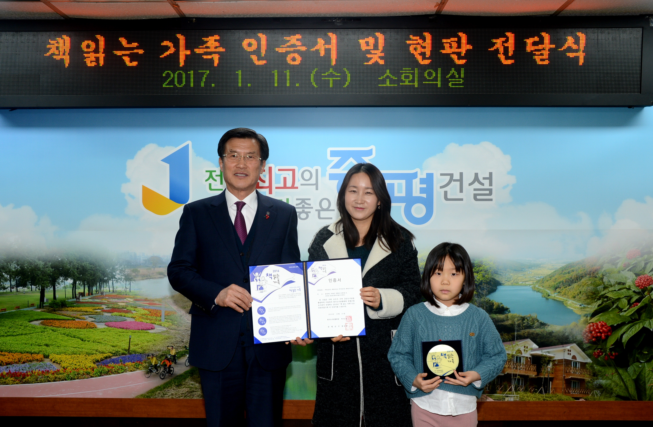 책 읽는 3 가족 선정 ‘인증서 및 현판 전달’