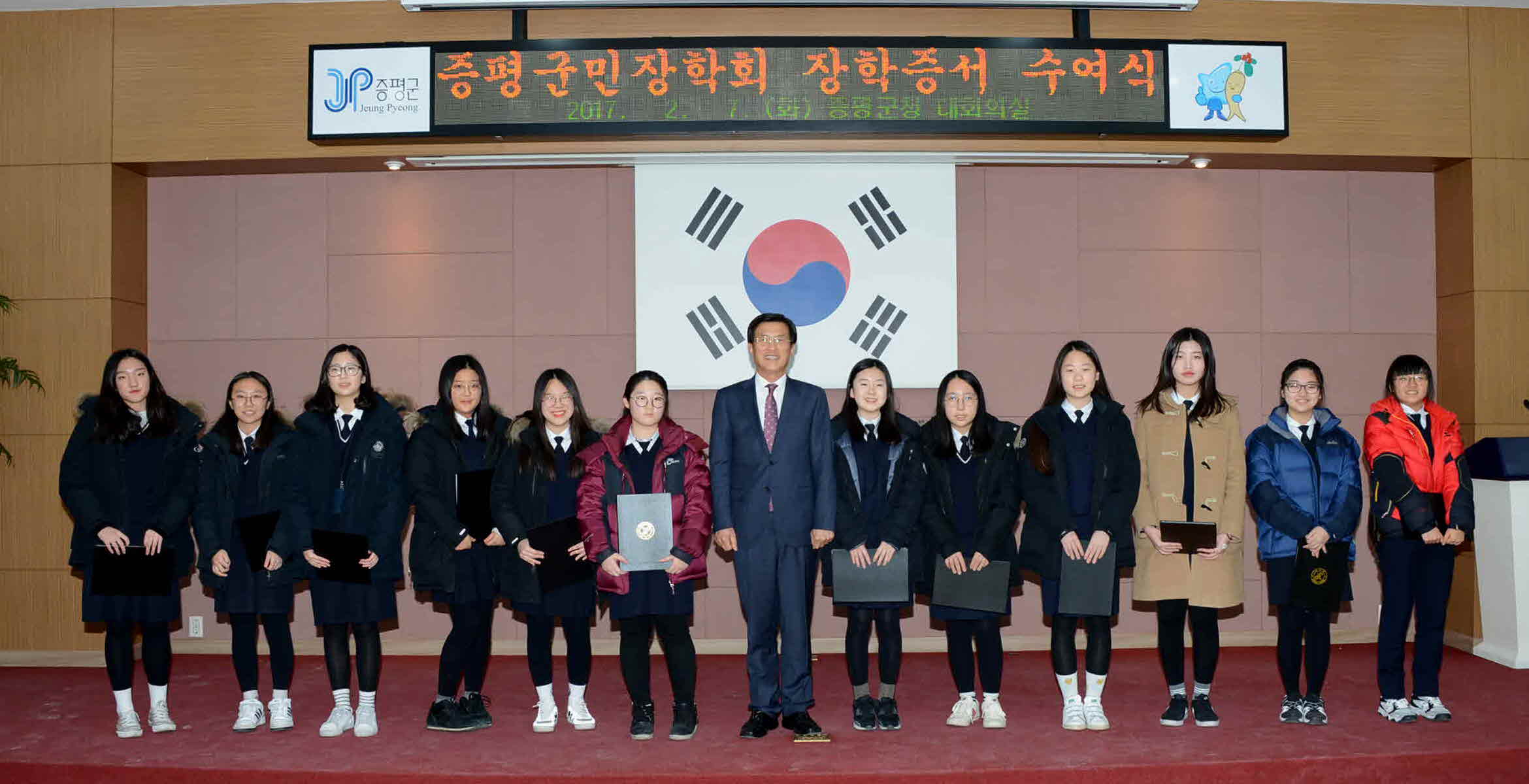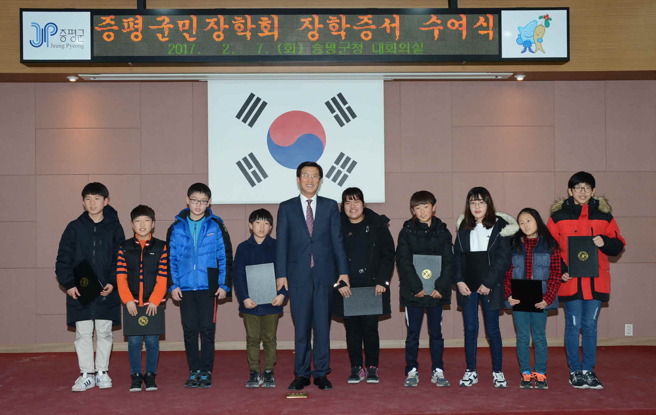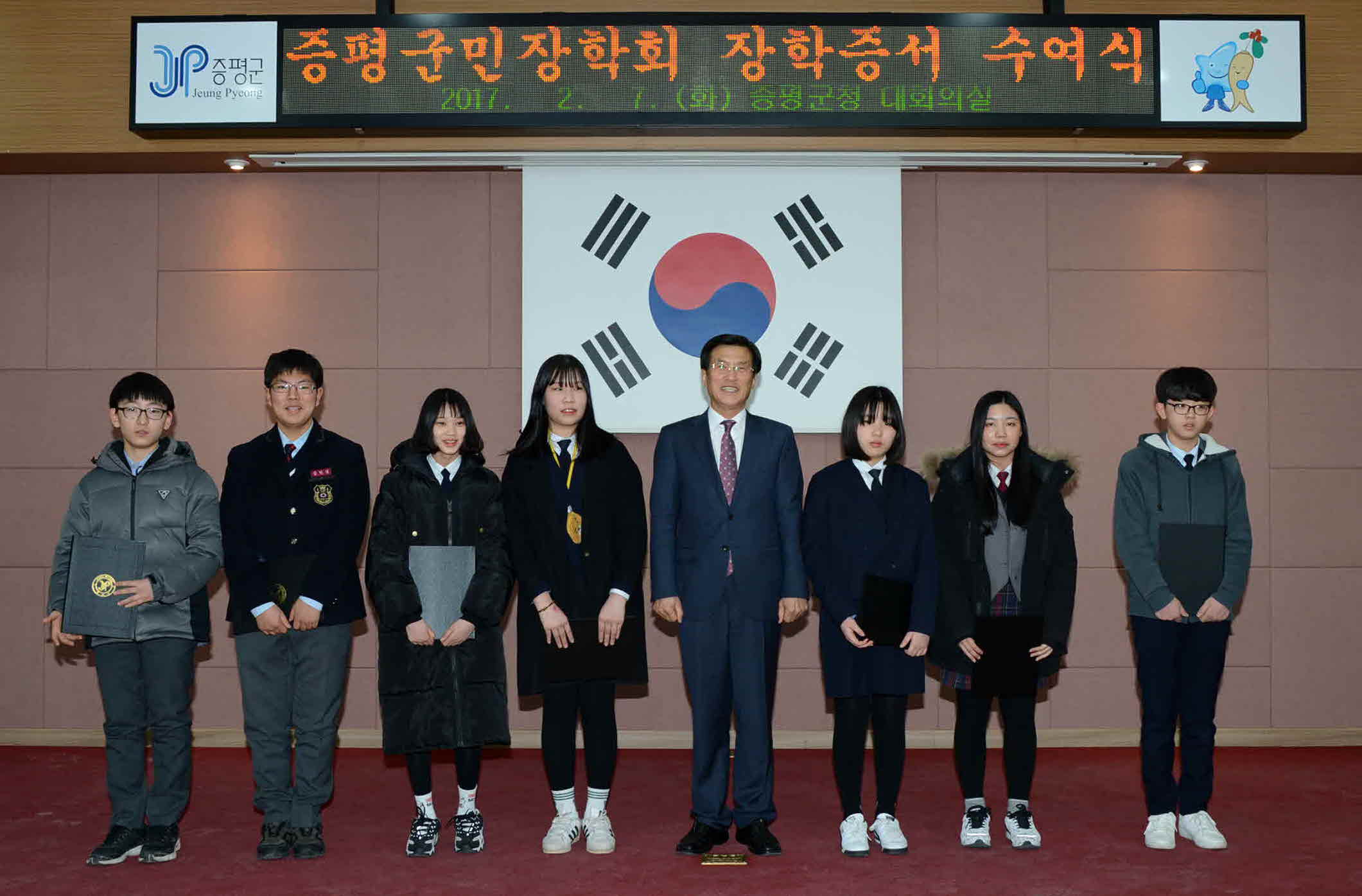 2017년 (재)증평군민장학회(이사장.홍성열증평군수) 장학증서 수여식이 7일 오후4시 군청 2층 회의실에서 열렸다.