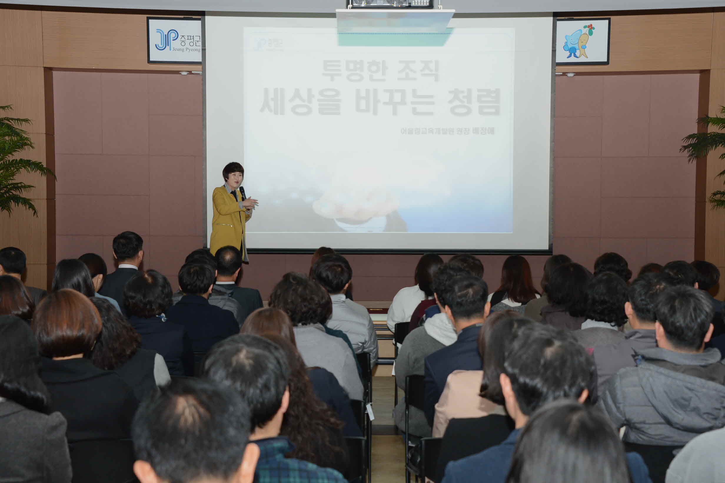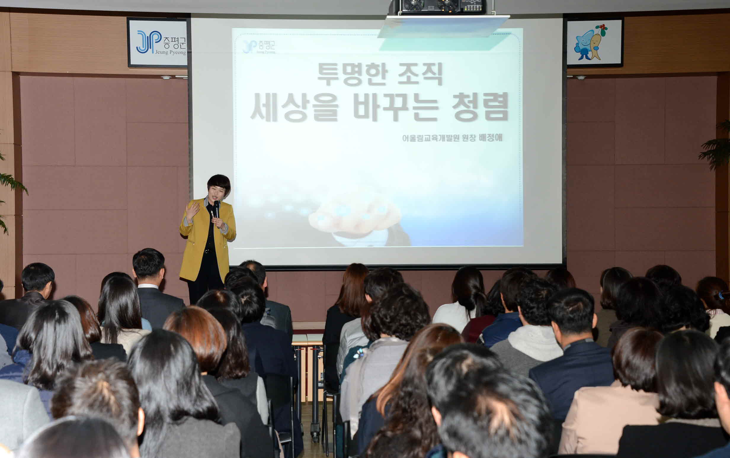 증평군은 21일 오후4시 군청 2층 대회의실에서 홍성열군수를 비롯한 간부공무원과 실, 과, 사업소 산하 공직자 200여명이 참석한 가운데 반부패 청렴문화 확산을 위한 ‘상반기 공직자 청렴교육’을 실시했다.[보도자료실 참조]