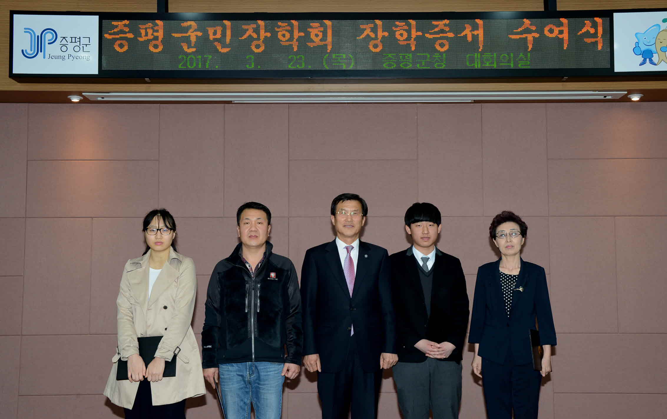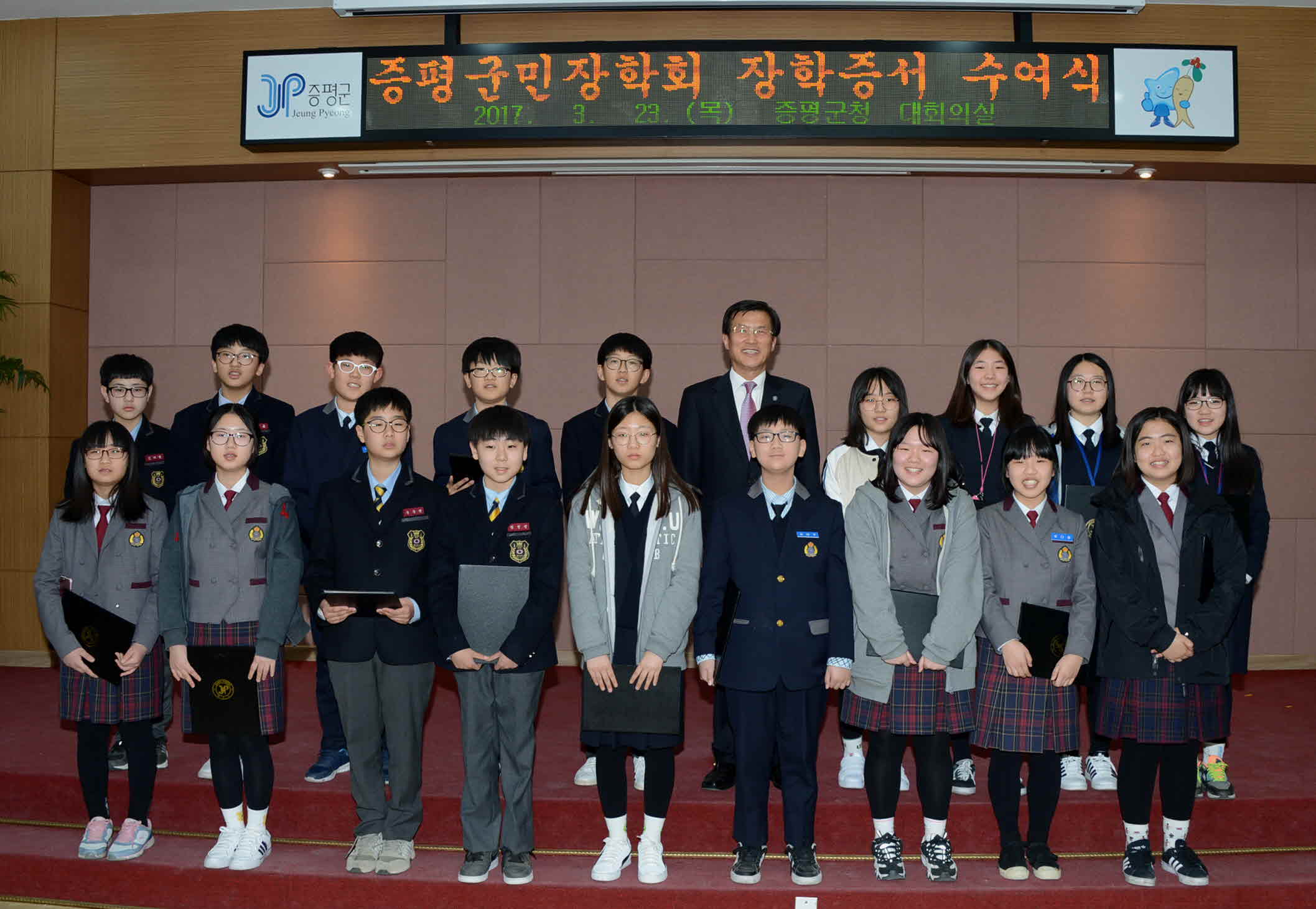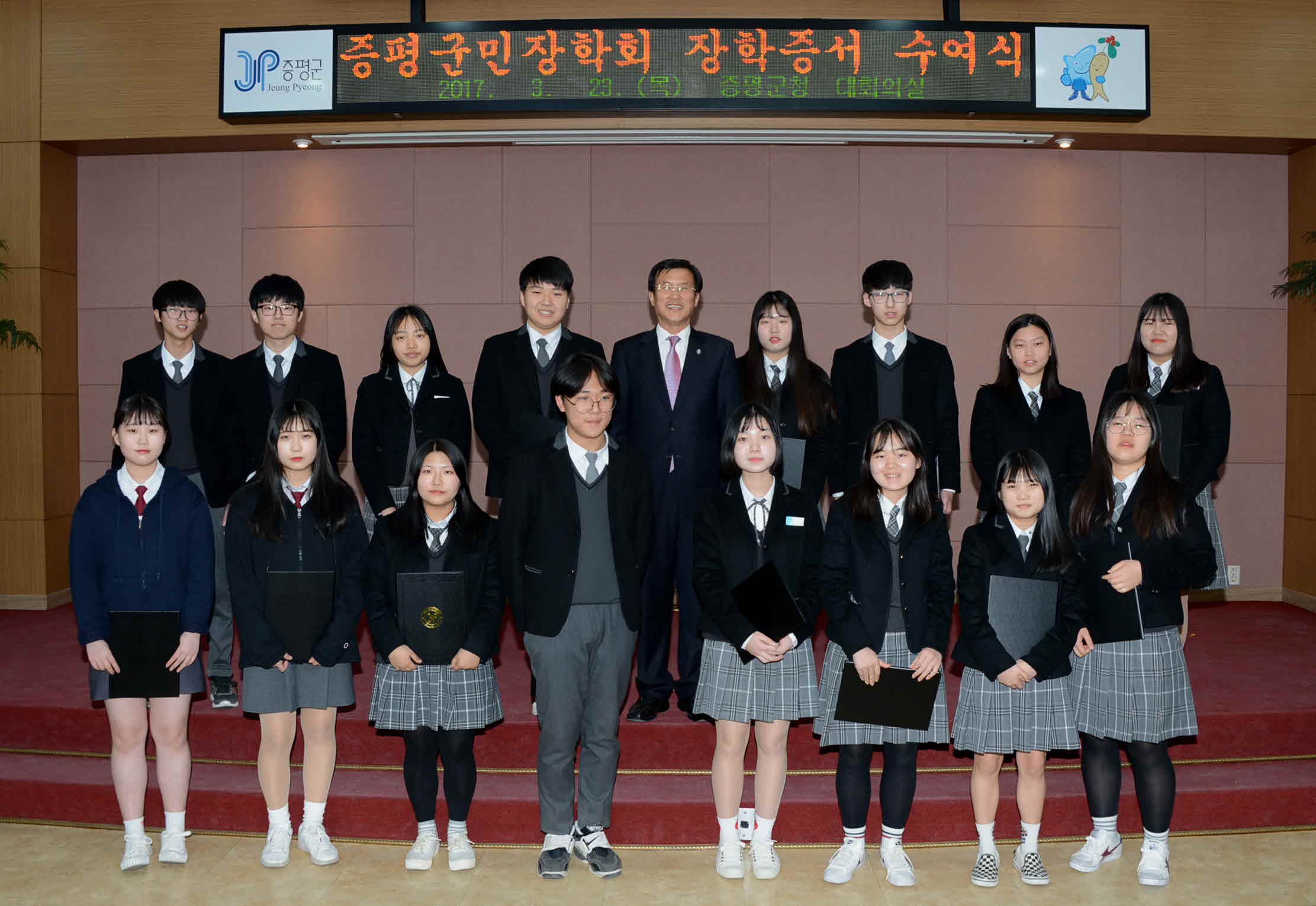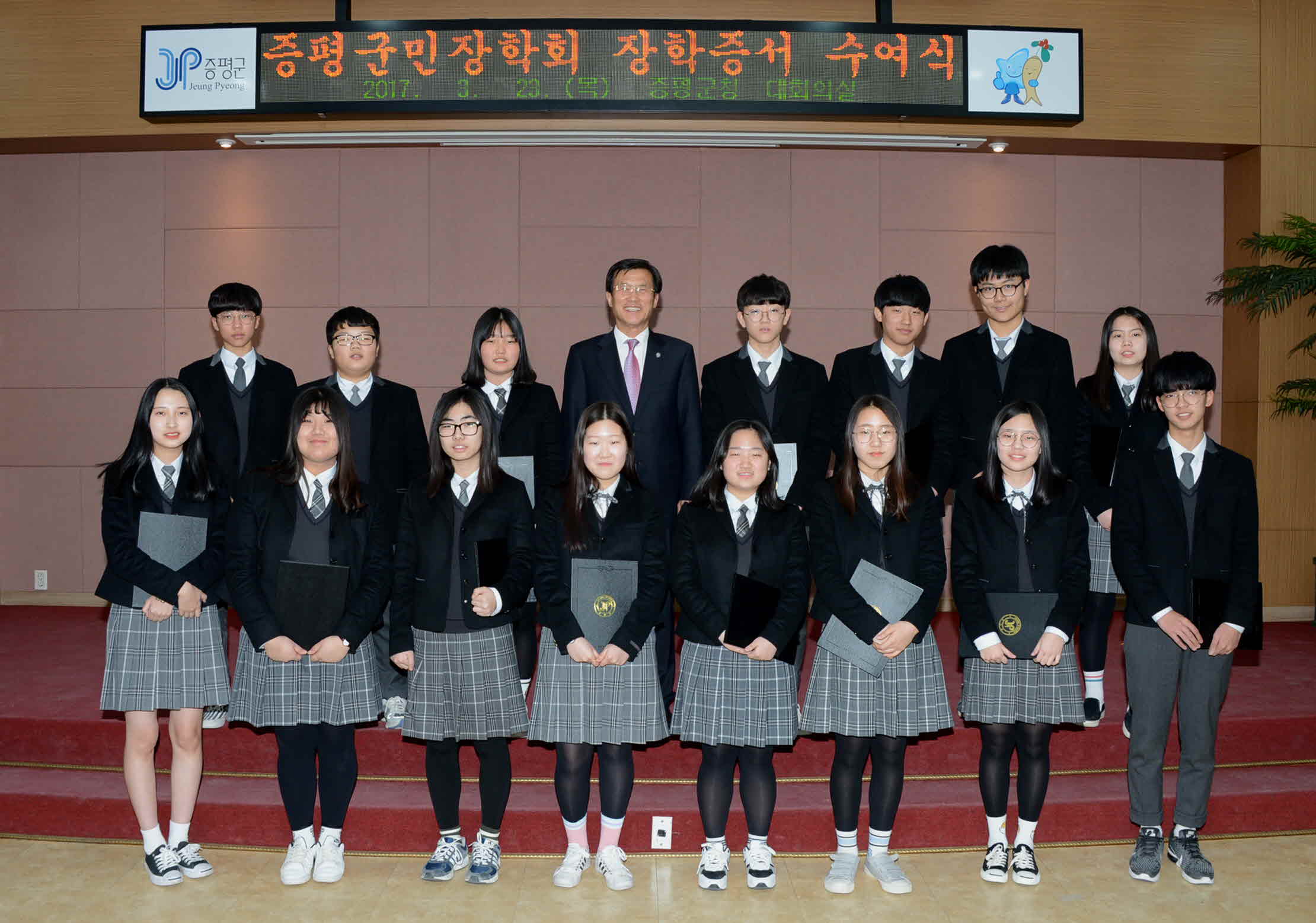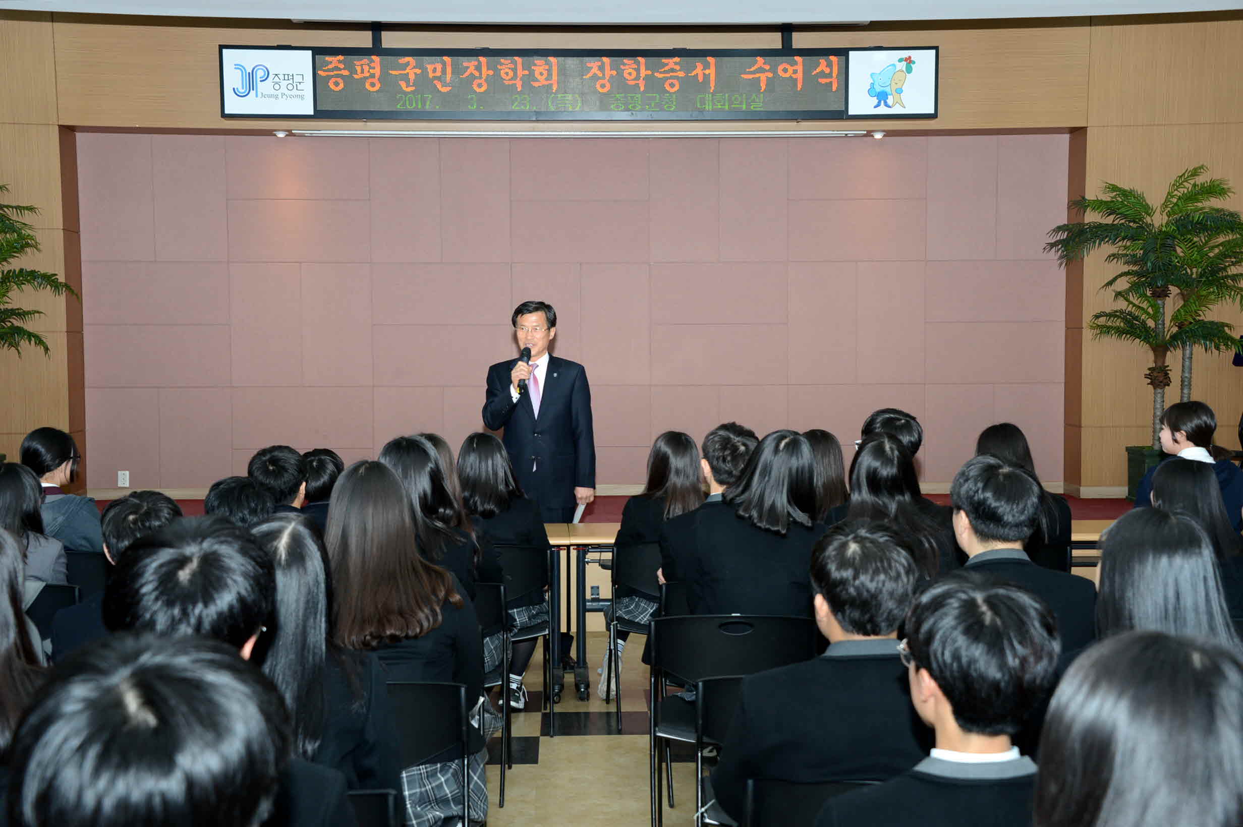 [재]증평군민장학회(이사장 홍성열 증평군수)는 지난 23일 군청 대회의실에서 2017년 입학성적 우수 장학생 장학증서 수여식을 열고, 중,고,대생 55명에게 8240만원 전달했다.(보도자료실 참조)