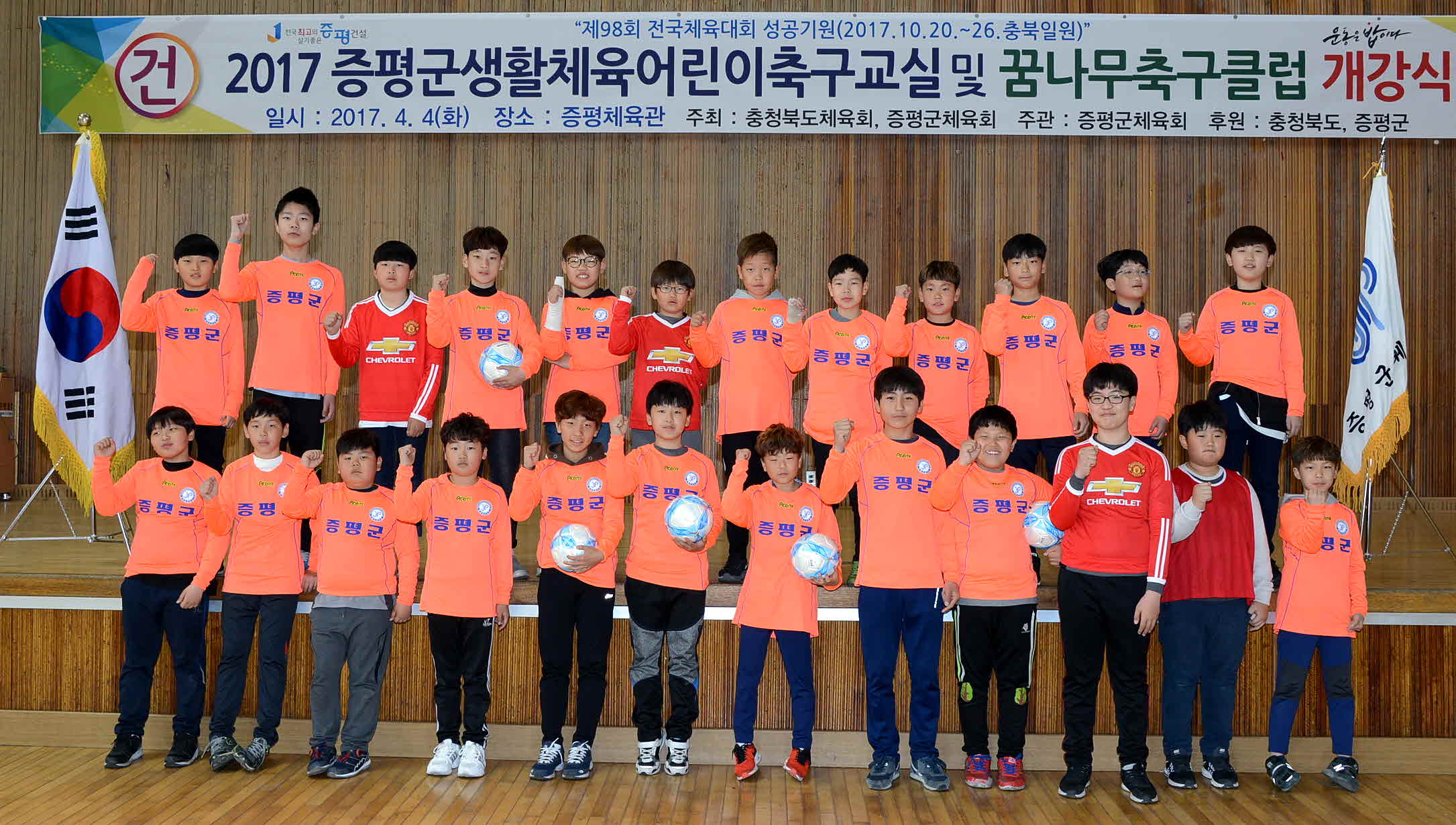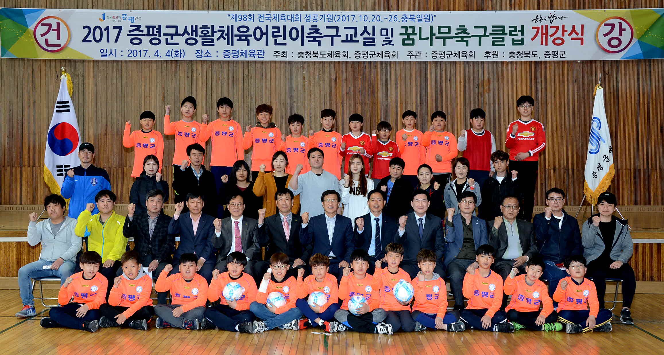 증평군체육회는 지난 4일 증평체육관에서 홍성열 증평군체육회장을 비롯해 초등학생 및 학부모 등 40여명이 참석한 가운데 어린이 축구교실 및 꿈나무 축구교실 개강식을 개최했다.